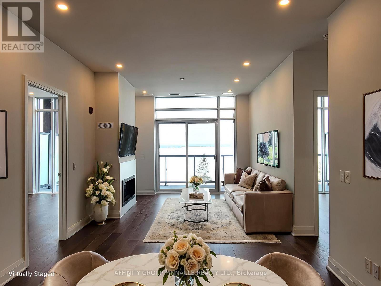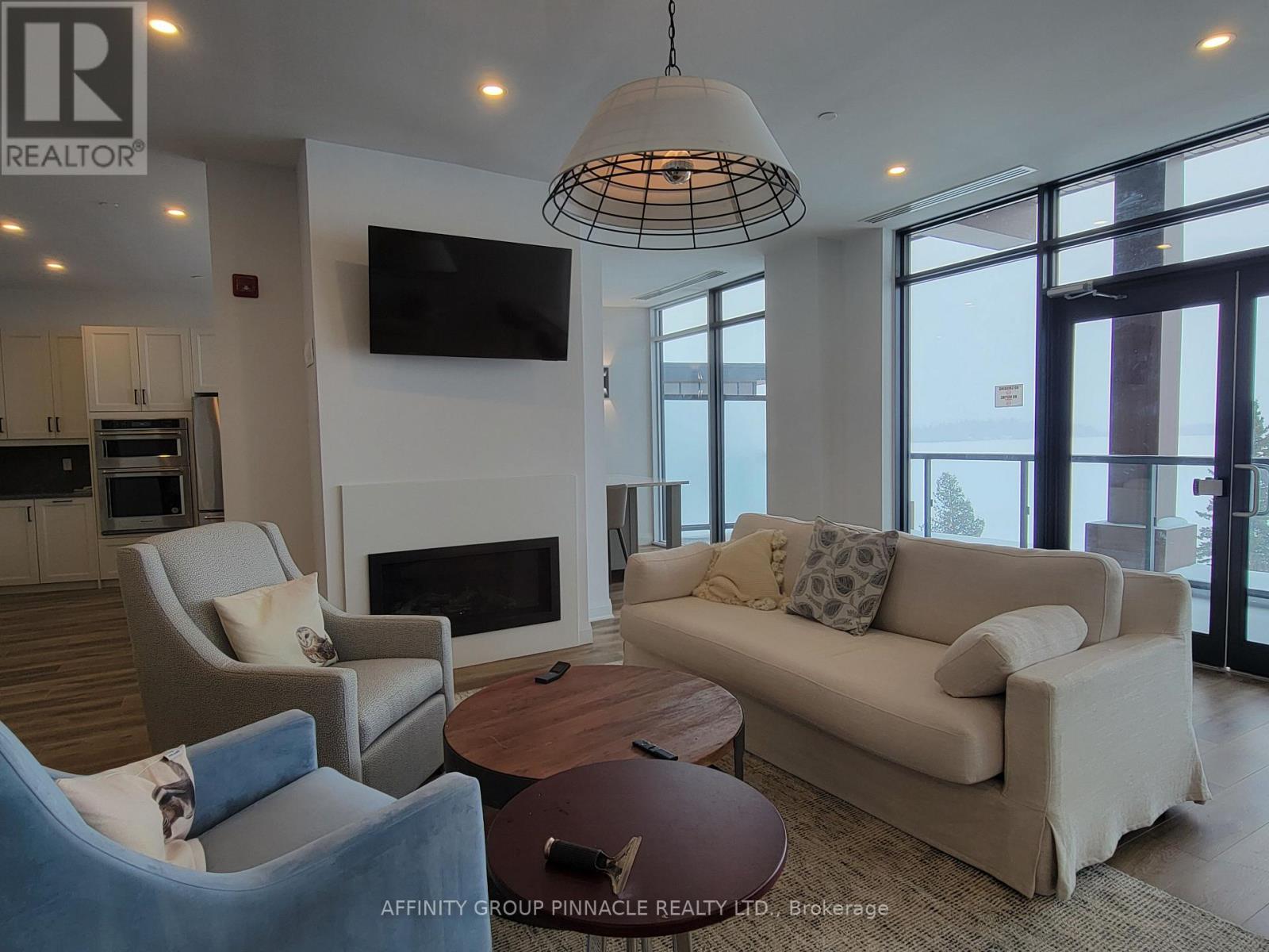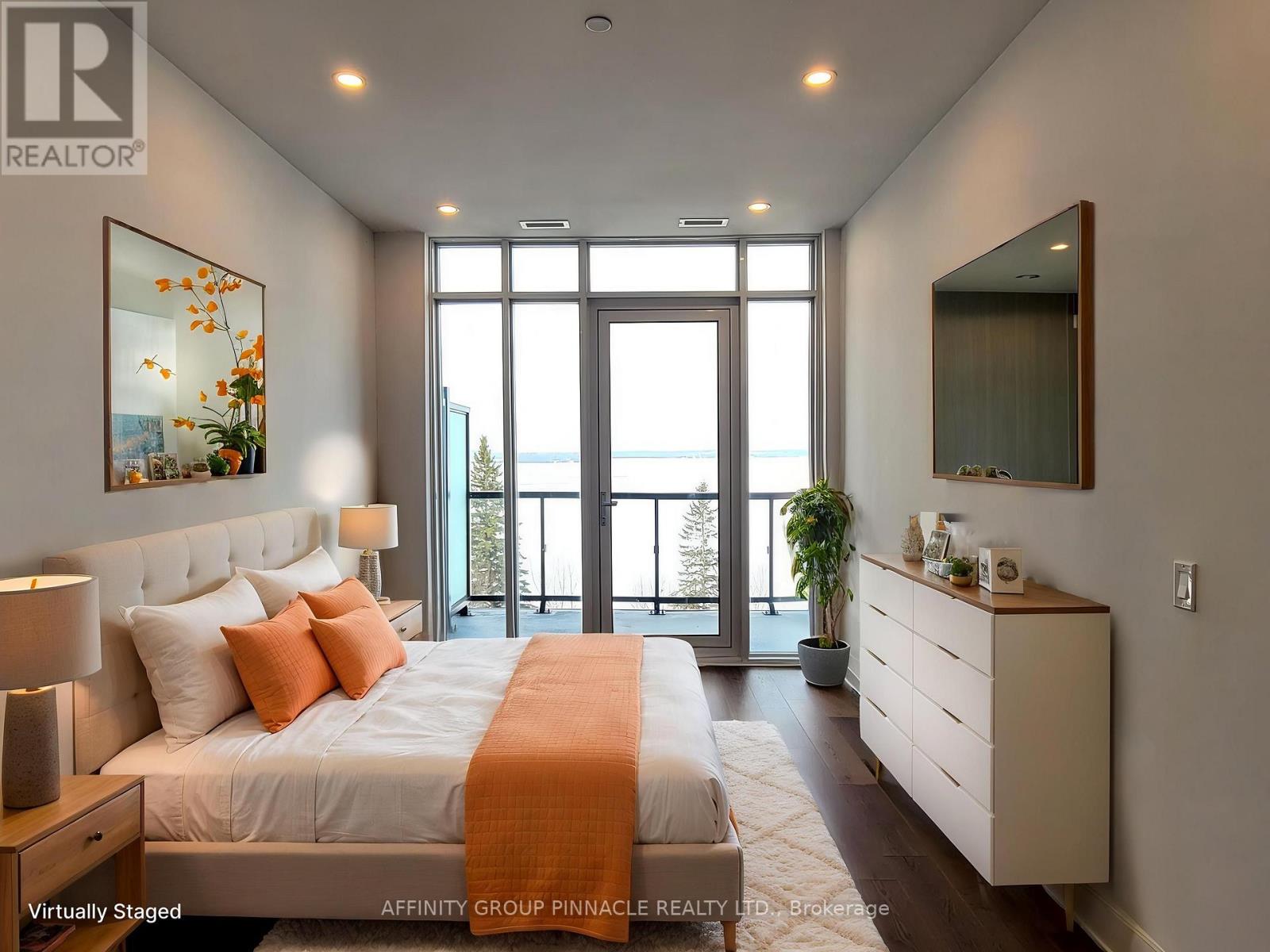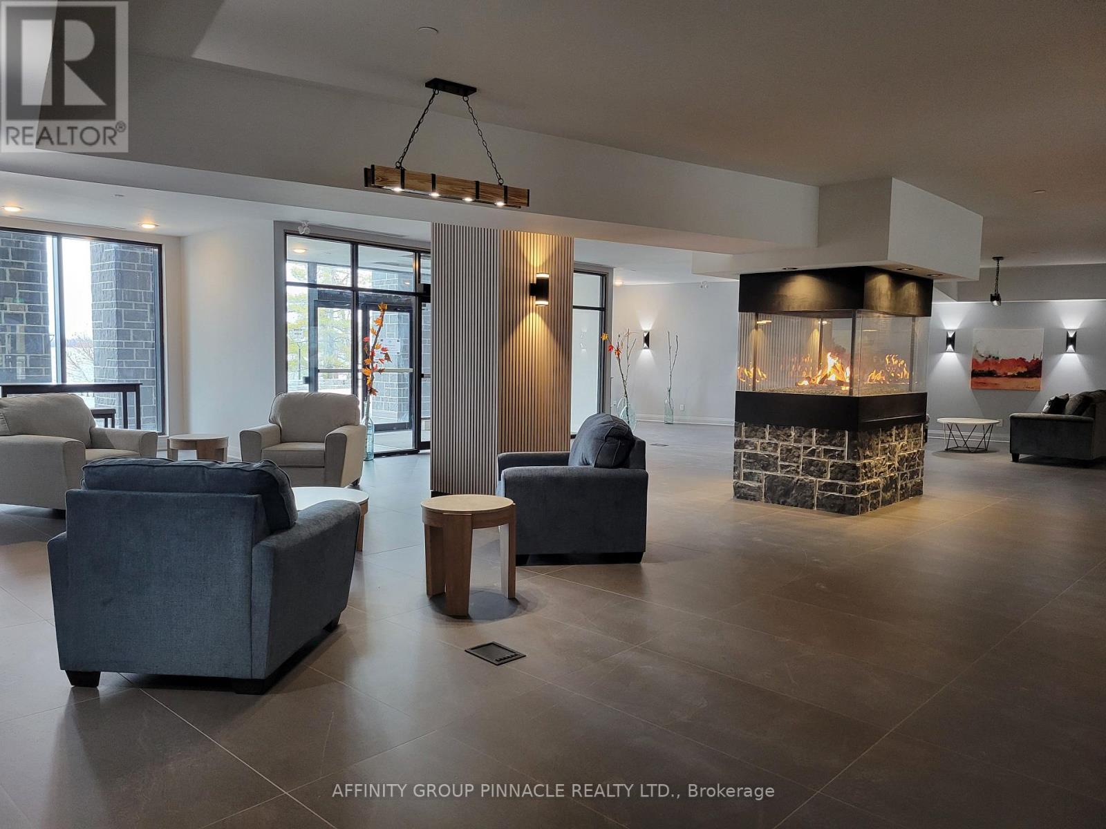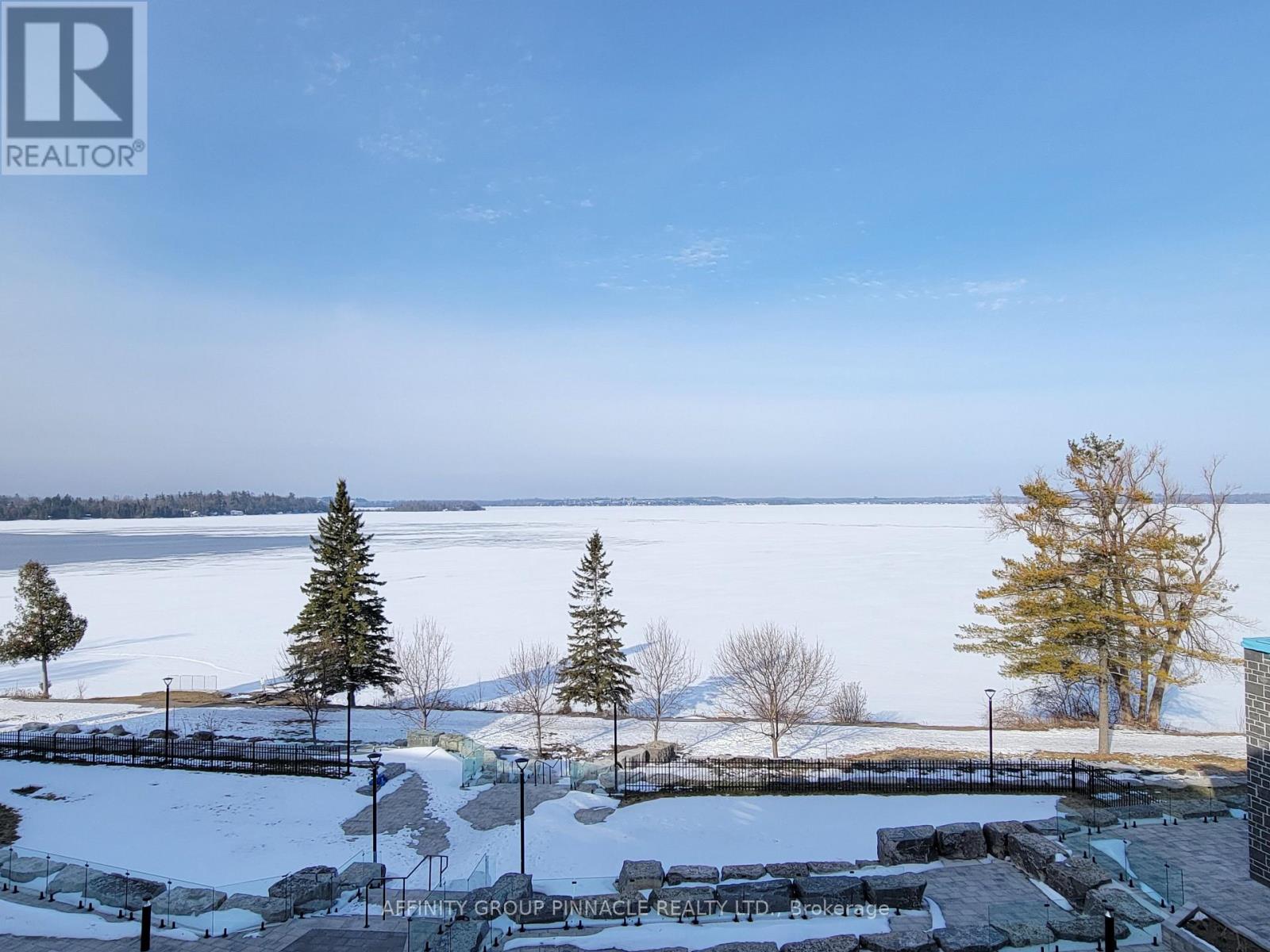 The Moorings on Cameron Lake offers luxury condominium living in the heart of Kawartha Lakes. Enjoy Blazing sunsets with unobstructed views of Cameron Lake. Suite 309 located on the Top Floor as a two-bedroom, two-bath suite measuring 1,087 square feet, with 9-foot ceilings and abundant windows. The interior features engineered hardwood and porcelain tile floors, stainless steel KitchenAid appliances, quartz countertops, in-suite laundry with Whirlpool washer/dryer and bar fridge. The primary bedroom includes a four-piece ensuite, walk-in closet, and access to a balcony equipped with a natural gas line for a barbeque. The unit also provides a secure, underground parking spot with a roughed-in EV charging outlet and a private storage locker. Building amenities are exceptional. The third-floor owners' lounge, located adjacent to Unit 309, can be booked for private events and offers lake views through wall-to-wall windows. It is fully appointed with a caterer's kitchen, dining seating, fireside lounge, high-top tables, and an in-house theater room featuring cinema seating. The second-floor fitness center offers cardio and weight machines, change rooms, a dedicated yoga/Pilates room, and an attached cedar sauna. Outdoor amenities include a heated pool and spa, tennis/pickleball courts, a lakeside courtyard. Condo fees cover high-speed internet and natural gas; a boat slip is also available for purchase. Located on the shores of Cameron Lake with panoramic sunset views, The Moorings provides residents with a refined and active lifestyle in Fenelon Falls, Ontario. Enjoy biking, hiking, snowmobiling, and ATV activities on the Victoria Rail Trail, boating along the renowned Trent Severn Waterway, and easy access to dining, shopping, and entertainment in historic Fenelon Falls. With contemporary amenities and scenic surroundings typical of the Kawarthas, this condominium offers a low maintenance yet vibrant living experience. (id:61423)
