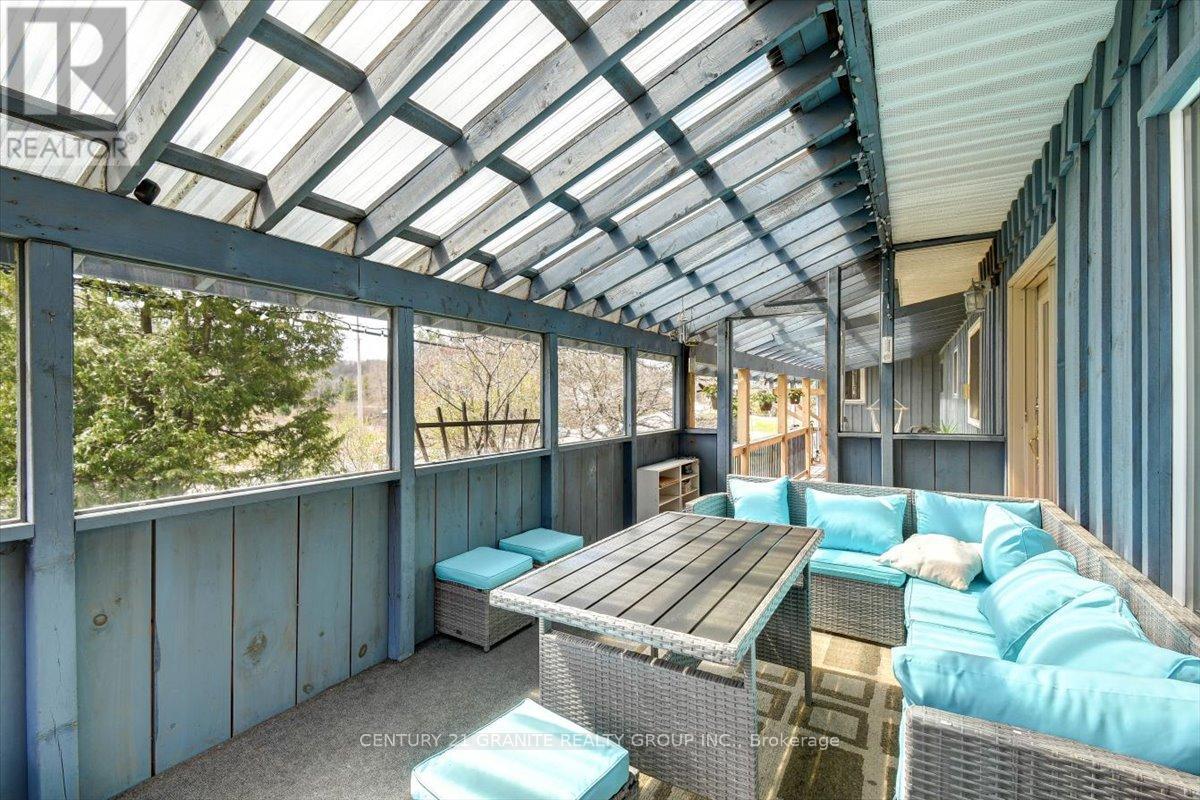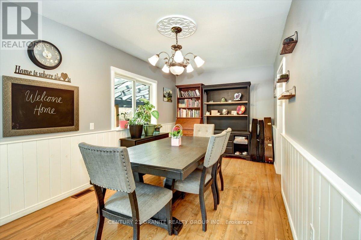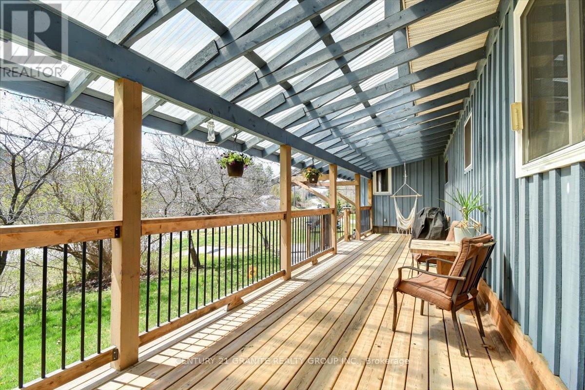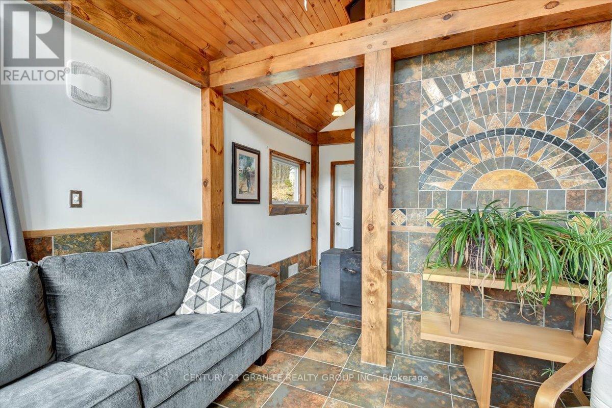 Welcome to 31105 Highway 28 East, a strategically positioned country property offering space, functionality, and strong lifestyle value just minutes from the Town of Bancroft. Set on over half an acre, this location delivers the privacy of rural living with immediate access to amenities. With over 1,700 square feet of bright main floor living, the home is designed for both comfort and efficiency. The open concept kitchen, dining, and living area creates a seamless flow, ideal for everyday living and entertaining. Three well-proportioned bedrooms provide flexibility for families, while the 4-piece bath features a jet tub and separate shower. A sun-filled den with wood stove offers a warm, inviting retreat, complemented by a dedicated office space suited for remote work. Main floor laundry adds convenience, and the large screened-in porch extends usable living space across the seasons. The fully finished lower level expands the footprint with a spacious recreation room featuring a second wood stove, ideal for gatherings or quiet evenings. An additional bedroom provides guest or family flexibility, while a cold room, storage areas, and utility space support organized, practical living. Outdoors, the property is equally functional. A detached workshop, storage building, and shed provide ample space for tools, equipment, and recreational gear, making it well suited for hobbyists and those seeking utility from their land. Well-rounded and value-driven, this property offers a practical opportunity to secure space, flexibility, and lifestyle in the Bancroft market. (id:61423)