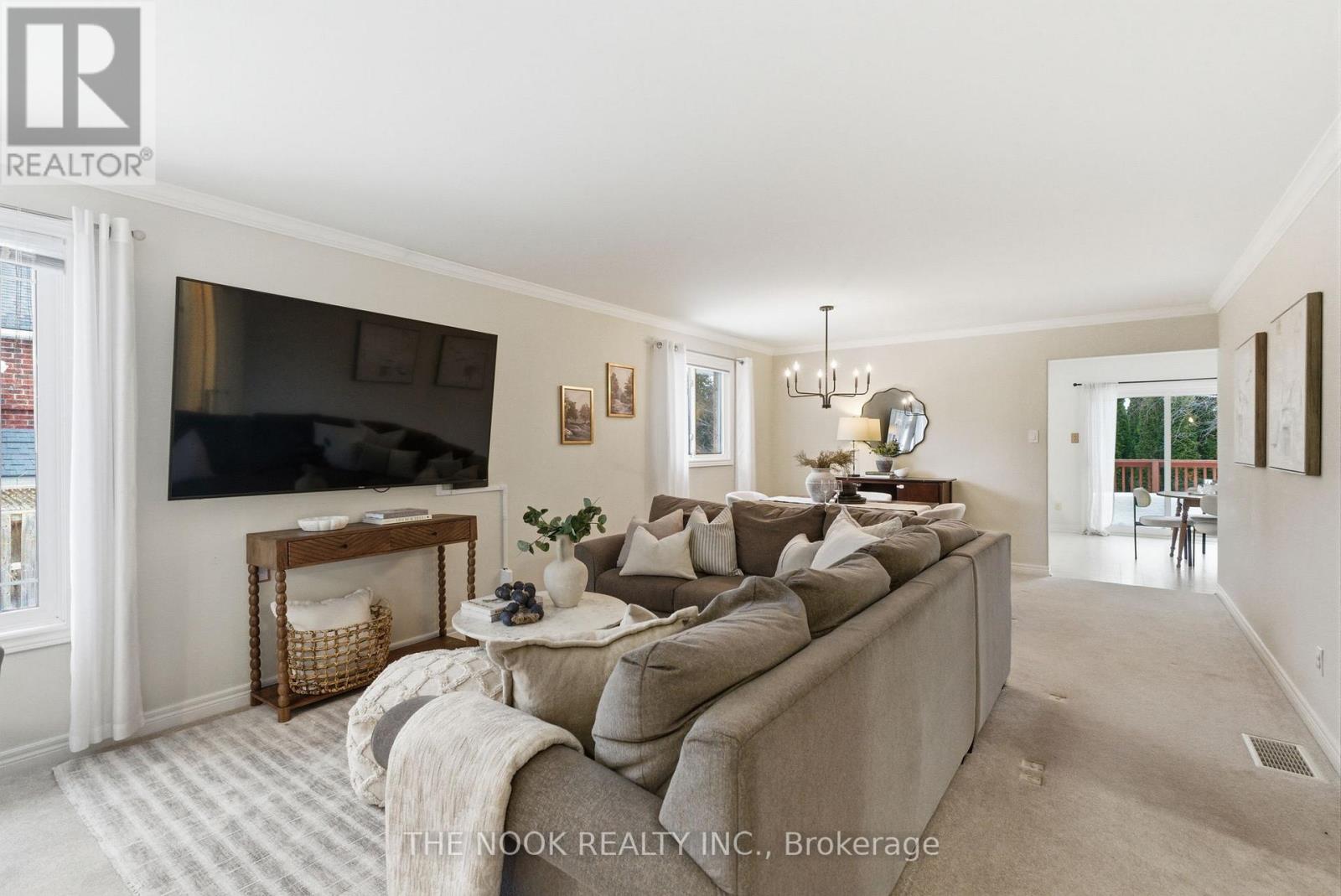 Set In Peterborough's Desirable Woodland Acres, This Beautifully Maintained True Bungalow Offers The Convenience Of Complete One-Level Living With No Interior Stairs From The Front Door. A Rare And Highly Sought-After Layout Perfect For Downsizers, Families Or Anyone Looking For Easy Living. Situated On A Quiet Street, The Home Features A Double Car Garage And A Large Driveway With Parking For Four Vehicles. The Private Backyard Is Low Maintenance And Includes A Deck Off The Kitchen For Outdoor Relaxing. Inside, The Home Is Bright, Clean And Move-In Ready With Neutral Finishes Throughout. The Main Level Offers A Spacious Living & Dining Room Combination. The Eat-In Kitchen Features A Full Pantry Wall And A Sliding Glass Walk-Out To The Deck. The Main Floor Includes Two Bedrooms, Including A Large Primary Suite With Walk-In Closet & Private Ensuite Bath, Plus A Second Bedroom, Full Main Bath And The Convenience Of Main Floor Laundry. The Finished Basement Adds Incredible Flexibility With Large Windows, Two Additional Bedrooms, A Spacious Rec Room With Gas Fireplace, Second Kitchen, 4-Pc Bath & Second Laundry Area. With The Ability To Keep or Remove The Separate Entry From The Foyer, The Layout Offers Excellent Potential For Multigenerational Living Or Extended Family Space While Still Functioning Beautifully As A Single-Family Home. A Clean, Tidy & Move-In Ready Property In A Fantastic Location Close To Parks, Amenities & Everyday Conveniences. (id:61423)