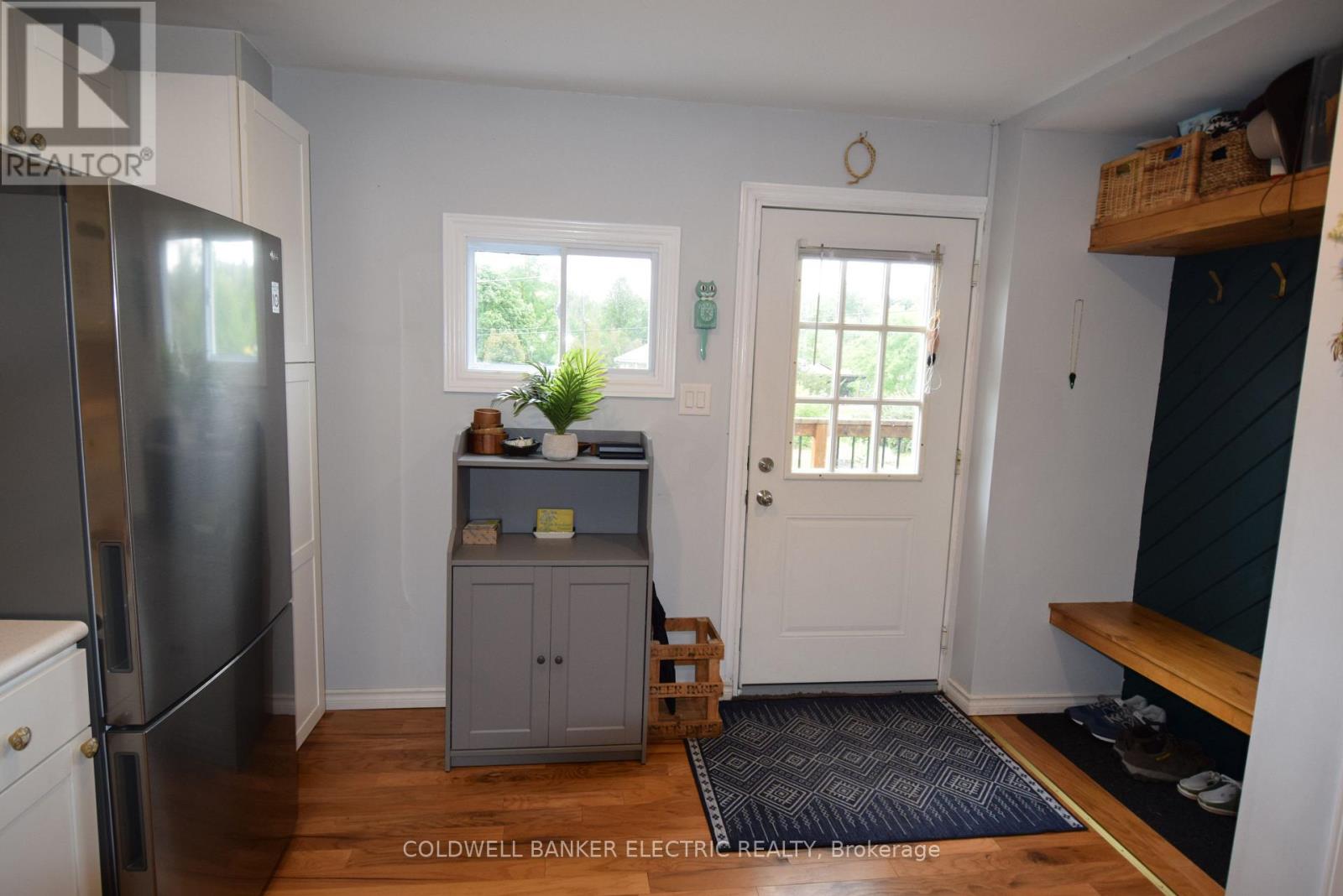 Welcome to this charming 1 1/2 storey waterfront retreat, tucked away on a quiet road just outside the village of Hastings. With 100 feet of waterfront along a peaceful channel of the Trent River System, this property offers the perfect blend of relaxation and convenience. Step inside to a warm and inviting open-concept layout where the kitchen, dining, and living areas flow seamlessly - ideal for entertaining or cozy nights in. A picture window in the living room frames beautiful views of the spacious backyard and sparkling water beyond. Upstairs, you'll find two generously sized bedrooms, providing comfort and privacy for family or guests. This home comes with peace of mind thanks to the valuable upgrades, including a forced-air propane furnace (2020), durable metal roof, new sump pump and battery back up (Jan 2025), new well pump (2022), new leakless hot water tank (owned 2022), newer siding, and a water softener system with UV light. Just minutes from shopping, a full-service marina, and the historic Lock 18, this property is a gateway to year-round waterfront living. Whether you're looking for a weekend getaway or a full-time home, this Hastings gem is ready to welcome you. (id:61423)