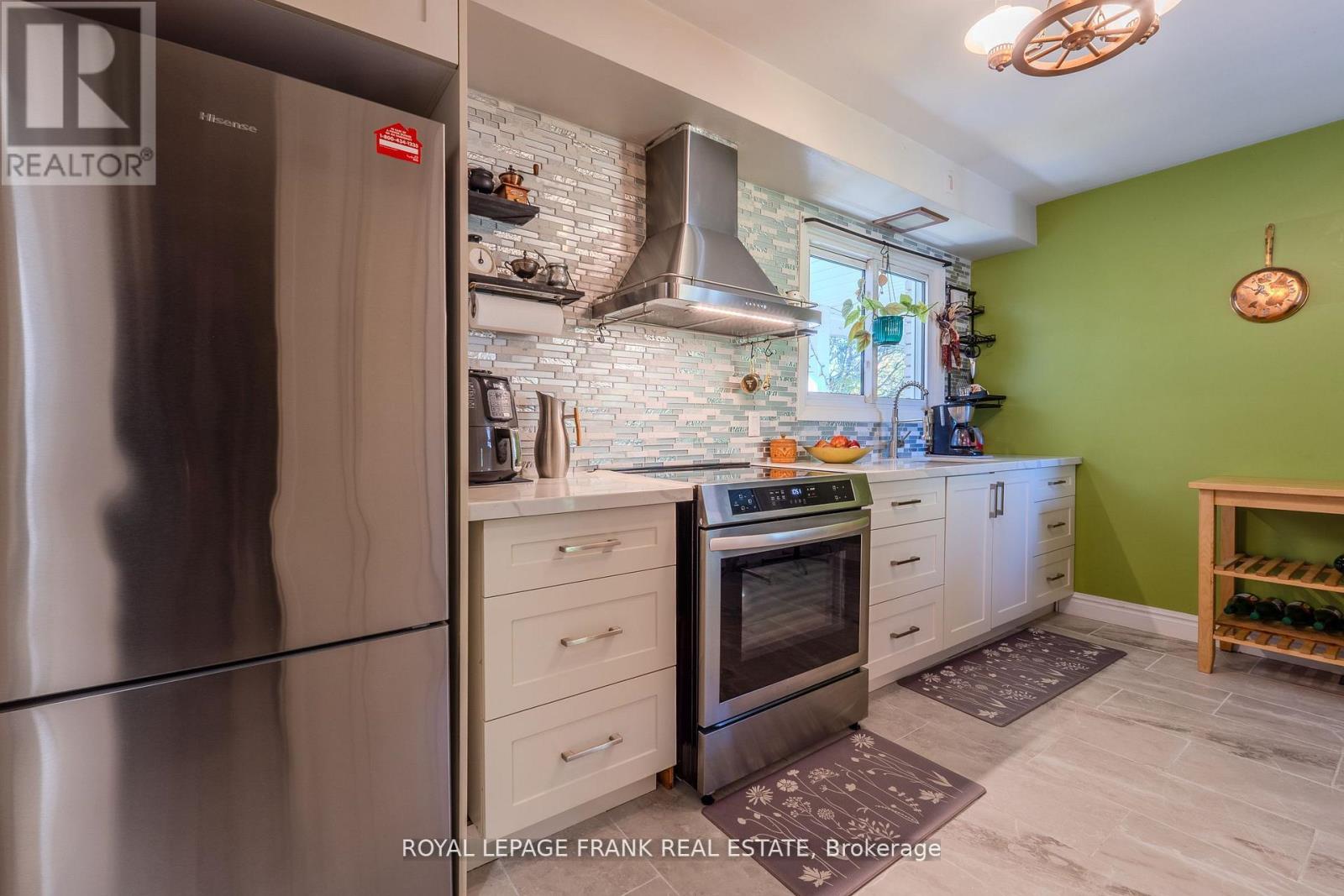 Updated All-Brick Bungalow with In-Law Potential! This solid 3+1 bedroom, 1137 sq. ft. bungalow is set on a deep 'pool sized' lot surrounded by mature trees. Inside, the main floor shines with refinished hardwood flooring, a completely renovated kitchen, and a stylish updated bathroom. The lower level, with its convenient back door entrance, provides excellent in-law or secondary suite potential. It includes a spacious rec room, large bedroom, office/den, 2-piece bath, and generous storage space. Natural gas heating & central air for year round comfort! Rare backyard access from Huron St. allows for the potential to pursue a second driveway. Currently there is space for 5 vehicles, including the carport. Whether your looking for a family home with room to grow or an investment with multiple possibilities, this bungalow is a rare find. (id:61423)