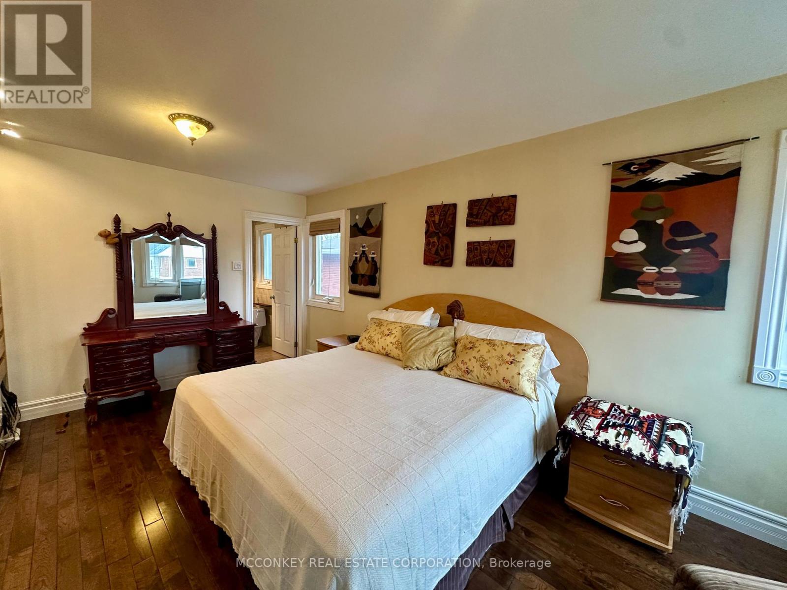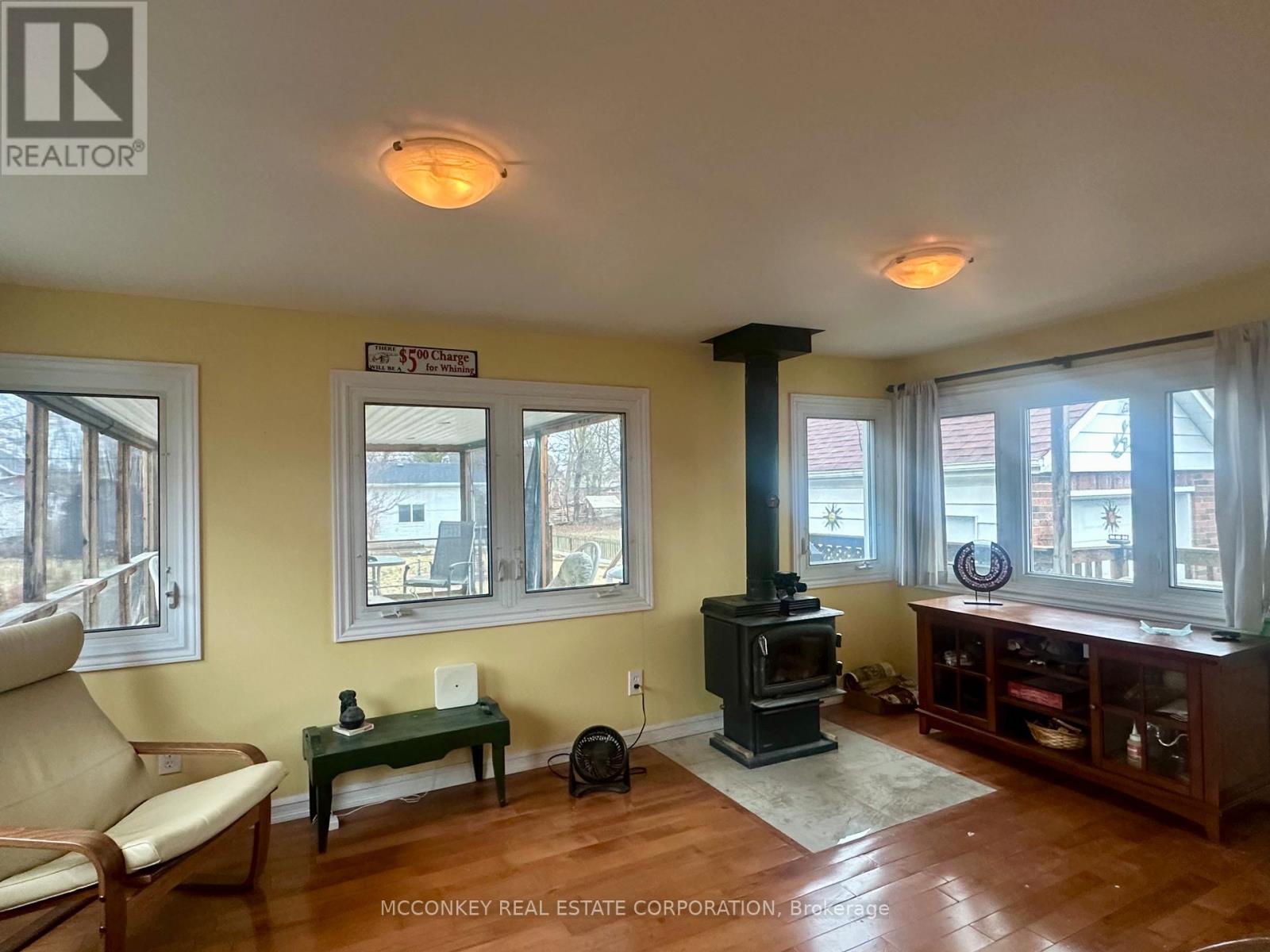Charming all-brick bungalow situated on an impressive 50 x 224 ft. lot in a convenient location close to the Otonabee River and everyday amenities. This well-maintained home offers exceptional versatility with a fully self-contained in-law suite in the lower level-perfect for extended family or potential rental income. The main floor features a spacious addition highlighted by a cozy wood stove, beautiful hardwood flooring, and elegant crown moulding, creating a warm and inviting living space. Large windows provide plenty of natural light and lovely views of the expansive backyard. Main floor primary bedroom is oversized with built-in cupboards. Step outside to enjoy the oversized screened-in deck, ideal for relaxing or entertaining while overlooking the private, landscaped yard. With two separate driveways, there is ample parking, including one that leads to a substantial 40 ft. x 20 ft. detached shop-perfect for hobbyists, storage, or a home-based business. (id:61423)