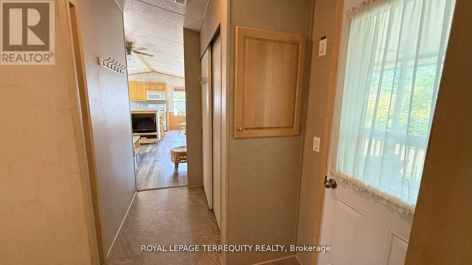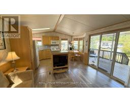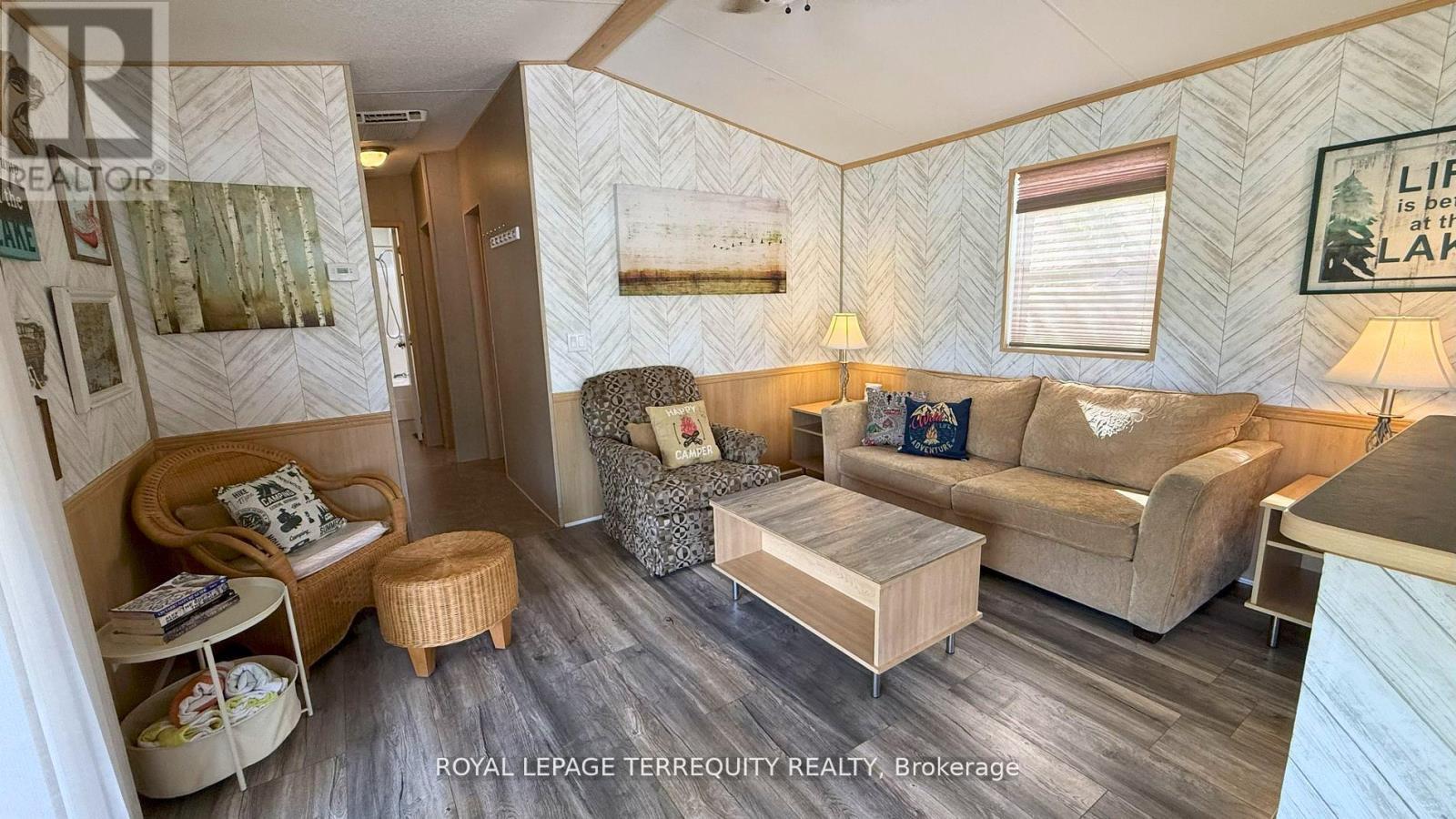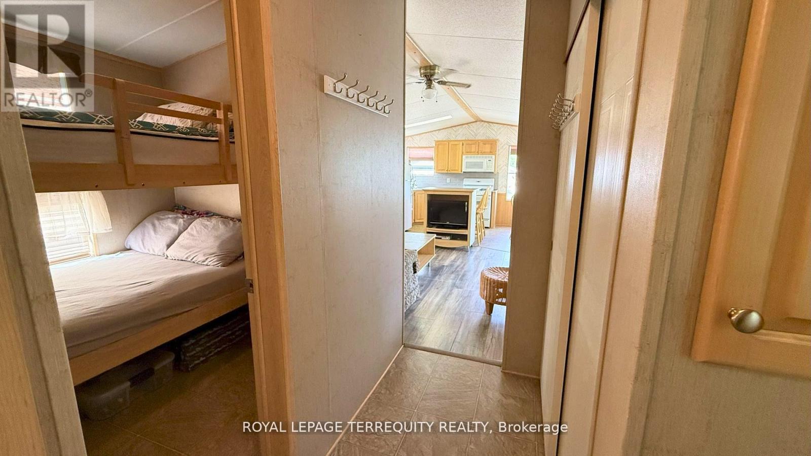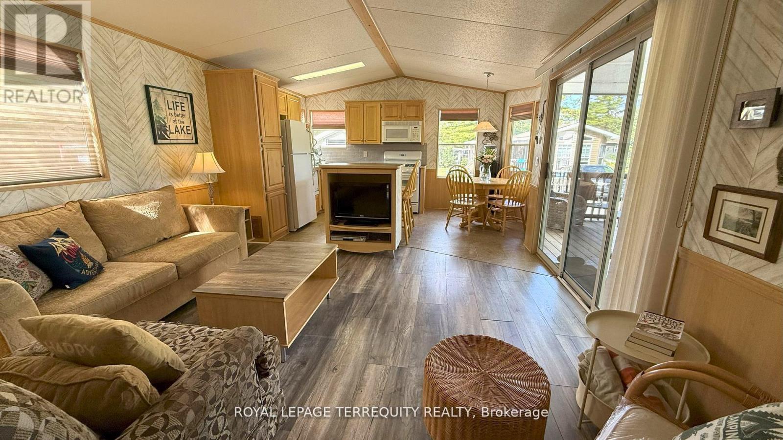 Welcome to Pioneer Point Resort, your ideal seasonal escape nestled in a peaceful, nature filled setting. This well-maintained 2007 Northlander Cottager (in service since 2010) offers 30 amp service, stylish laminate flooring, and a ceramic backsplash, along with two convenient entrances and a full bathroom featuring a skylight for added natural light. Designed for comfort, it sleeps the whole family with a queen bed, a double bunk with built-in storage, and a pull-out couch. The bright, open layout is complemented by a large storage closet for all your essentials. Step outside to a spacious 14 x 40 deck that spans the length of the trailer, perfect for relaxing or entertaining, complete with a solid hardtop cover for all-weather enjoyment. An outdoor shed provides additional storage for tools, toys, and seasonal gear. Surrounded by mature trees and greenery, this lot offers privacy and a true cottage country feel. Pioneer Point Resort is a vibrant, family-friendly gated community offering a wide range of amenities, including two heated pools, a private sandy beach, pickleball courts, beach volleyball, horseshoe pits, a bouncy pillow, kids club, and weekly summer events for all ages. The resort operates seasonally from May 8th to October 31st, providing a low maintenance summer lifestyle. Optional dock rentals are available, with convenient access to nearby beaches, shopping, dining, and local attractions. The 2026 park fees of $5,975 plus HST and a $300 hydro deposit have already been paid, making this a truly turnkey opportunity. Move in, relax, and start making memories right away. Your perfect seasonal getaway awaits! (id:61423)