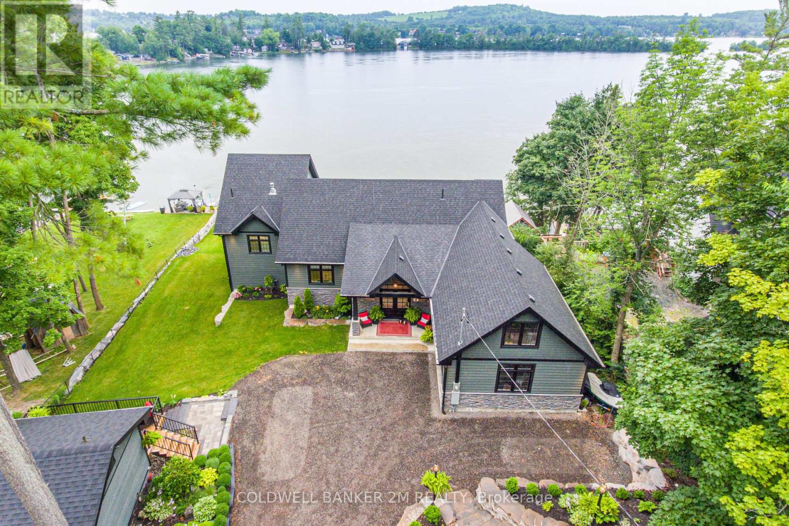 Paradise Found! This spectacular custom-built waterfront home is loaded with upgrades and designed to impress! Featuring a heated double-car garage with storage loft, stunning kitchen with hickory lanes cabinetry with granite counters, main floor laundry with quartz counters, gorgeous master ensuite, central vac, and surround sound system throughout. The fully finished walk-out basement offers a bright family room with gas fireplace, spacious rec room, 3rd bedroom, and walk-out to the back patio which is an entertainers dream! Plus, a fully equipped bunky with kitchen, bathroom, furnace & laundryperfect for guests or extended family!This is a rare opportunity to own a true waterfront retreat where luxury meets lifestyle. A must-see! Covered outdoor living space is an entertainer's delight with a beautiful view of the lake and the 40ft dock! Only 10 mins to Peterborough (id:61423)