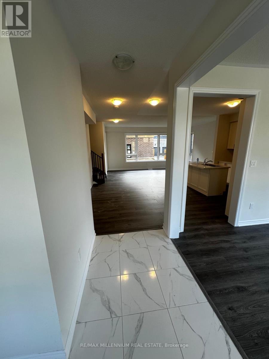 Brand new never lived freehold townhome by Fernbrook Homes in the Hygge community. Rear lane layout with a two car detached garage and a private yard between the home and the garage. Bright open concept main floor with approximately nine foot ceilings and large windows that bring in natural light. Chef's kitchen with upgraded quartz counters, stainless steel appliance package with self clean range, fridge, dishwasher, and hood fan, a double bowl sink, and an extended breakfast bar. Upper level features laminate flooring in all bedrooms and the hallway, a primary bedroom with a walk in closet, and an ensuite with a glass shower and a quartz countertop. Quality construction includes HRV, a high efficiency gas furnace with a humidifier, smooth ceilings in the kitchen and all bathrooms, two exterior water taps, and a full unfinished basement for storage. Driveway and community landscaping to be completed on the builder schedule. Enjoy nearby nature, parks, and future neighbourhood amenities along the Scugog River with easy access to schools, shopping, the hospital, and major routes. Ideal for families and professionals seeking a clean modern home in a growing area. (id:61423)
