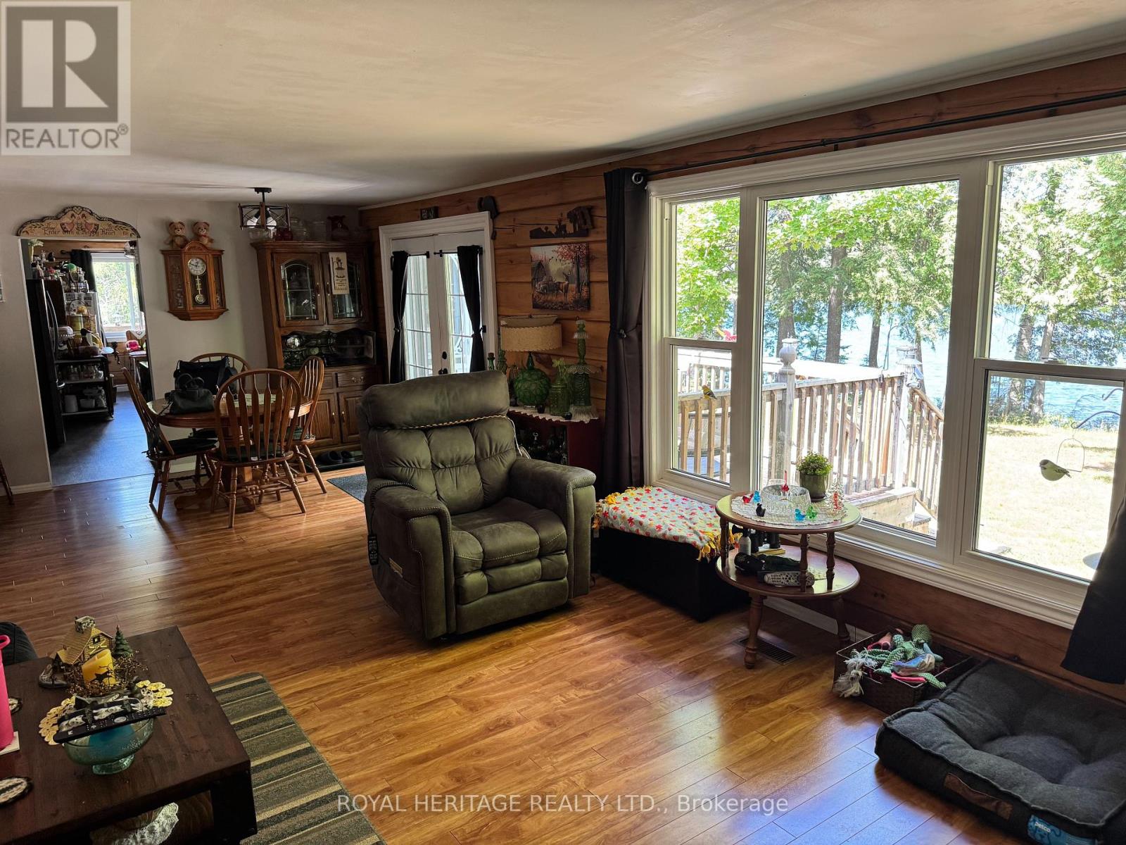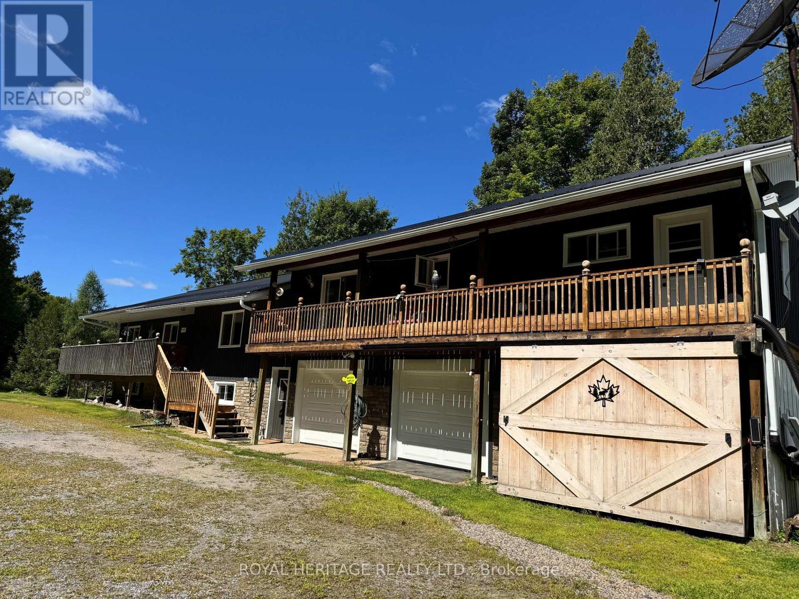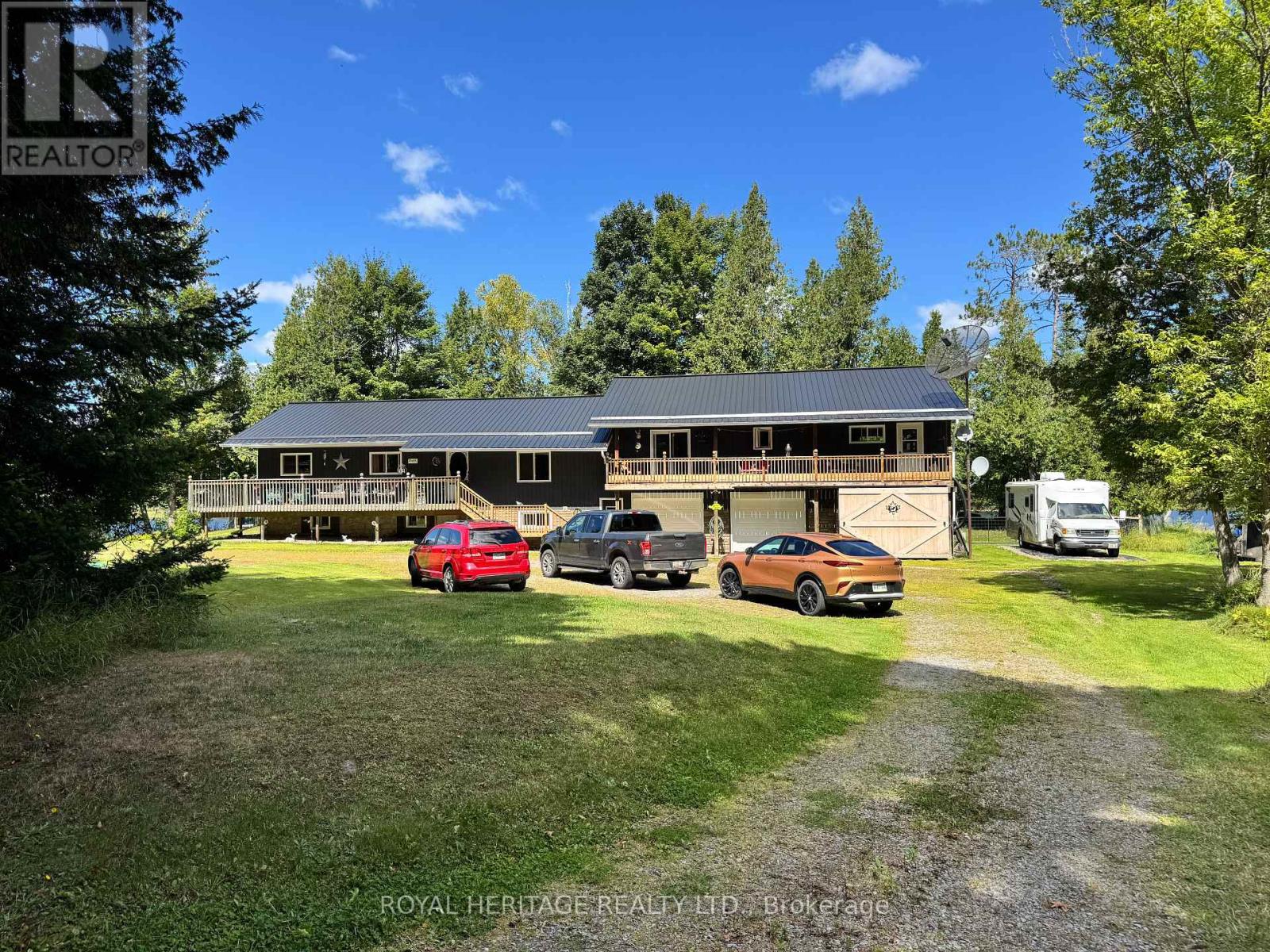 Nestled along 648' of pristine waterfront on Gaffney Lake (no gas boat motors) with a limestone base known for its remarkable clarity, excellent smallmouth and largemouth bass fishing and endless paddling adventures. This extraordinary property spans almost 3 acres of lakeside paradise. Thoughtfully designed for both family living and revenue potential, this waterfront home features 5 spacious bedrooms, a 2-car garage plus a convenient carport, and options for dual living or short-term rental use - think in-law suite or Airbnb-ready setup (2 water sources + 2 septic systems + geothermal heating). Warm your toes on the expansive deck and sunroom, both offering panoramic views of the shimmering lakeperfect for morning coffee or evening conversations around the sunset. Inside, an efficient and sustainable geothermal heating system ensures year-round comfort with whisper-quiet operation and minimal environmental footprint. For nature lovers, the locale is a treasure trove. Outdoor enthusiasts will delight in hiking and picnicking at Egan Chutes Provincial Park, just a short drive away. Bancroft itself offers community charm parks like Riverside, Millennium, and Vance Farm Park provide trails, picnic areas, live concerts, skate facilities and launches for canoeing or kayaking. This property is an idyllic blend of tranquility, comfort, and flexibility perfect for families seeking a lakeside sanctuary or investors tapping into vacation-stay demand in the Bancroft region. (id:61423)
