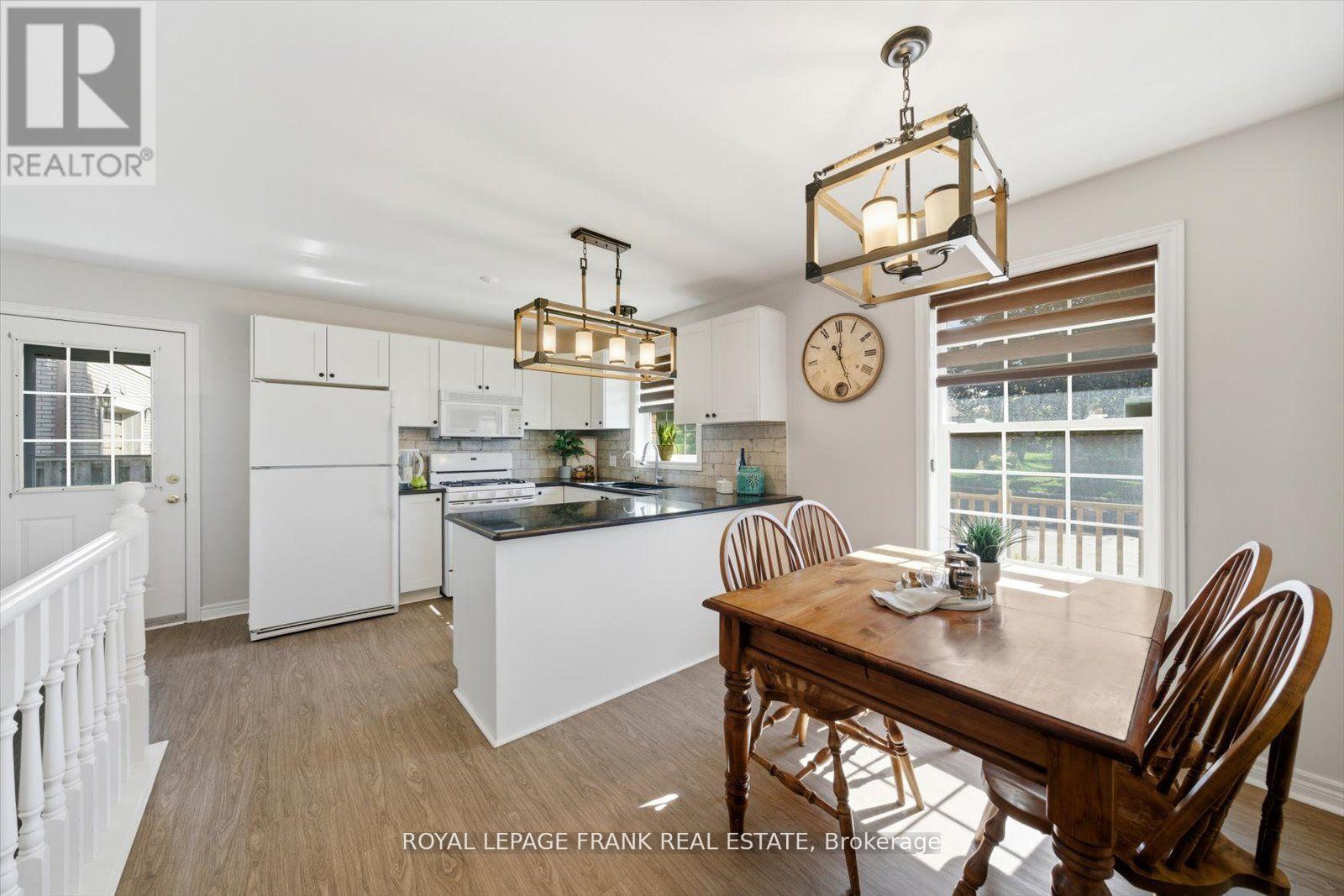 This bright and airy Renovated Bungalow features custom kitchen with granite counters &tile backsplash overlooking dining space. Updated flooring and freshly painted throughout. Large windows fill the space with natural light. - perfect for everyday living and entertaining. The main floor includes a generous primary bedroom, a second bedroom, stylish 4-piece bath & main floor laundry room. .Downstairs, the finished basement expands your living space with a spacious recreation room, a large 3rd bedroom, and a 3-piece bath. Step outside to a fenced backyard, offering plenty of room to relax, garden, or entertain. There is a power breaker for a future hot tub. Large driveway has been recently sealed and offers parking for up to 6 vehicles. Conveniently located close to downtown Lindsay, shops, restaurants, parks, and all amenities. (id:61423)