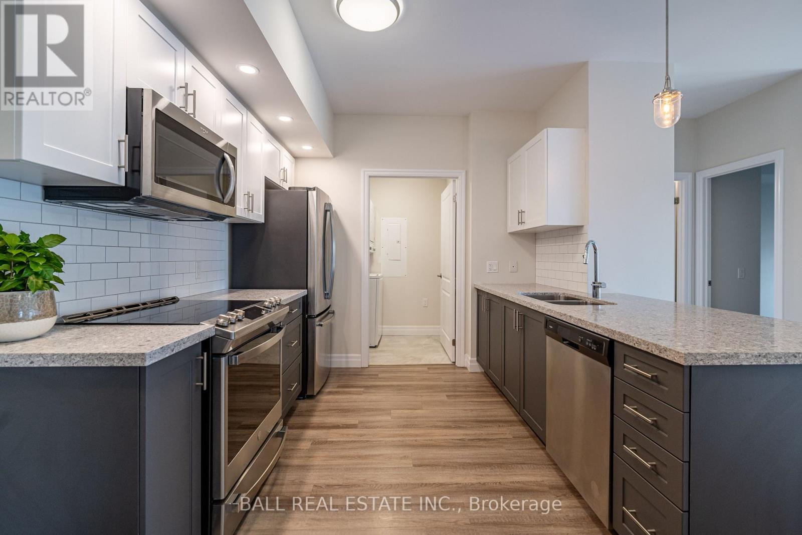 $374.82 MonthlyWelcome to 340 Florence Drive, Unit 308 a beautifully maintained, nearly new 2-bedroom, 2-bath condo in the sought-after Park West Condominiums, perfectly situated in Peterborough's west end community of Jackson Creek Meadows.This bright, modern unit features a thoughtful open-concept design that makes the most of every inch of space. The spacious, wheelchair-accessible layout includes a stunning kitchen with upgraded granite countertops, modern stainless-steel appliances, and a breakfast bar that flows seamlessly into the living and dining area. Engineered hardwood floors add warmth and style throughout, and the walkout to your private balcony offers a great spot to enjoy the outdoors.The primary bedroom is generous in size, complete with a large closet and a 3-piece ensuite. The second bedroom also offers excellent space and another large closet perfect for guests, a home office, or hobby room. With plenty of additional storage throughout, this condo truly combines comfort, convenience, and contemporary living. (id:61423)