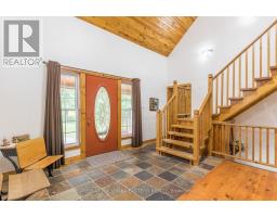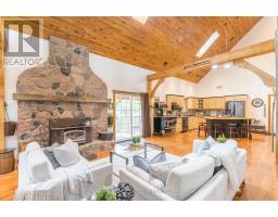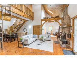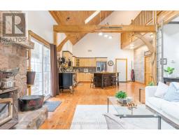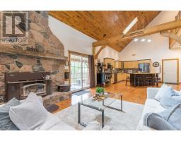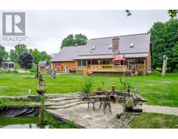 This executive home, built in 2005, features 3 bedrooms and 3 baths, plus a 1-bedroom, 1-bath in-law suite with a separate entrance. The main floor includes a primary bedroom with a 4-piece ensuite, a second bedroom, a 2-piece bath, a wood-burning fireplace, and an open concept living, dining, and kitchen area with hardwood floors. Enjoy the walkout to a covered deck with a hot tub. The second floor has a large bedroom with an ensuite and a loft overlooking the main floor. The basement offers a den, storage, and the in-law suite. The backyard includes a covered deck, outdoor fireplace, kitchen, pond, barn shed, and a playhouse or guest bunkie. This property backs onto a trail with biking access to Peterborough and Hastings, walking distance to Indian River. You have to see this home to appreciate what it truly offers. (id:61423)