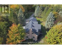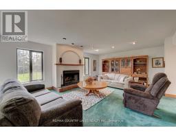 Looking for peace and tranquility outside of the city? Look no further! Welcome to this one owner, custom built home on over 24 Acres. Home is sitting well off the road in a beautifully treed setting surrounded by fields. On the main level you are greeted by a gracious foyer, curved staircase, bright living room, country size kitchen, and den or office area. The large back entrance with walk out to garage, offers plenty of closet space, and a three-piece bath. For your extra enjoyment there is also a sunroom with views overlooking the mature yard, gardens and patio. The second level offers three bedrooms, a large sitting area, and a four-piece bath with sky light. Enjoy extra living space in the basement with a finished recreation room, two other finished rooms, perfect for guests or entertaining. Also a laundry room with two piece bath, and a large utility room. The peaceful, relaxing back yard opens to acres of land, a barn suitable for livestock, and a vegetable garden area for those with a green thumb. Welcome to this beautiful home and property. Only 1.5 hours from the GTA. (id:61423)