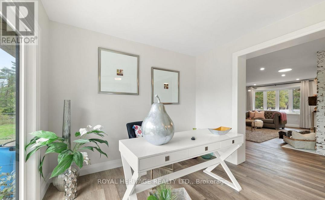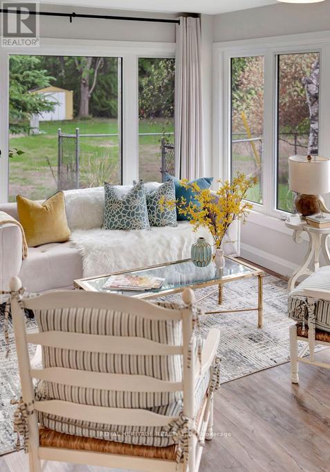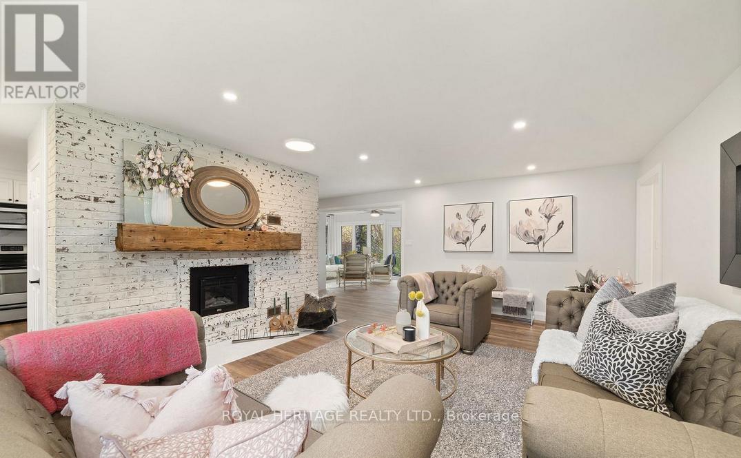 Welcome to your slice of serenity in the heart of the Kawarthas! This beautifully updated 2-bedroom, 2-bath all brick bungalow sits on close to a half-acre lot just minutes from the charming town of Bobcaygeon. With 1,226 sq ft of thoughtfully redesigned living space, this home blends modern upgrades with cottage-country warmth. Recent improvements include newer windows, front & garage doors, furnace and A/C. Now let's step inside where this inviting interior showcases stone fireplace at the heart of this home, seamless flooring, potlights, and decorated in neutral tones. Features a modern kitchen with stainless steel appliances, ample cabinetry, and open flow to dining room. The sunroom sanctuary overlooks a spacious, fully fenced, private garden; perfect for morning coffees and evening sunsets. Generous 2 bedrooms with the primary bedroom boasting it's own 3-piece ensuite. Plus a bonus loft with skylight which is an ideal nook for a studio, playroom, or home office. Other conveniences include main floor laundry, garage access and parking for 8. Nestled between three scenic islands and two of Ontarios most beautiful lakes. So if you are seeking a peaceful year-round property that's turnkey ready to live, laugh, and play in one of Ontarios most beloved cottage regions then THIS is the place you will love to call home. (id:61423)