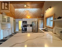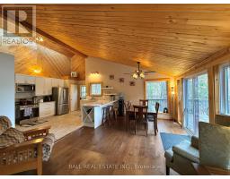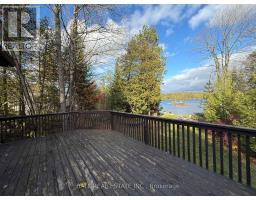Updated 4 season cottage on picturesque Pencil Lake! Featuring approx 230ft of waterfront and over 1 acre of privacy on a year-round municipal road with a private, level entry driveway to this charming lakehouse. Beautiful new kitchen & appliances within the last year, and several major updates including propane furnace & fireplace, roof, windows, hardwood floors and full walkout basement remodel (2018). Bright 18' cathedral ceiling in the open concept kitchen, beautiful stone propane fireplace in the living room and walkout to massive wrap-around deck from the dining room. 3 bedrooms and 4pc bathroom on the main floor and 2 bedrooms and 3pc bathroom in the updated basement with rec room and walkout patio. Level, well treed lot with beautiful views and complete natural waterfront privacy; sit on the dock surrounded by nothing but nature! Great storage outbuildings with newer shed (2023) plus lakeside storage shed. Peaceful Pencil Lake awaits! (id:61423)