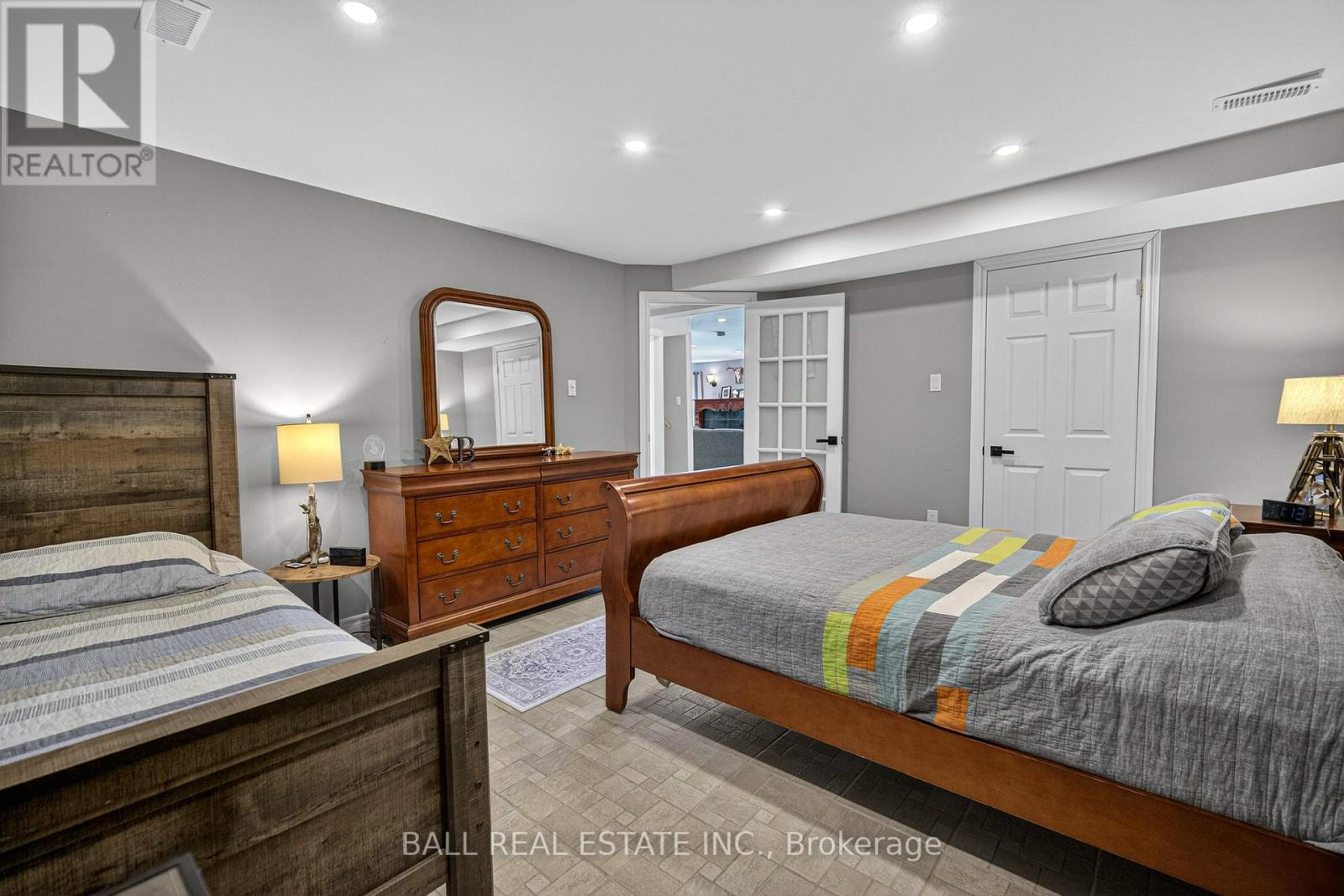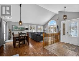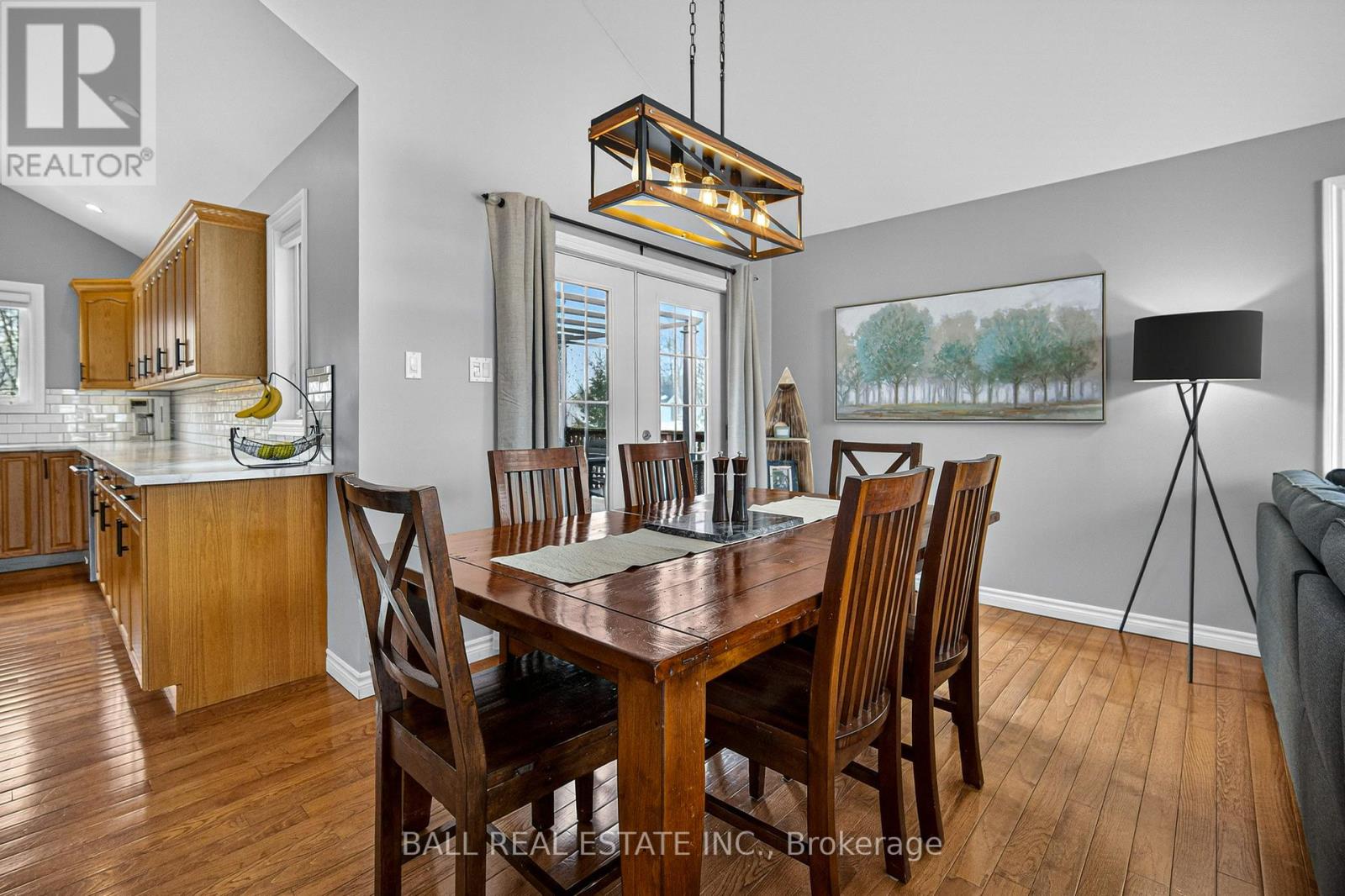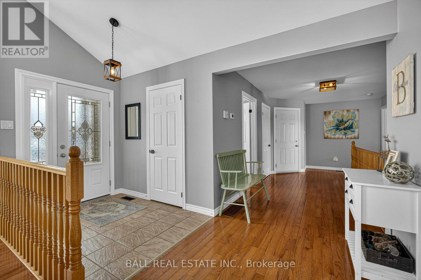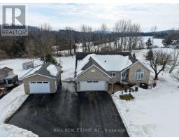| PRIVATE CUSTOM BUNGALOW WITH WALK-OUT ON JUST UNDER 1 ACRE| 3 GARAGE SPOTS | 3 MIN TO THE TRENT RIVER and TOWN | Tucked away on a quiet cul-de-sac and set on just under 1 acre, this custom-built bungalow with walk-out basement offers a rare blend of privacy, natural beauty, and refined comfort - only 3 minutes to the Trent River and the vibrant town of Campbellford. Surrounded by nature with no residential neighbours behind, enjoy regular wildlife sightings and a peaceful backyard retreat. Inside, 2,585 sq.ft. of finished living space unfolds with vaulted ceilings, expansive windows, and an open-concept design that fills the home with natural light. The entertainer's kitchen features abundant cabinetry, generous counter space, and new stainless steel appliances (2025), flowing seamlessly into the bright living and dining areas with walk-out to a large deck with pergola - perfect for outdoor dining and relaxing evenings. The home offers 2+2 bedrooms and 3 full bathrooms, including a spacious primary suite with private ensuite. The finished walk-out lower level adds a massive rec room with gas fireplace, two additional bedrooms, a full bathroom with laundry, and extensive storage. Ideal for hobbyists or car enthusiasts, the property features 3 garage spaces - a double attached garage with interior access plus a newer 18' x 24' insulated and heated detached garage/workshop with 60-amp service. Parking for 6+ vehicles. Additional features include, municipal water, natural gas heat, 200-amp service, GenerLink connection, vinyl windows, H.E.furnace, central air, exterior accent lighting, and appliances (2024-2025) included. A private lifestyle property just minutes to the Trent-Severn Waterway and all Campbellford amenities. (id:61423)