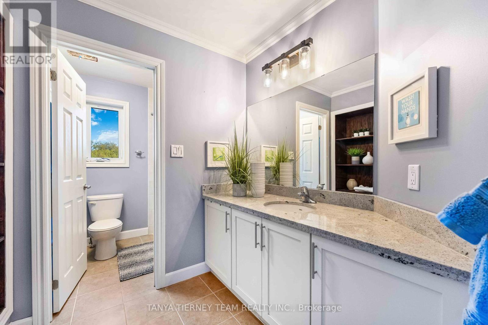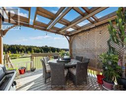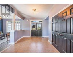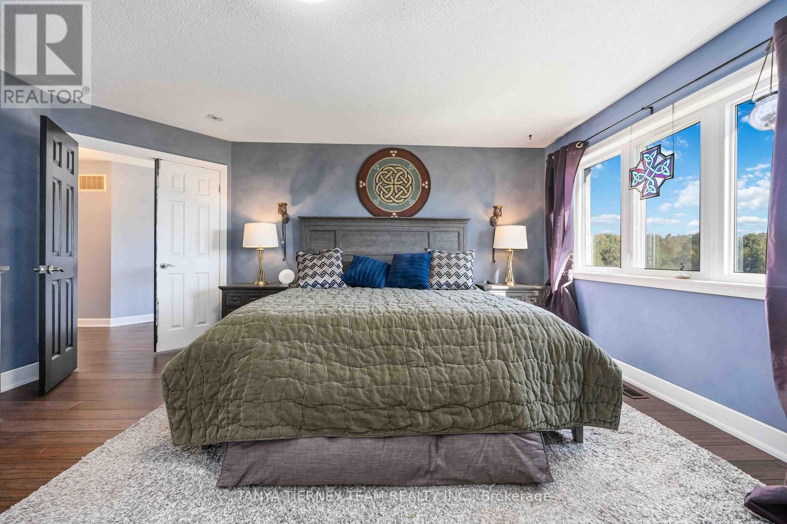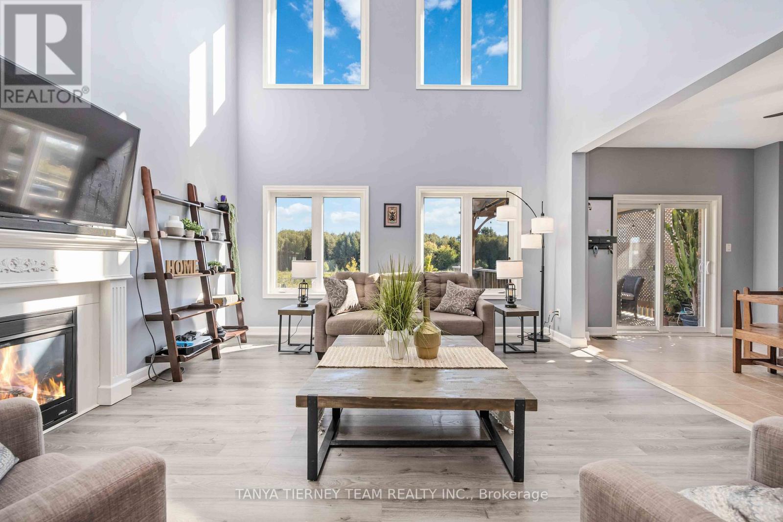 Incredible value and rarely offered 4+1 bedroom, 3 car garage, estate home with walkout basement, on a picturesque 0.7 acre pie shaped lot bordering on pristine conservation land. Welcome to the amazing community of Eden Park, a hamlet of custom built estate homes located on the outskirts of Clarington just a minute from 401 access. Ample parking on the triple wide and extra deep driveway, with landscaped exterior and path to the oversized porch. Inside you'll find 9 foot ceilings and over 3100 square feet that features an open concept layout filled with natural light. Upgraded lighting and flooring throughout the main level, with a stunning and spacious granite kitchen and breakfast area walkout to the elevated deck with pergola and sitting area overlooking the greenspace. The great room is truly the centrepoint to this layout, with 15 foot ceilings open to the above hall, granting panoramic views from both levels, and a gas fireplace for cozy evenings. The main floor laundry with access to the huge 3 car garage has a brand new washer and dryer. The upper level is entirely done in gorgeous bamboo flooring, with the primary bedroom boasting a deep walk in closet, and large 5 pc ensuite with dual sinks, granite counters and soaker tub. Additionally, the 2nd bed offers his and hers closets with built in custom shelving. The 3rd and 4th beds are both spacious with large windows, and a large 4 piece main bath with granite counters. What more could you ask for? How about a bright walk out basement with an additional finished 5th bedroom, and some interior walls installed just waiting for your finishing touches! (id:61423)