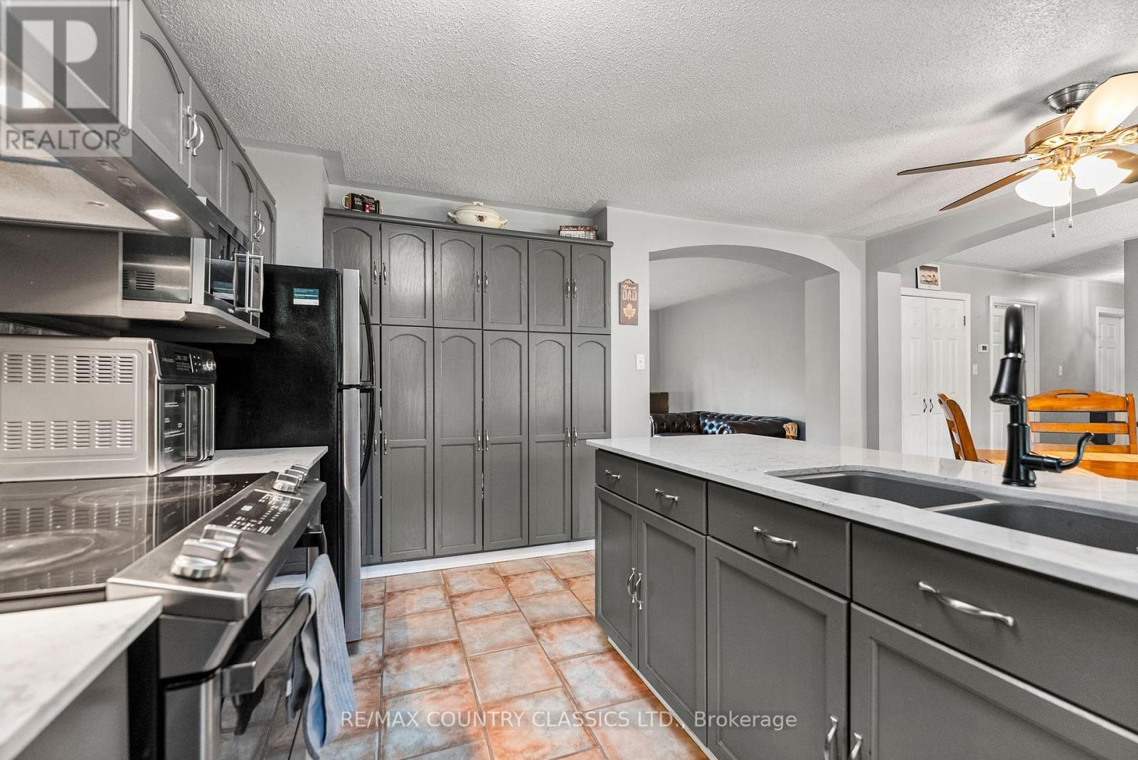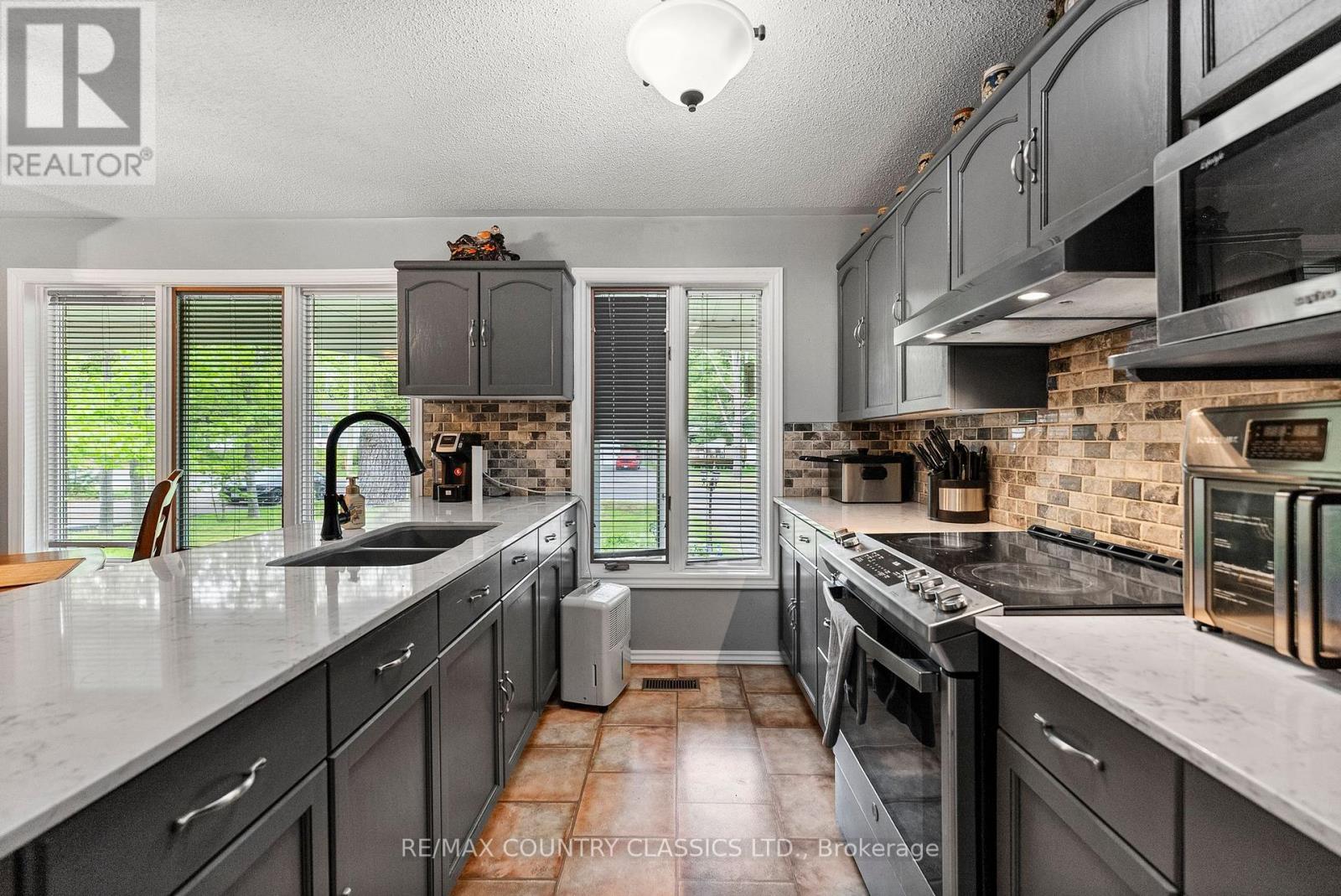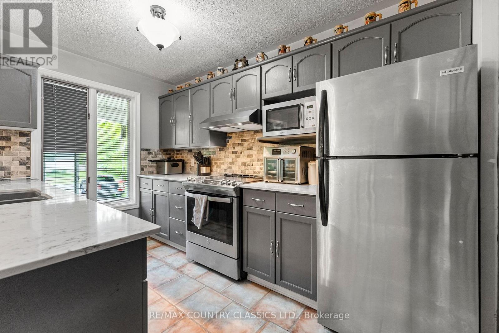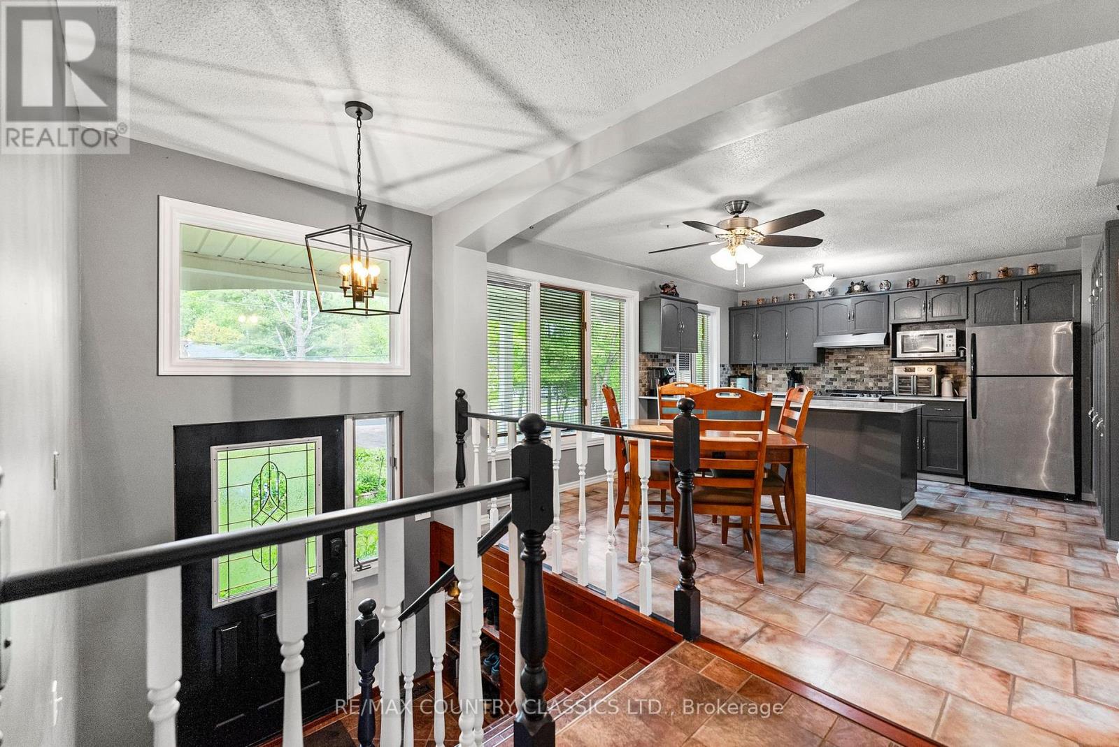 ESCAPE TO BANCROFT - This beautiful, upgraded raised bungalow on a large, level landscaped lot is a perfect family or retirement home. Featuring 3 bedrooms and 2 baths, lovely open concept kitchen and dining areas with quartz counter tops, lots of cupboards, tile flooring and includes all stainless steel appliances. Home has many updates over the years, including hardwood and tile floors throughout the main floor. There is an upgraded septic bed, town water and now has a Generator hook up for emergency power outages. Livingroom has a patio door walkout to the newer back yard deck. A fully finished family rec room on the lower level with potential for a 4th bedroom provides all the extra space needed. The backyard is well treed, fenced on both sides and has a very private parklike setting to enjoy. There's lots of storage, and an attached garage. Close to the Heritage Trail, an 18 hole golf course, many lakes and only minutes to downtown Bancroft for all amenities, shopping, schools and hospital. Great high speed internet and cell service. This is truly a fantastic property for anyone seek great town living! Offers welcome anytime! (id:61423)