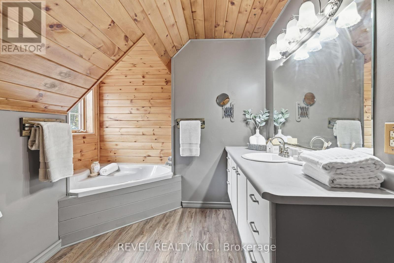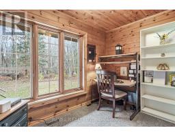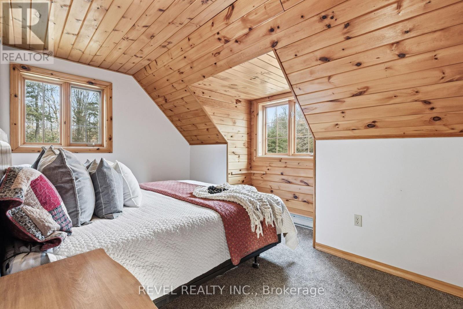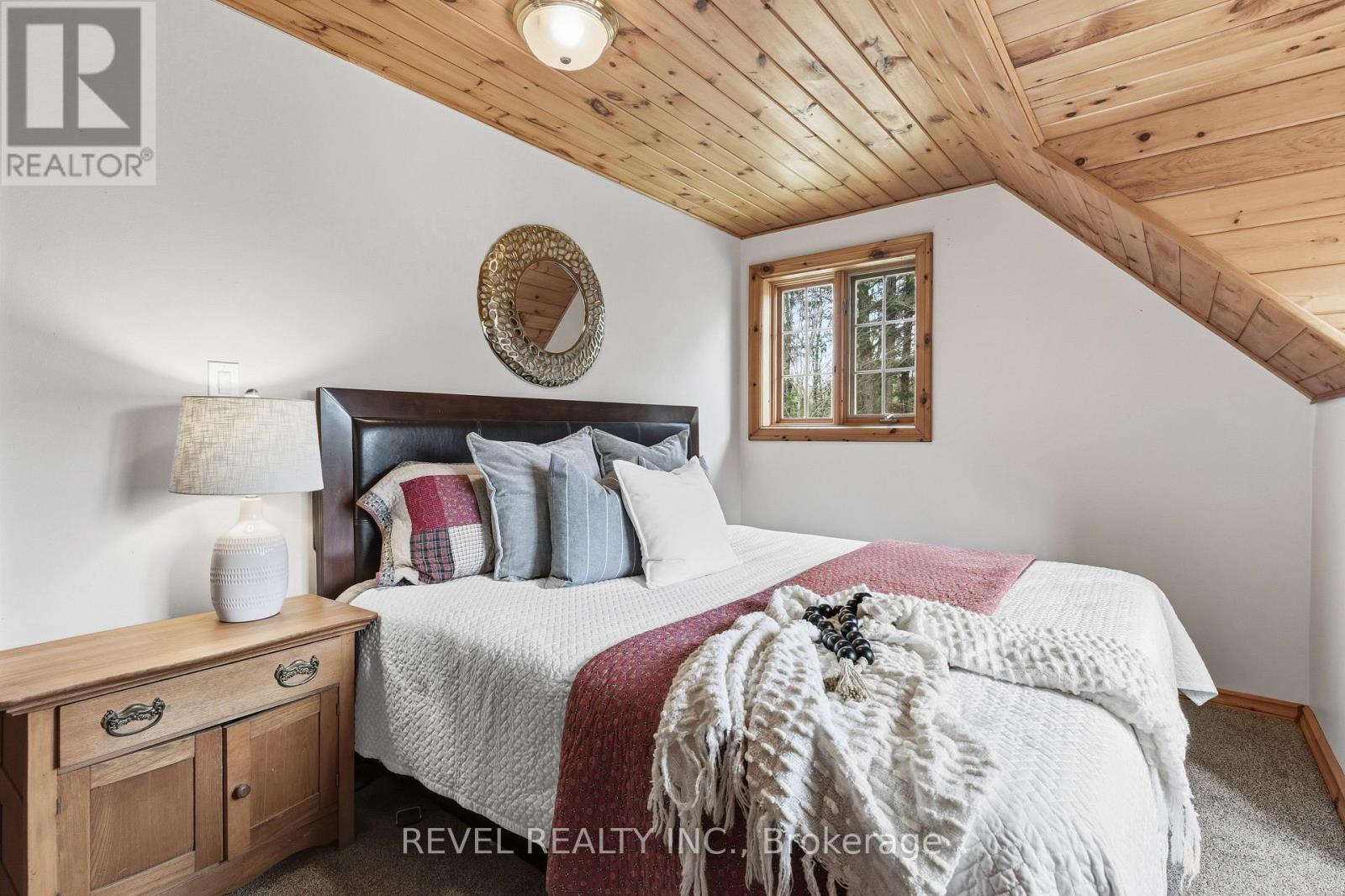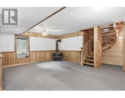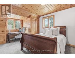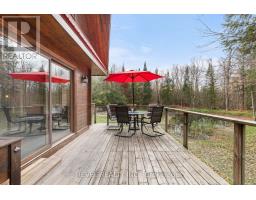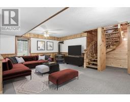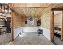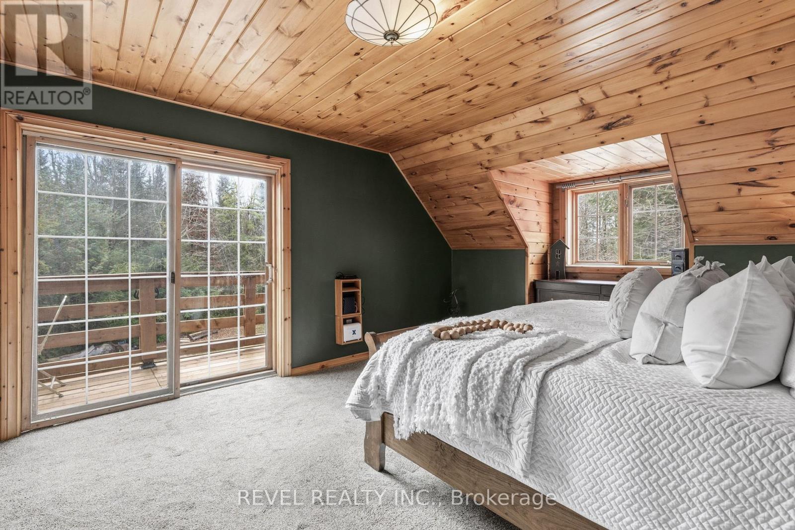 4+1 bedroom 3 bathroom log home with metal roof, offers the perfect balance of rustic charm and modern comfort. Walk in and be mesmerized by the grand foyer & living area, cathedral wood ceilings, cozy fireplace and abundant natural light from picturesque windows creating a warm and inviting atmosphere.The kitchen/dining combo is a cooking paradise, featuring newer appliances, propane stove, OTR microwave, pantry and ideal for both daily living and entertaining. Gorgeous spiral natural wood staircase leading you to the upper level of the home with additional bedrooms, full bathroom and sitting area loft. Primary Suite with walk out Juliet Deck. Lower level with full recreational room, laundry area, sauna, work out area, bathroom and walk out to yard. Step outside to the expansive wraparound deck with breathtaking views of the pond and surrounding 1.89 acres of forest. Bonus three car detached garage with hydro. (id:61423)