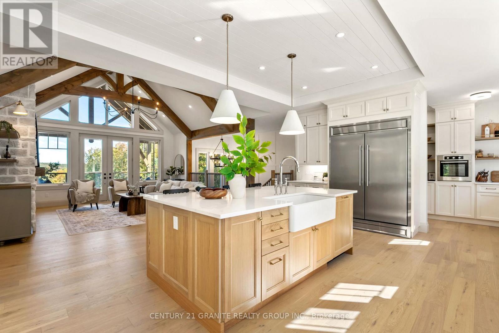 Stunning 2025 custom-build, full of intention and craftsmanship. Set on just under 6 acres. Styled to capture sophisticated Modern French Country charm that pairs warmth with a natural palette of creamy whites, warm taupes, and soft sage. Layered with textured features, gentle lighting, clean lines rooted in organic materials like natural oak, warm timbers, stone, and linens. The chefs kitchen features a six burner propane stove with pot filler, commercial fridge, bakers pantry with separate sink and wall oven. Step into the inviting foyer, dual mudrooms, then continue through to find two wings: a master retreat with balcony, fireplace, walk through closet, and six piece spa ensuite. The second wing boasts two bedrooms, both with walk-in closets, and shared access to a four piece bath. Luxury continues to the in-law-capable lower level. Engineered hardwood heated floors throughout, soaring ceilings, this space is airy, and sun filled. Three expansive bedrooms, two full spa-like baths, large kitchenette, second dedicated laundry room, and spacious yet cozy living room with direct access to a large level yard. Indoor outdoor living, thoughtful design, and timeless craftsmanship make this home a true private retreat. EXTRAS: Wired for GENERAC, radiant in-floor heating, forced air propane furnace, drilled well, septic system, high speed bell Internet, DOUBLE ATTACHED garage, 5.6 acres, great privacy and year round township road access. (id:61423)