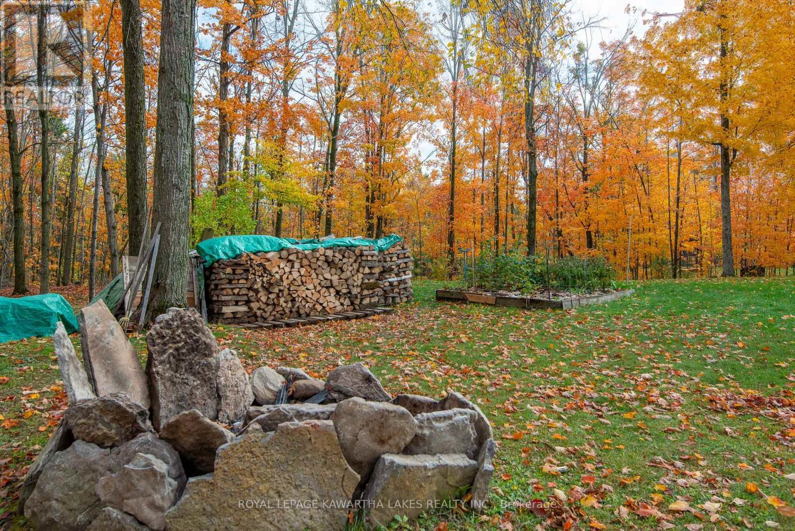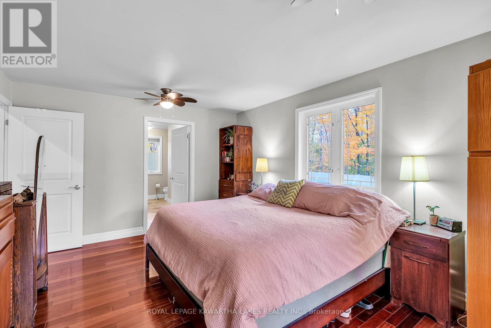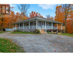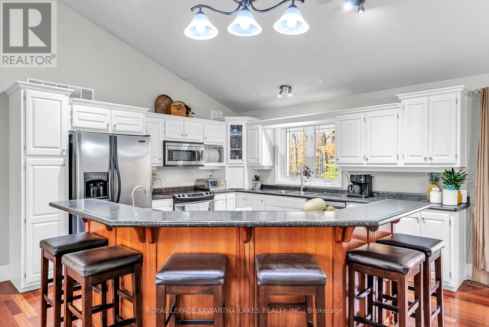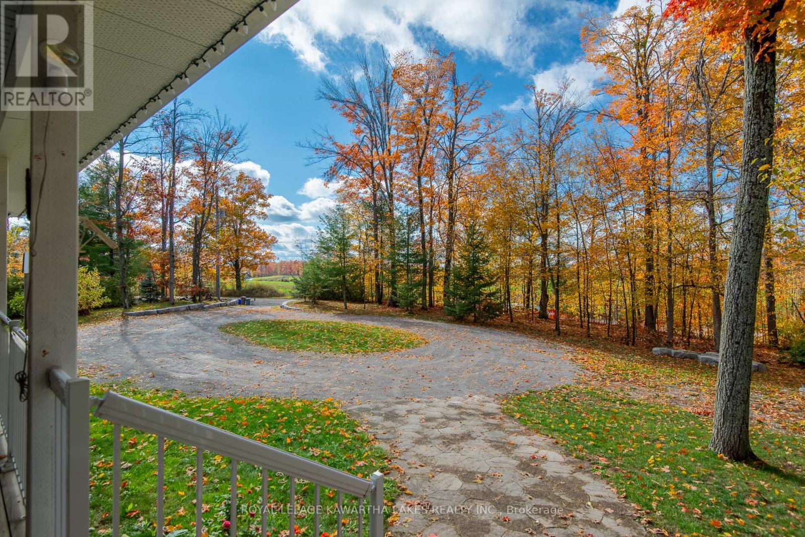 Welcome To This Well Built Bungalow On A 1 Acre Lot Just Minutes Outside Bobcaygeon, Offering The Perfect Blend Of Country Tranquility And Modern Comfort. Backing Onto A Peaceful Mixed Forest With Mature Maple Trees, This Home Features Premium Maibec Wood Siding, A Circular Driveway With Armour Stone Landscaping, And A Wrap-Around Covered Porch. Inside, You're Greeted With An Open-Concept Living, Dining, And Kitchen With Beautiful Brazilian Cherry Wood Flooring & Walk-Out Access To The Rear Covered Porch, Perfect For Entertaining Or Relaxing Outdoors. The Primary Bedroom Features A 5-Piece Ensuite With Double Vanity, While Two Additional Bedrooms Share A 4-Piece Bath On The Opposite Side Of The Home. The Partially Finished Basement Offers 9-Foot Ceilings, A Walk-Out To The Backyard, A Roughed-In Bath, And A Cozy Wood Stove For Backup Heat. Complete With Forced Air Oil Heating, Central Air, A Drilled Well, Septic System, This Property Is Ready To Enjoy! (id:61423)