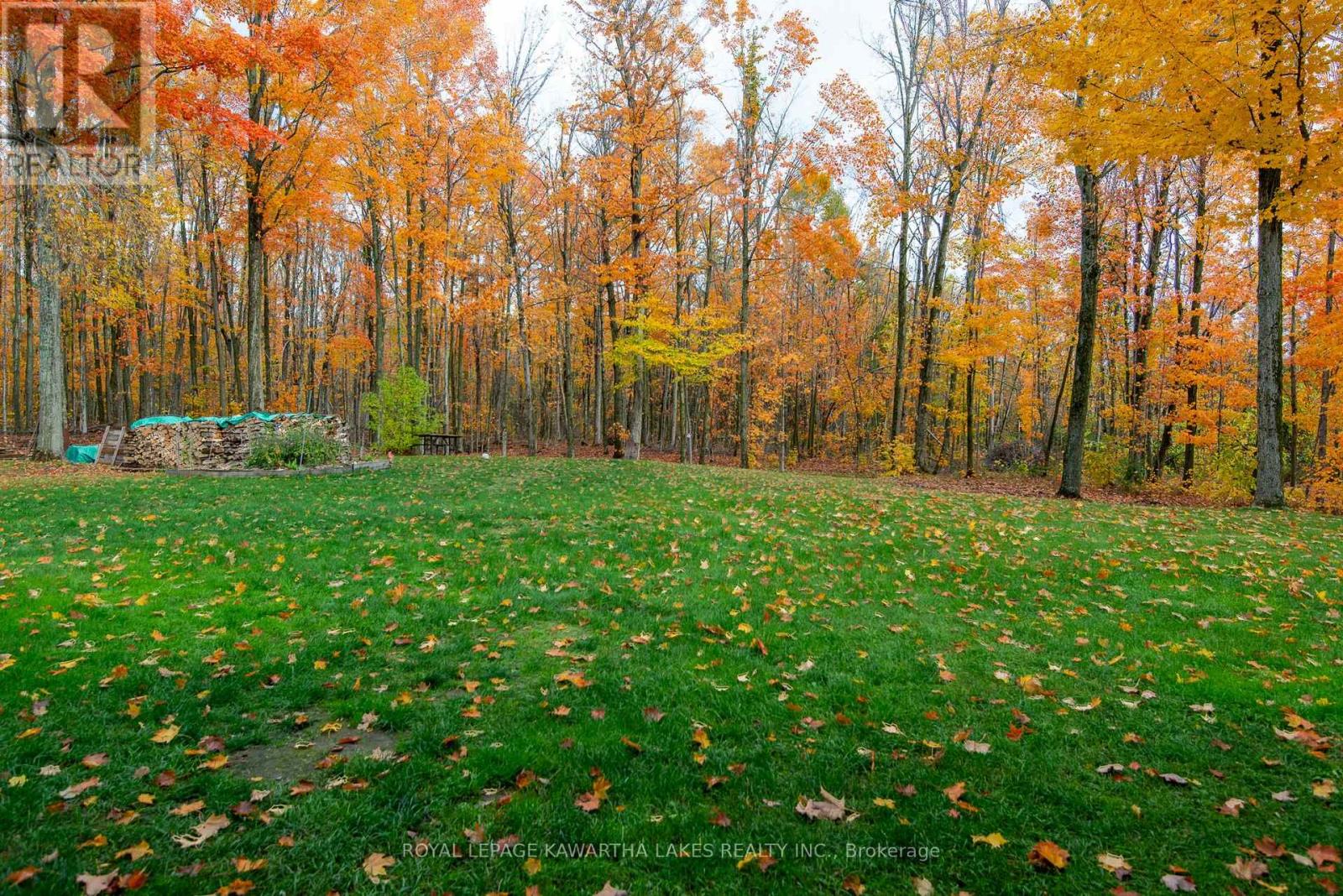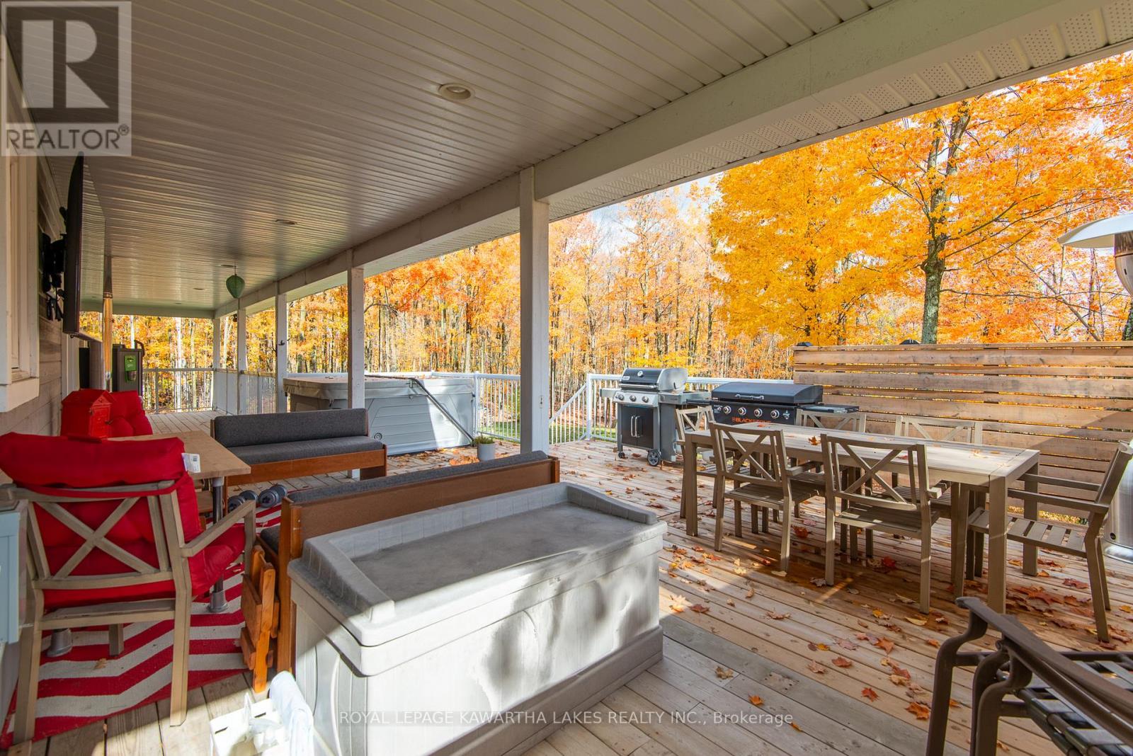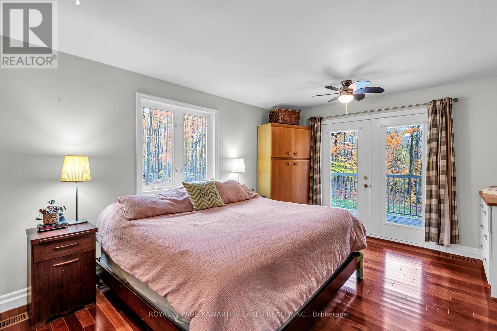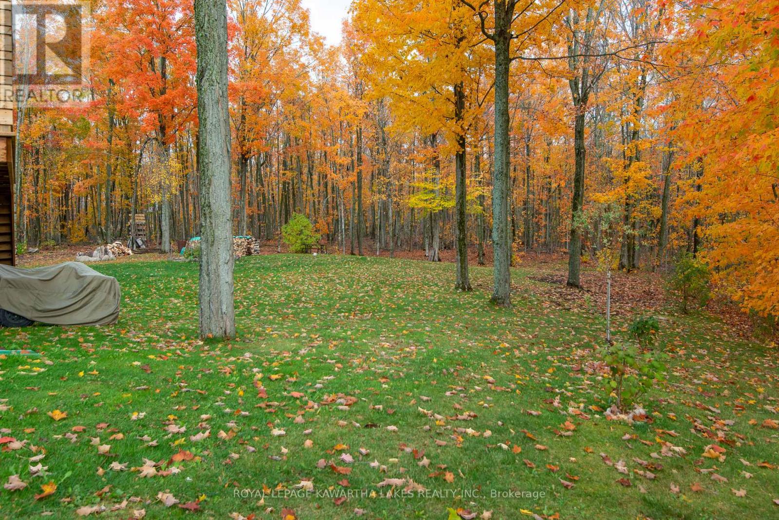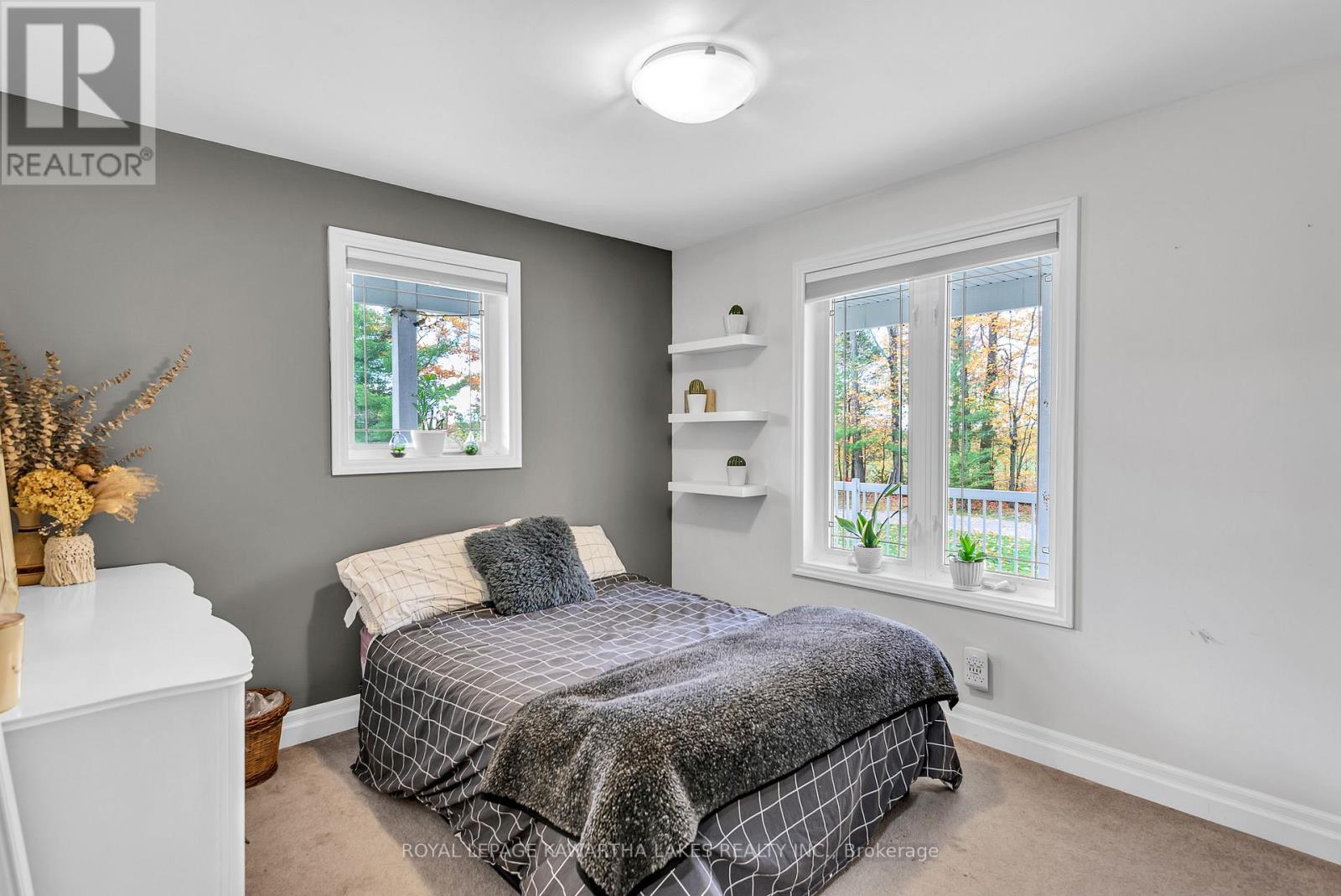 Welcome To This Well Built Bungalow On A 1 Acre Lot Just Minutes Outside Bobcaygeon, Offering The Perfect Blend Of Country Tranquility And Modern Comfort. Backing Onto A Peaceful Mixed Forest With Mature Maple Trees, This Home Features Premium Maibec Wood Siding, A Circular Driveway With Armour Stone Landscaping, And A Wrap-Around Covered Porch. Inside, You're Greeted With An Open-Concept Living, Dining, And Kitchen With Beautiful Brazilian Cherry Wood Flooring & Walk-Out Access To The Rear Covered Porch, Perfect For Entertaining Or Relaxing Outdoors. The Primary Bedroom Features A 5-Piece Ensuite With Double Vanity, While Two Additional Bedrooms Share A 4-Piece Bath On The Opposite Side Of The Home. The Partially Finished Basement Offers 9-Foot Ceilings, A Walk-Out To The Backyard, A Roughed-In Bath, And A Cozy Wood Stove For Backup Heat. Complete With Forced Air Oil Heating, Central Air, A Drilled Well, Septic System, This Property Is Ready To Enjoy! (id:61423)