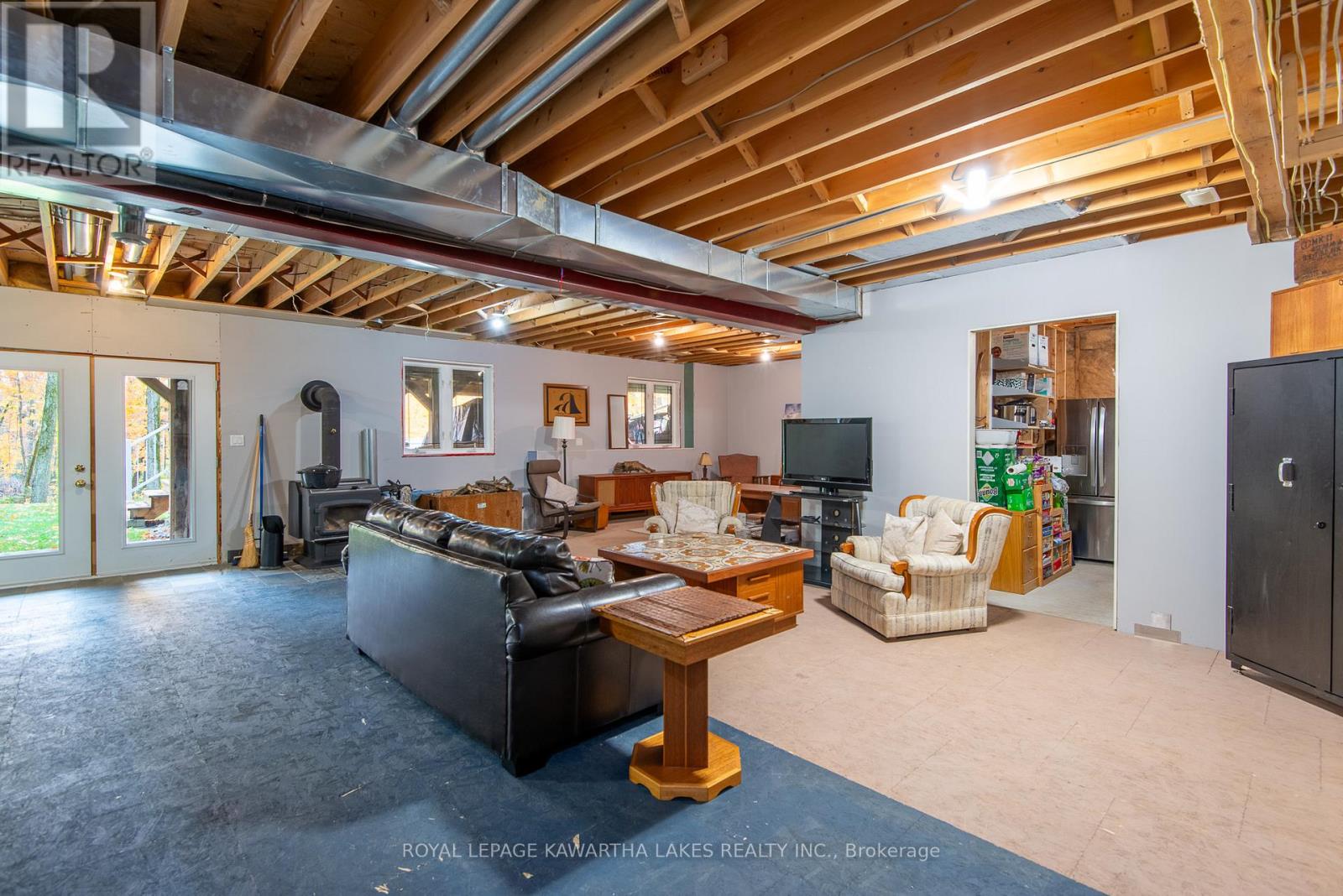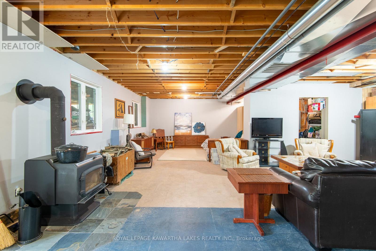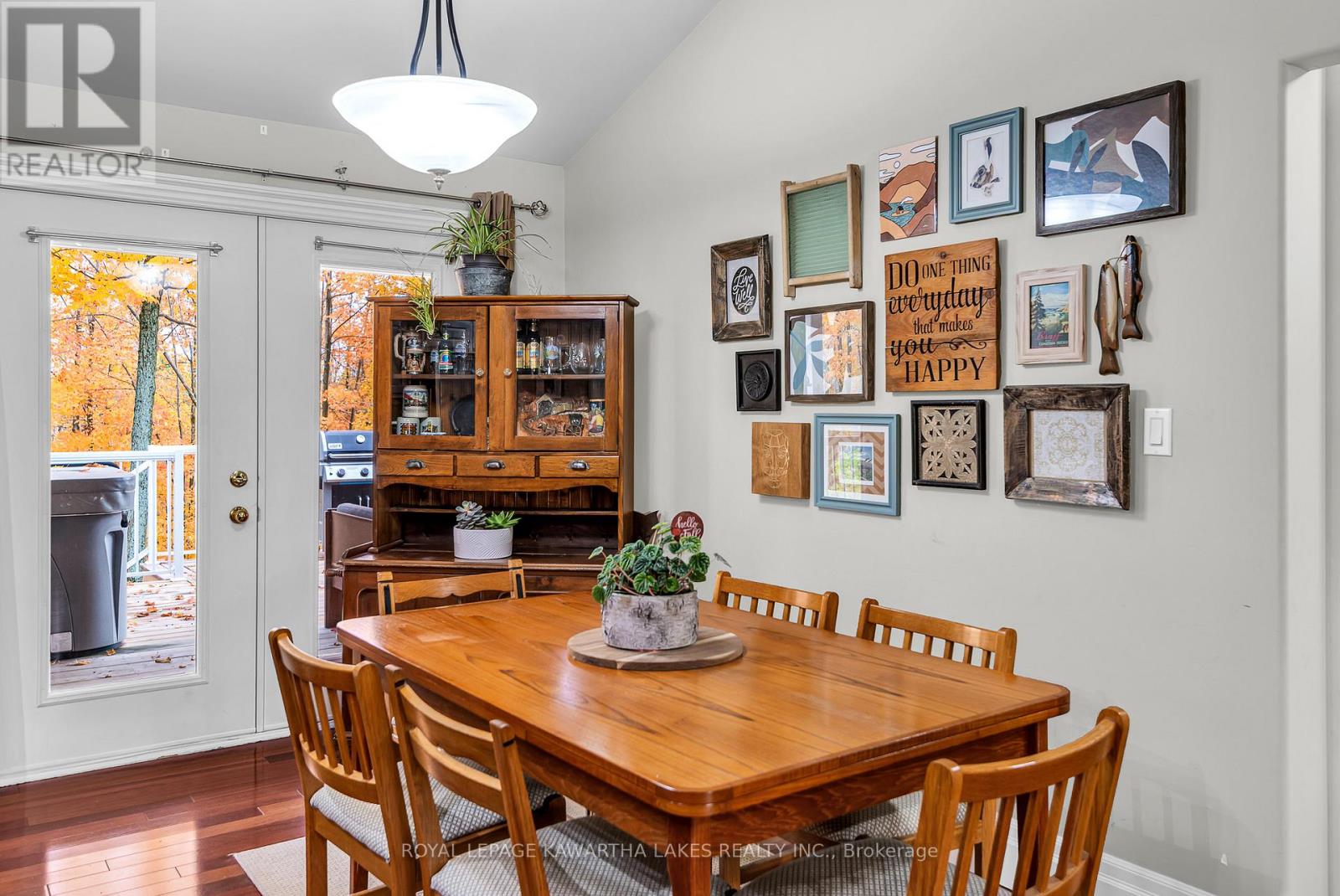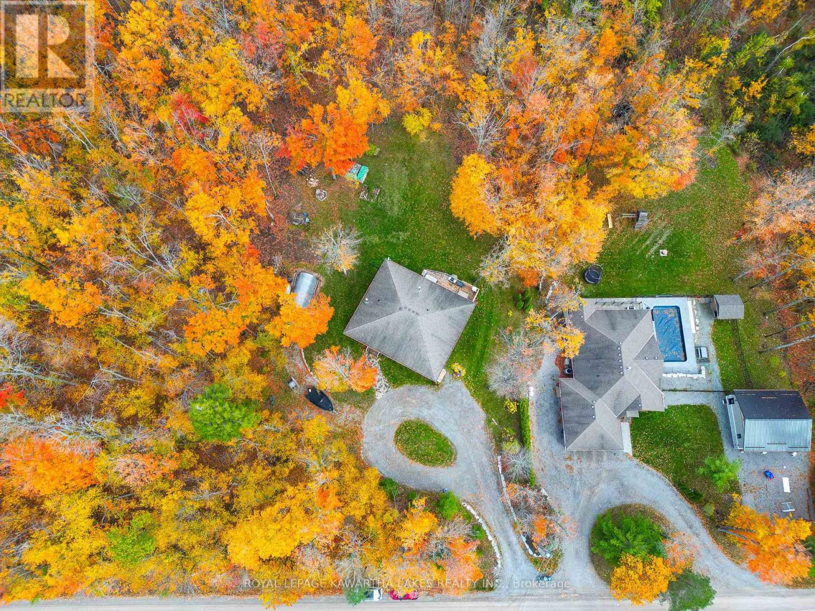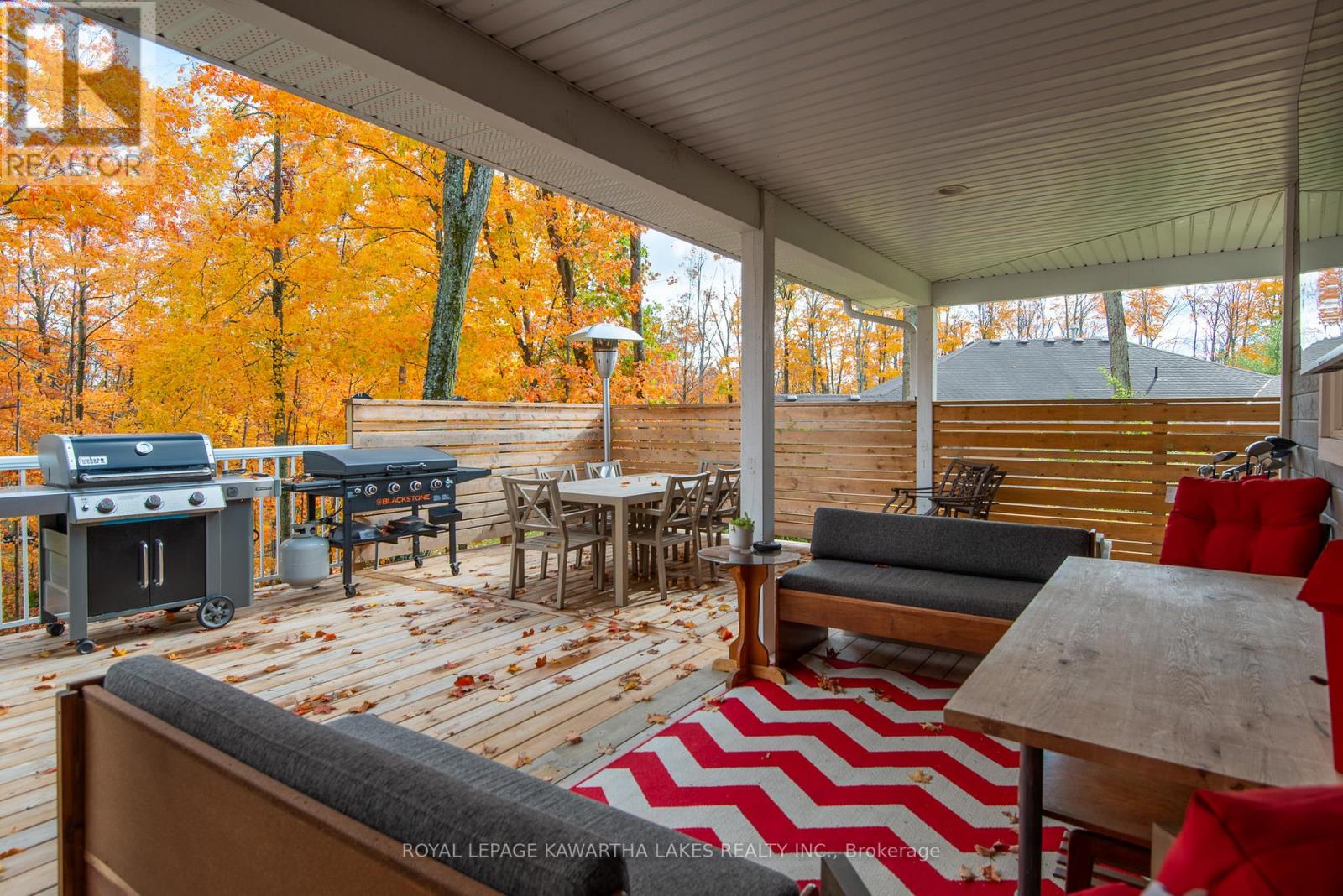 Welcome To This Well Built Bungalow On A 1 Acre Lot Just Minutes Outside Bobcaygeon, Offering The Perfect Blend Of Country Tranquility And Modern Comfort. Backing Onto A Peaceful Mixed Forest With Mature Maple Trees, This Home Features Premium Maibec Wood Siding, A Circular Driveway With Armour Stone Landscaping, And A Wrap-Around Covered Porch. Inside, You're Greeted With An Open-Concept Living, Dining, And Kitchen With Beautiful Brazilian Cherry Wood Flooring & Walk-Out Access To The Rear Covered Porch, Perfect For Entertaining Or Relaxing Outdoors. The Primary Bedroom Features A 5-Piece Ensuite With Double Vanity, While Two Additional Bedrooms Share A 4-Piece Bath On The Opposite Side Of The Home. The Partially Finished Basement Offers 9-Foot Ceilings, A Walk-Out To The Backyard, A Roughed-In Bath, And A Cozy Wood Stove For Backup Heat. Complete With Forced Air Oil Heating, Central Air, A Drilled Well, Septic System, This Property Is Ready To Enjoy! (id:61423)