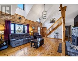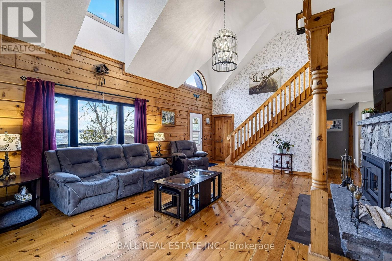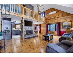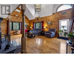 183 Feet of Prime Waterfront located at 36 Fire Route 7A on Lovesick Lake that is part of the Trent Severn Waterway; giving you unlimited swimming, boating and fishing right from your very own dock! Offering a Confederation Log home with upgrades throughout including kitchen, bathrooms, windows, roof, heating, air, fireplace, 3rd bay of garage, sheds, lakeside gazebo and more! The home offers on the main floor a beautiful kitchen, dining room open to living area with cathedral ceilings and a new wood burning fireplace with walk out to your large deck for entertaining, primary bedroom overlooking the lake, stunning bathroom and laundry. On the second level we have a nice open area for an office overlooking the lower level, 2 bedrooms and gorgeous 4pc bathroom. Positioned on 1.1 of an acre surrounded by tall mature trees giving you all the privacy that you would need to enjoy your waterfront. Featuring a triple car garage & paved driveway, large garden shed, lakeside bunkie, firepit area on granite rock, lakeside gazebo to relax and enjoy the breath-taking western sunsets! Clean deep waterfront for swimming! Book your showing today! (id:61423)