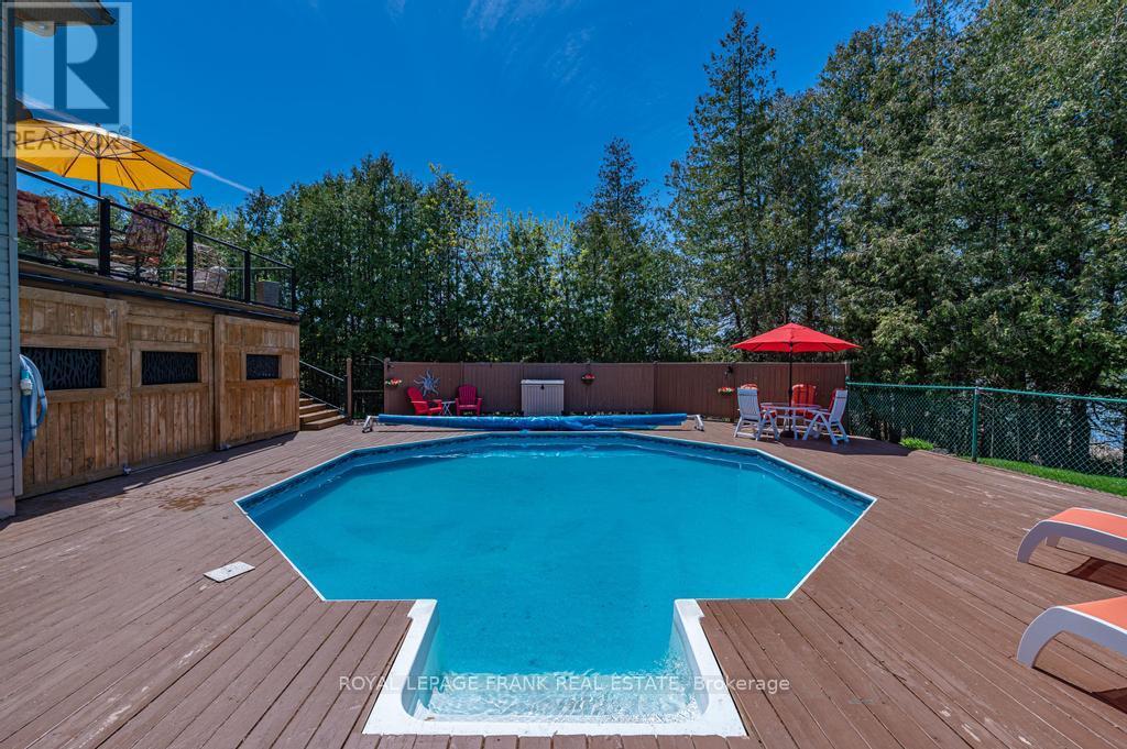This fabulous home is located on Lower Pigeon Lake and is part of the Trent Severn Waterway with lock free boating on 5 lakes. From start to finish, this lovely bungalow shows to perfection with over 3,200 sq. ft. of living space. The updates are endless. Just move in and enjoy life in the Kawarthas. The main floor features an open concept kitchen, dining, living, and games room. Most of the windows were replaced in 2023/2024 and offer great open water views and create a bright and cheery atmosphere. A walkout from the dining area leads to a large new composite deck which is great for entertaining and has stairs leading to the pool area. The primary bedroom is waterside and has a walkout to a deck and an ensuite bath. The fully finished lower level includes a bedroom with a lakeview, 2 other rooms which could be used as office space, a bar and a lounge area with a gym and full bath. A walkout leads to a lovely stone path which gives an easy access to the water and the peaceful dock area. The gardens are stunning with lots of perennials to keep it easy, the lawn is manicured and a new fence for extra privacy. Great location. Close to Peterborough and good access to highways for commuting. Located on a township road and a school bus route. (id:61423)