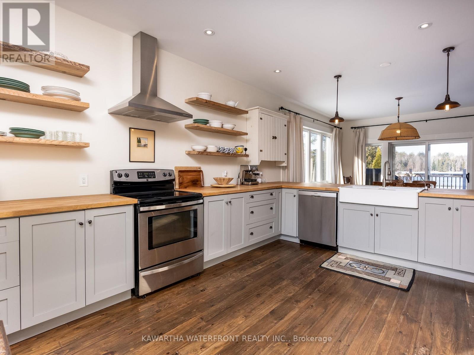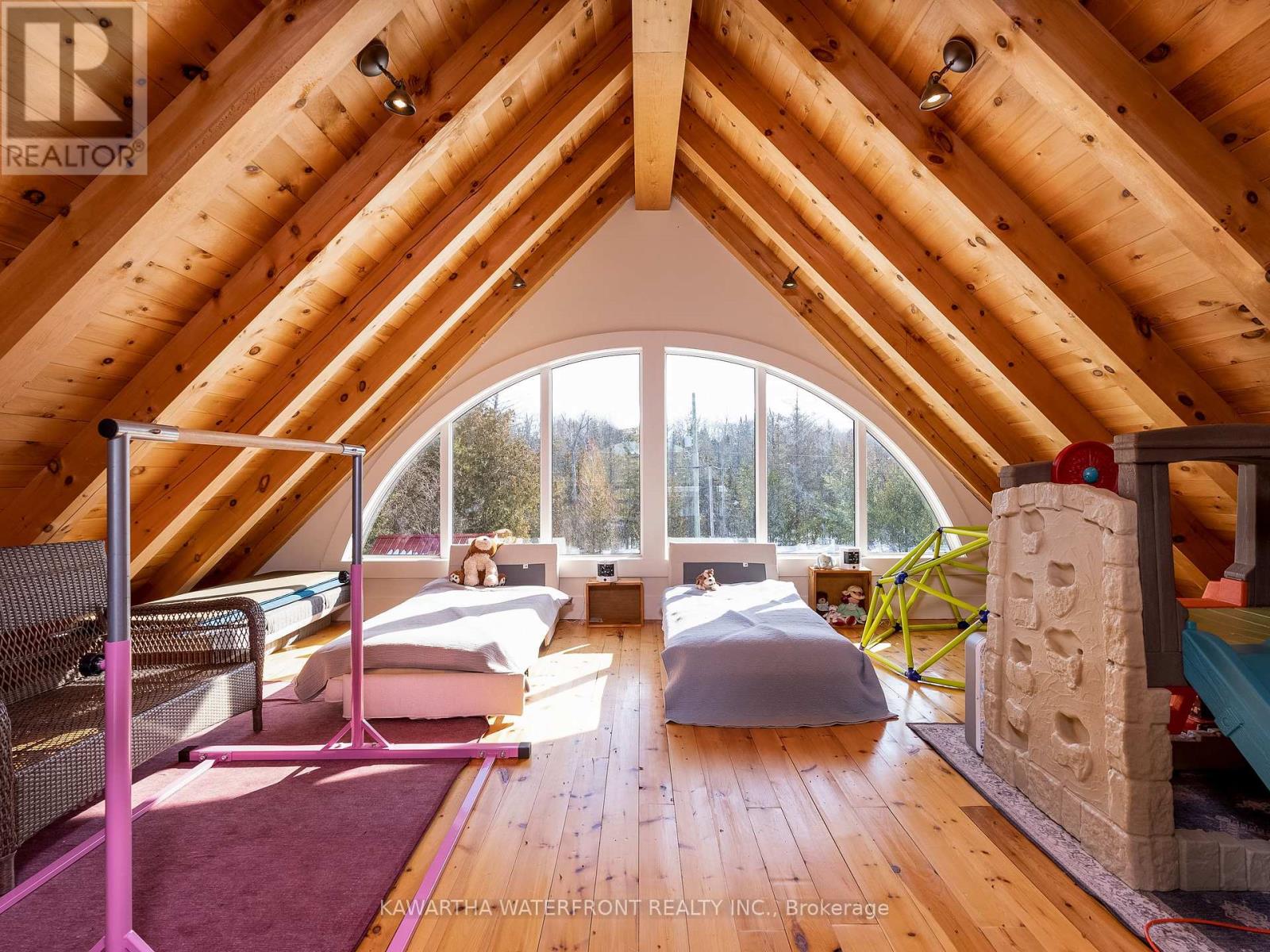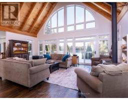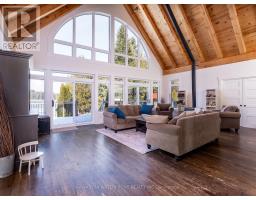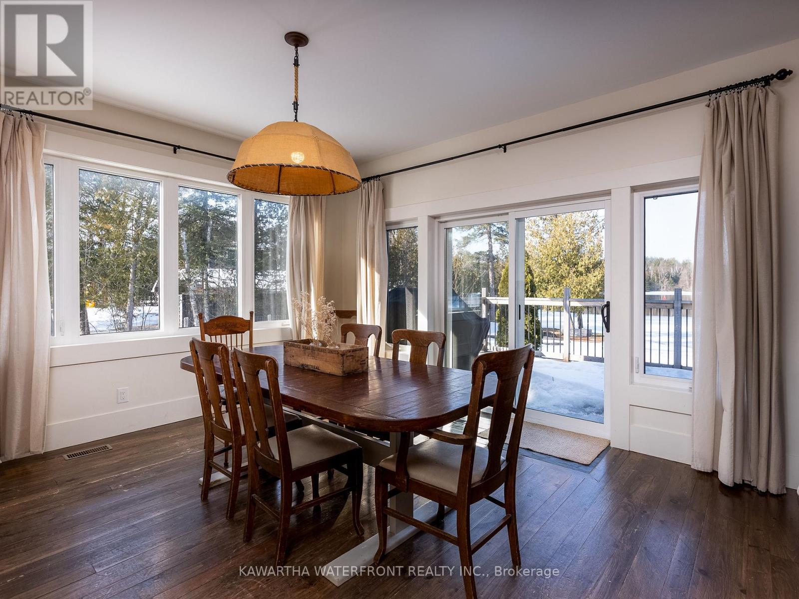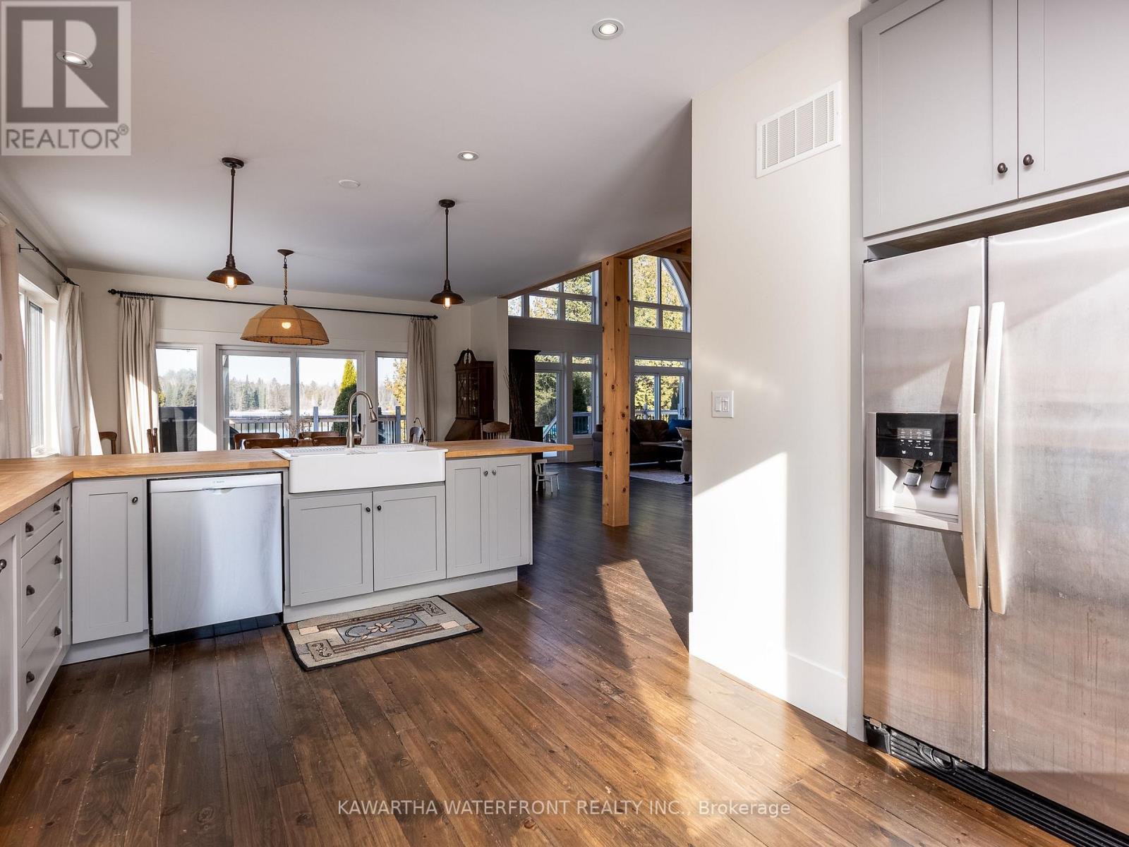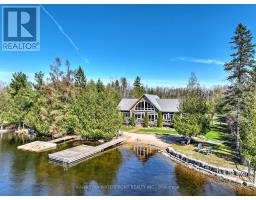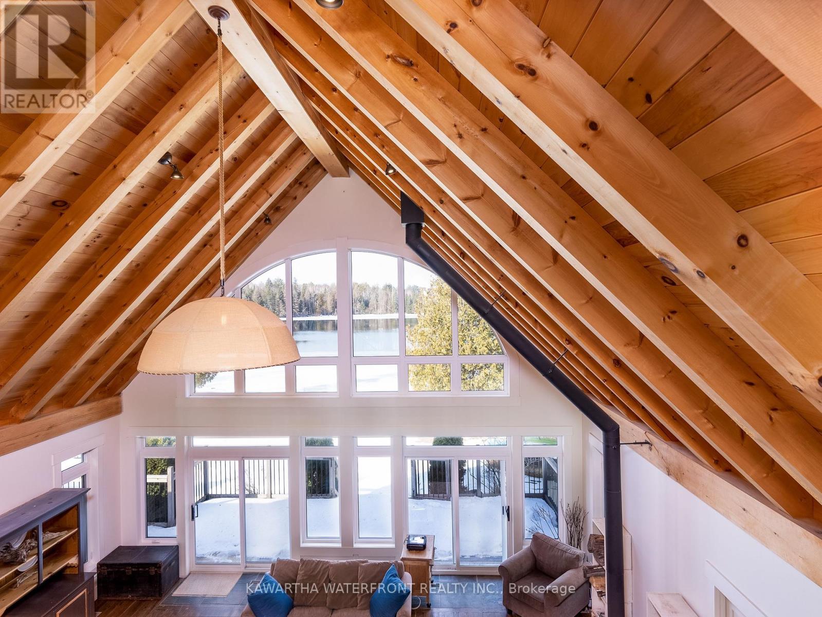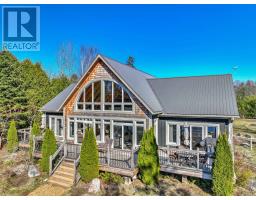 This is an exceptionally attractive newer-build (2012) Lakehouse on a wide section of the Gull River just before it enters Balsam Lake. Located on a street with many high-end properties, the sizeable 0.6 acre lot is level, with 138 ft of west-facing waterfront providing beautiful vistas of the undeveloped shore of Indian Point Provincial Park. Enter through the lovely porch and be delighted by the expansive windows and wood-beamed ceilings in the Great Room and Loft that provide abundant natural light and a wonderful sense of airiness. The kitchen is large and bright and overlooks the dining area with a walk-out to the deck. The spacious primary bedroom with a walk-out, two other bedrooms, 5 pc and 2 pc bathrooms and a laundry complete the main floor layout, while the large Loft area can be deployed for many uses. The exterior of the Lakehouse is a lovely combination of cedar shakes and board and batten, and the roof is low-maintenance metal. The wall-to-wall waterside deck and waterside firepit provides plenty of outdoor living area, and there is dog-friendly fencing along the waterside lot lines. The waterfront has both armour stone and a wade-in sandy beach. The crawl space is easily accessed through an interior hatch with stairs, and is deep, dry, and well insulated. There are two sheds and two docks, one of which has three SeaDoo ports. The property is an easy drive from the GTA and services in Coboconk are within a 5 minute drive. (id:61423)