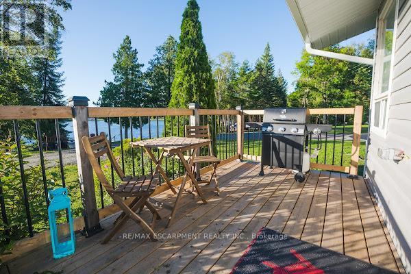 Rare Lakefront Offering Featuring Two Fully Renovated Detached Cottages on 1.5 Acres with 200 Ft of Waterfront. An exceptional opportunity for multi-generational living, a private family retreat, or investment income. This versatile property includes two separate cottages, each with direct lake access and shared private dock. Cottage One offers a beautifully updated 2-bedroom, 1-bathroom layout with a bright living area and picturesque lake views, ideal for year-round living or weekend escapes. Cottage Two features 3 bedrooms and 1 bathroom, a spacious living area, full kitchen, and walkout to a private deck overlooking the water - perfect for entertaining or rental potential. Enjoy breathtaking westerly sunsets, swimming, boating, and fishing from your own shoreline. A hot tub is thoughtfully positioned between the cottages, creating a private space to relax and unwind while taking in lake views. For added reliability, the property is equipped with two backup generators servicing both cottages. A unique chance to own a multi-dwelling waterfront property offering privacy, recreation, and strong income potential in a true cottage country setting. (id:61423)