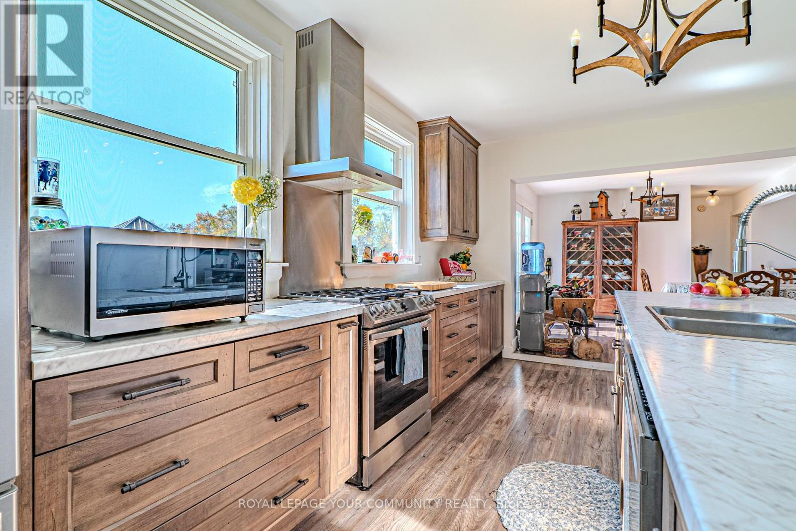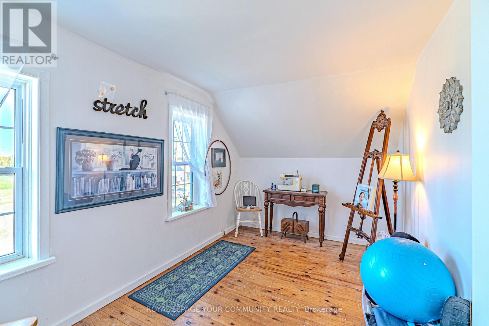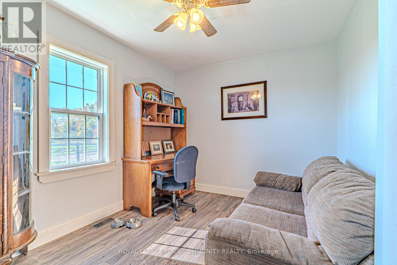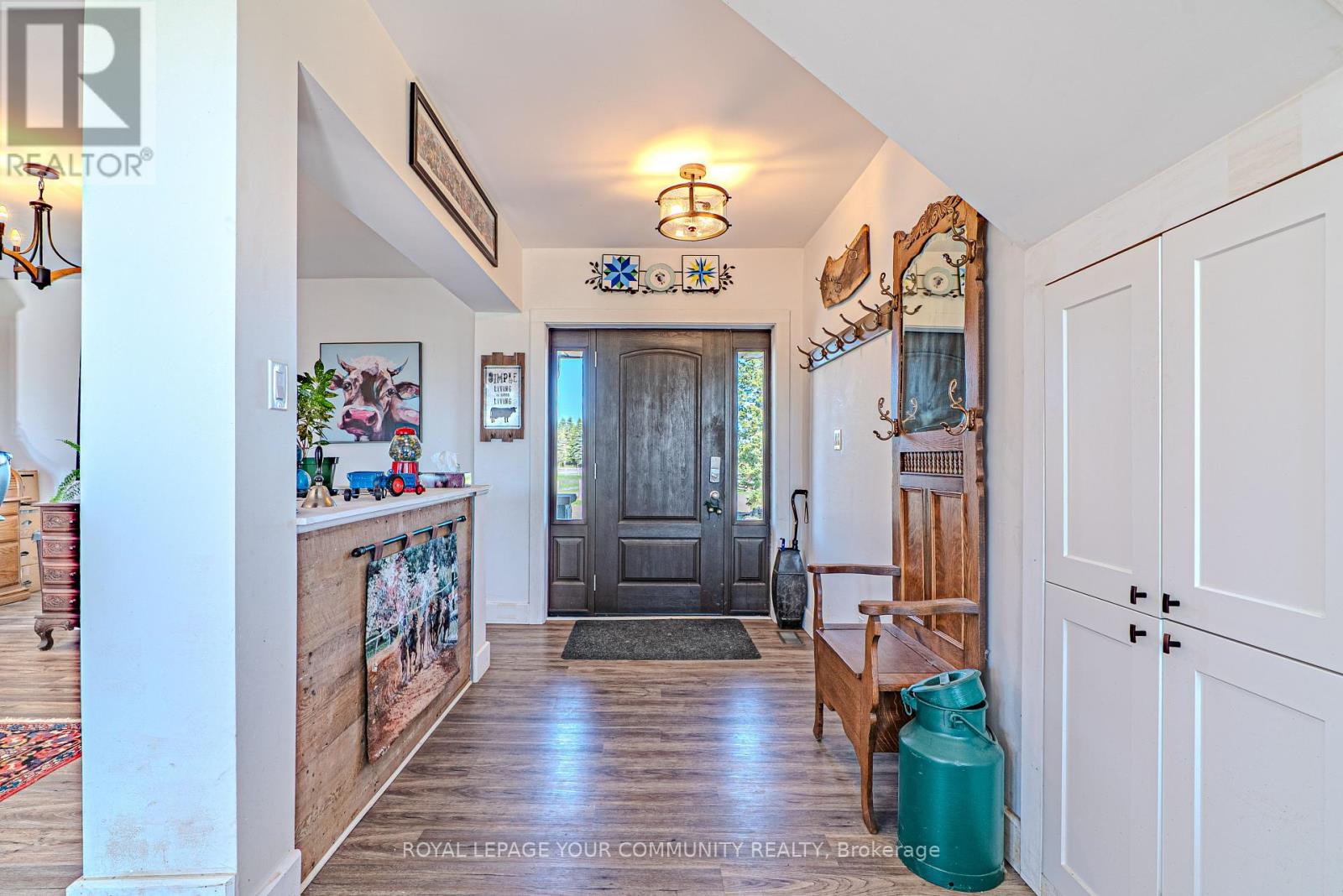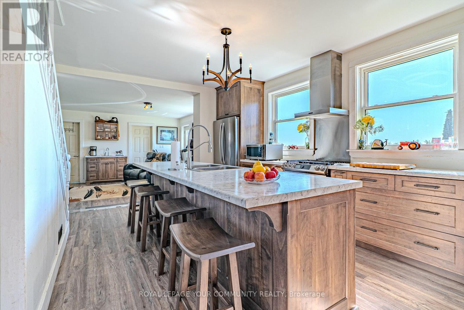 Welcome to this beautifully updated century home nestled on just over 7 picturesque acres, offering the perfect blend of rustic charm and modern convenience. From the moment you arrive, the stone pillars and gated entrance set the tone for this unique country property. Equestrian enthusiasts and hobby farmers will appreciate the impressive facilities, including a 30' x 100' cover-all style building complete with a heated tack room with hot water, ideal for additional workspace, storage, loose housing, or easily convertible into more stalls. The property also features a garage/workshop with hydro, updated electrical, two large box stalls (with direct access to a paddock), run-in shelter, three spacious paddocks with heated waterers, and a sand riding ring.The century home has been thoughtfully updated since 2019, showcasing both character and comfort. Notable updates include: fencing & gates, kitchen, main floor flooring and most drywall, ensuite bathroom, exterior siding with stone and Silverboard insulation, steel roof on both house and gazebo, eavestroughs, furnace and ductwork, central air unit, concrete patio/entrance and stone-pillared driveway entry (with power in place for future electric gates). Inside, you'll find rustic details such as reclaimed original wood in the foyer, and along the staircase wall, a lit, in-floor shadow box displaying an original floor beam, and the preserved second-floor original flooring complemented by a cozy living room featuring a coffee station/wet bar, perfect for relaxing or entertaining.This is a rare opportunity to own a property that combines modern upgrades with timeless character, offering endless potential for country living, equestrian pursuits, or simply enjoying the serene landscape. Fantastic location for commuters - just minutes outside of the town of Lindsay, and less than 1 hour to the GTA! (id:61423)
