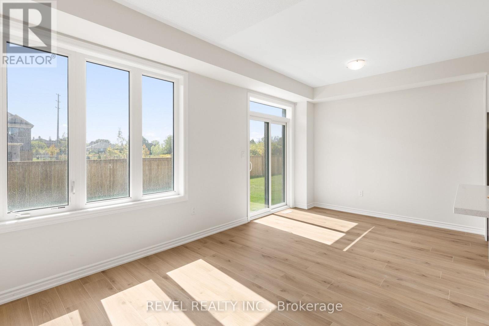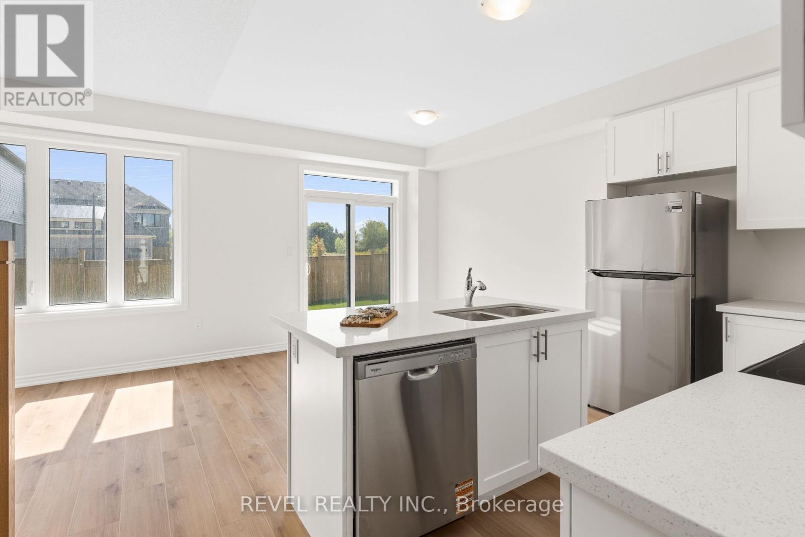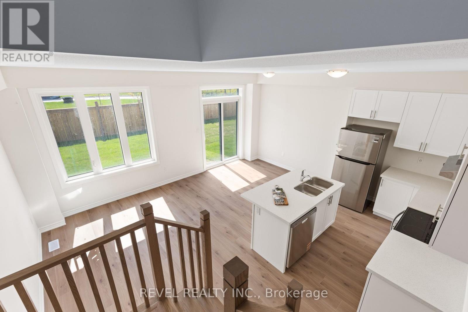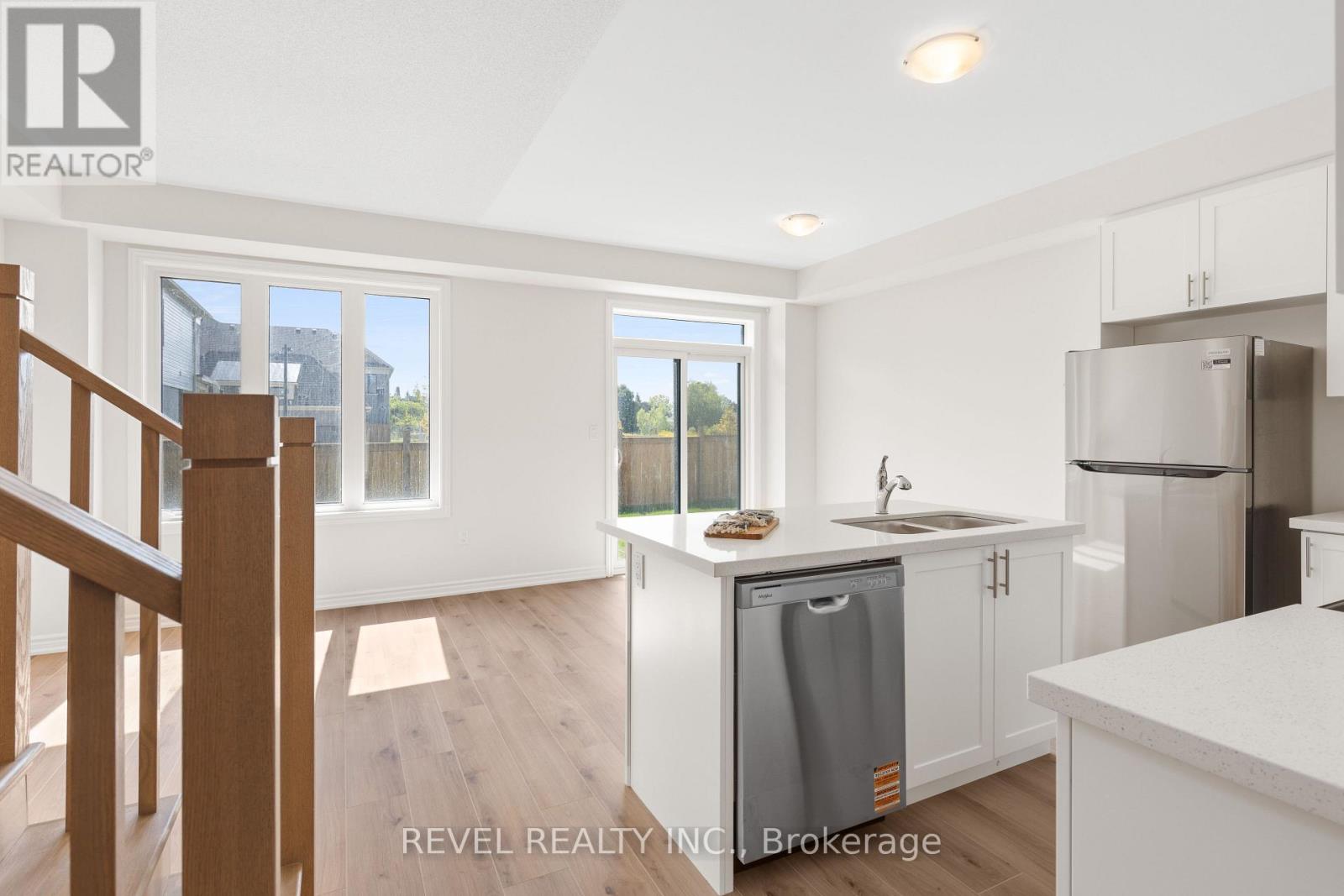 Welcome To 38 Hickey Lane, Lindsay. Make this brand-new executive-style townhouse community your home in Lindsays desirable North Ward! Built in 2025 Hygge development, this stylish end-unit offers both modern convenience and timeless curb appeal. Bright, open-concept main floor features a white kitchen, dining area, and spacious living room with powder room. Step through the walkout to enjoy your private backyard perfect for relaxing evenings or playful days. Upper level features a primary suite with its own ensuite bath, while two additional bedrooms share a full guest bathroom. Lower level is unspoiled for plenty of storage, laundry & utility. One car attached garage, paved driveway & the bonus of grass already provided. Close distance to Hospitals, shopping, schools, parks & Lindsay river. A+ Credit Score, References, Employment Letter To Be Provided For All Showings & Applications. (id:61423)