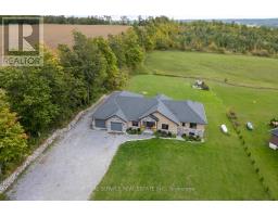 Set on just over two acres in the scenic hills of Cavan, 381 Sharpe Line is a custom-built, multi-generational home offering both privacy and functionality. This spacious residence features a total of six bedrooms, five bathrooms and two full kitchens thoughtfully designed to accommodate extended family living with a separate in-law suite with private entrance and separate deck. The main floor showcases a large, custom-designed kitchen with stainless steel appliances, granite countertops, and an oversized island that overlooks a bright living room with a floor-to-ceiling propane fireplace. Expansive windows invite natural light and reveal breathtaking views, with walkouts to a private deck. A separate dining room overlooks the front yard, while three bedrooms and three bathrooms provide ample space, including a convenient laundry area with garage access and a pass-through to the in-law suite.The lower level offers a versatile layout with two additional bedrooms, a three-piece bathroom, and an expansive family room complete with a bar area. Additional highlights include a custom wine cellar, exercise room, office or den, generous storage, and both front and back staircases. The in-law suite is fully self-contained and includes a custom kitchen, dining area, comfortable living room with deck access, large bedroom with double closets, and a four-piece bathroom with laundry. A two-car garage provides direct access to the home and features a separate man door. The large lot offers potential for a workshop at the rear. Located just 10 minutes from Peterborough, 5 minutes to Highway 115 and 20 minutes to Highway 407, this home also enjoys nearby access to Cavan Creek Park & Trails and local conveniences. This beautiful custom home is well-positioned for convenience while offering privacy and exceptional outdoor space. (id:61423)