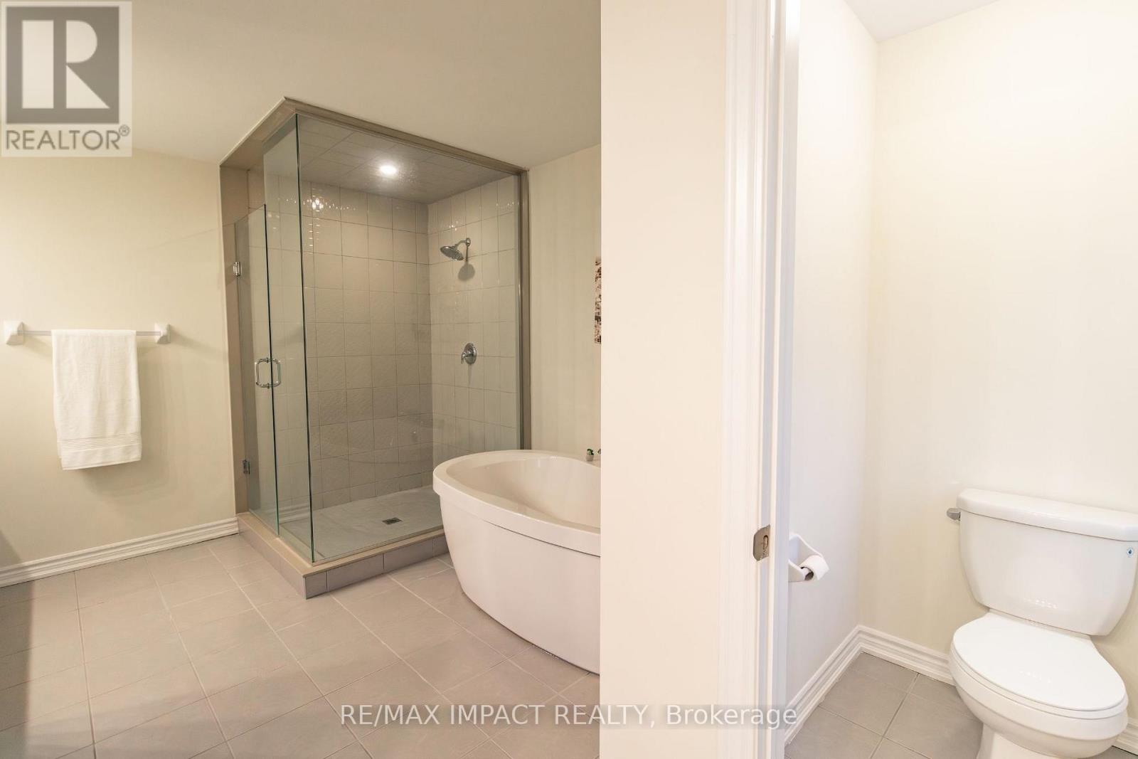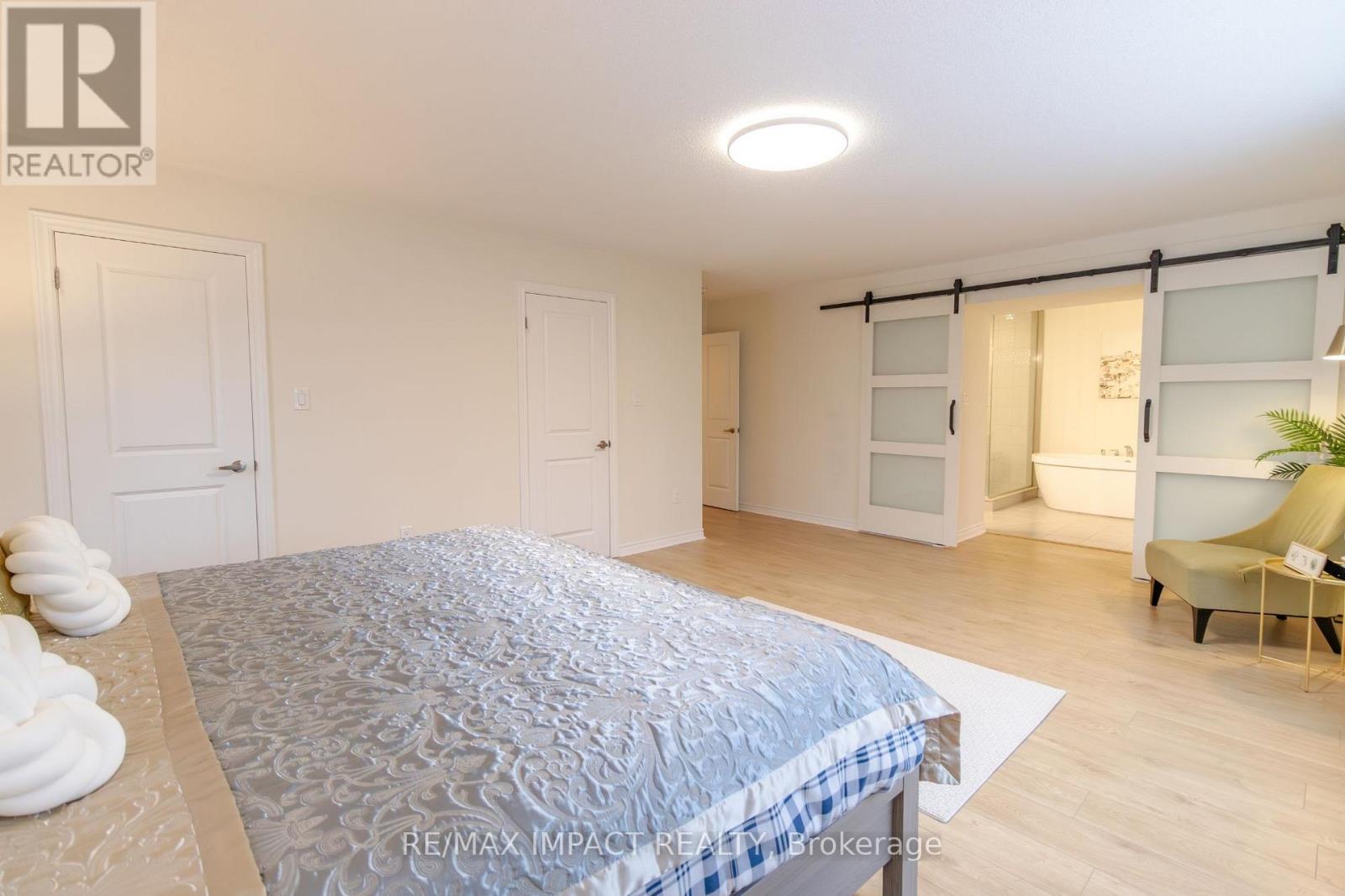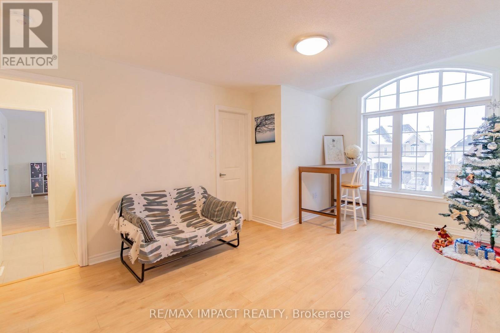 Welcome to this stunning detached two-storey all-brick home, a rare gem located in the desirable northwest end of Lindsay. This beautiful property, built less than 4 years ago, boasts an attached 3-car garage, an exceptional feature in this sought-after area just north of the hospital. Spanning 3847 sf on a generous lot of 59.06' x 131.23' with southern exposure, this home offers large spaces for family living. The seller purchased directly from the builder, meaning there is still about 7 years of carry-on warranty remaining on the exterior of the dwelling. As you enter, you're greeted by a spacious front foyer adorned with a lovely leaded glass insert and side lite. Adjacent to the foyer, you'll find a den perfect for an office, along with a convenient 2-piece powder room and a large double closet. The main level features 9 ft ceilings, hardwood flooring throughout the main level, and engineered hardwood on the upper level. The open-concept living and dining area is bathed in natural light, thanks to 4 tall windows and stylish coffered ceilings. There's lots of gray kitchen cabinets, ceramic floors, pantry cupboards, marble backsplash and sleek stainless steel appliances. The over-sized island includes a double sink and breakfast bar, while the eating area boasts a windowed eating area and walkout to a deck overlooking the expansive rear yard. With a total of 4 generously-sized bedrooms and 4 washrooms, this home is designed for comfort and convenience. Notably, the upper-level laundry room features white front-load washer and dryer, making chores a breeze. The primary suite is a luxurious retreat with double entry doors, 5-piece ensuite that includes two vanities, a large walk-in glass shower, and a soaker tub, all separated by elegant sliding doors. Two of the secondary bedrooms share a 'Jack and Jill' washroom, adding functionality for families. (id:61423)