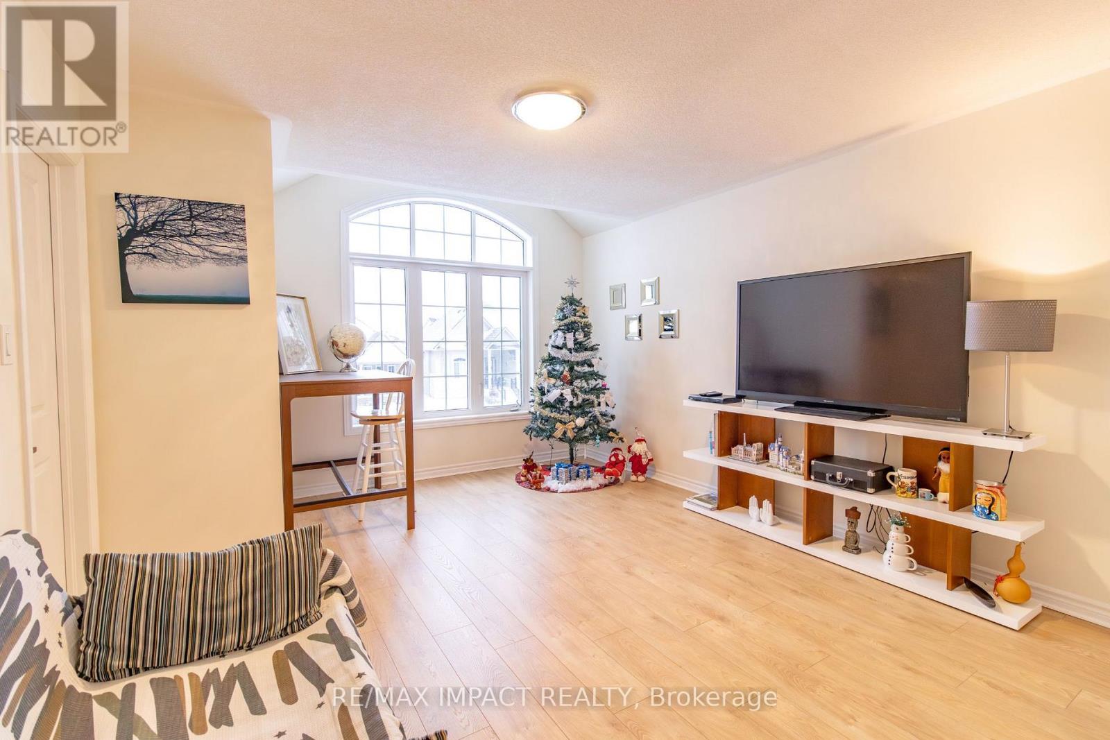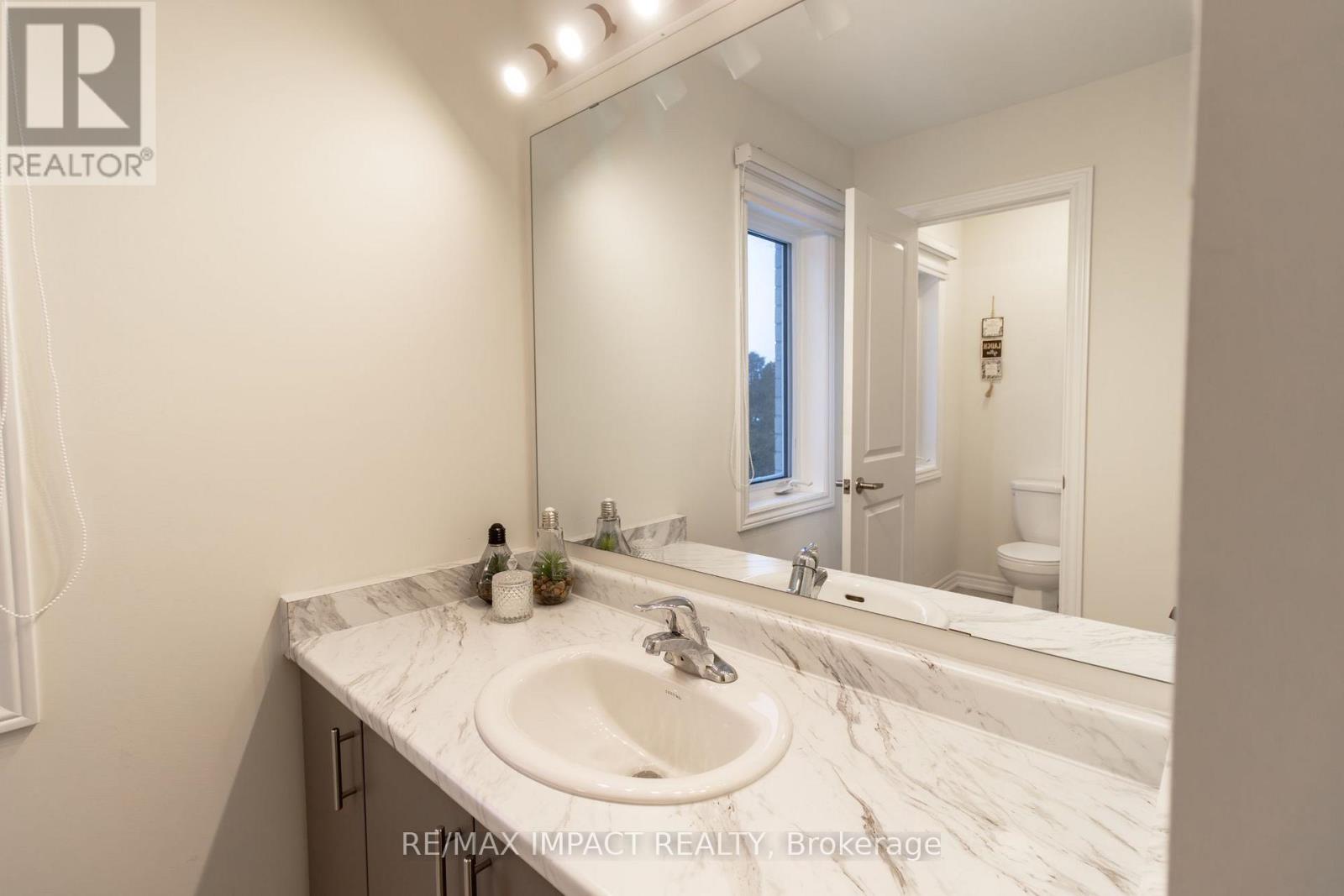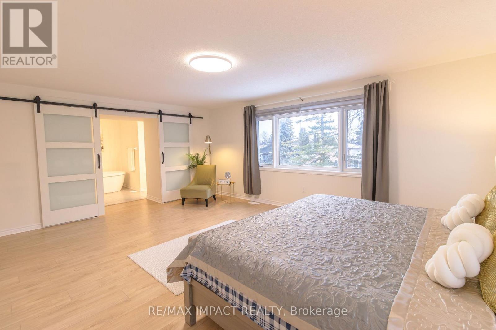 Welcome to this stunning detached two-storey all-brick home, a rare gem located in the desirable northwest end of Lindsay. This beautiful property, built less than 4 years ago, boasts an attached 3-car garage, an exceptional feature in this sought-after area just north of the hospital. Spanning 3847 sf on a generous lot of 59.06' x 131.23' with southern exposure, this home offers large spaces for family living. The seller purchased directly from the builder, meaning there is still about 7 years of carry-on warranty remaining on the exterior of the dwelling. As you enter, you're greeted by a spacious front foyer adorned with a lovely leaded glass insert and side lite. Adjacent to the foyer, you'll find a den perfect for an office, along with a convenient 2-piece powder room and a large double closet. The main level features 9 ft ceilings, hardwood flooring throughout the main level, and engineered hardwood on the upper level. The open-concept living and dining area is bathed in natural light, thanks to 4 tall windows and stylish coffered ceilings. There's lots of gray kitchen cabinets, ceramic floors, pantry cupboards, marble backsplash and sleek stainless steel appliances. The over-sized island includes a double sink and breakfast bar, while the eating area boasts a windowed eating area and walkout to a deck overlooking the expansive rear yard. With a total of 4 generously-sized bedrooms and 4 washrooms, this home is designed for comfort and convenience. Notably, the upper-level laundry room features white front-load washer and dryer, making chores a breeze. The primary suite is a luxurious retreat with double entry doors, 5-piece ensuite that includes two vanities, a large walk-in glass shower, and a soaker tub, all separated by elegant sliding doors. Two of the secondary bedrooms share a 'Jack and Jill' washroom, adding functionality for families. (id:61423)
