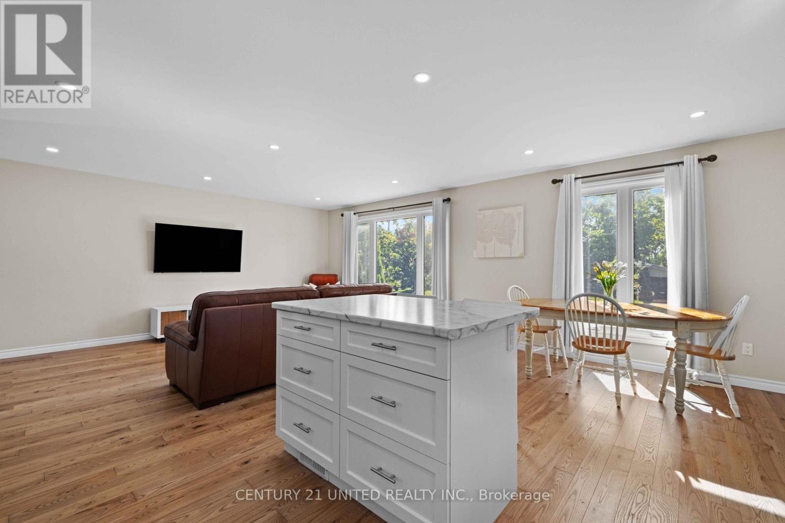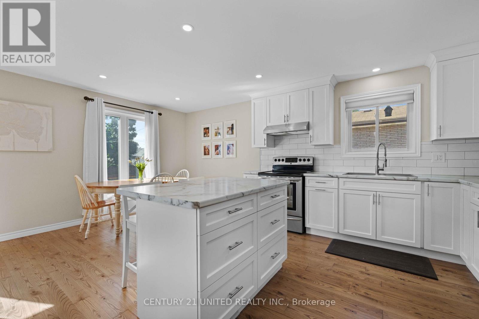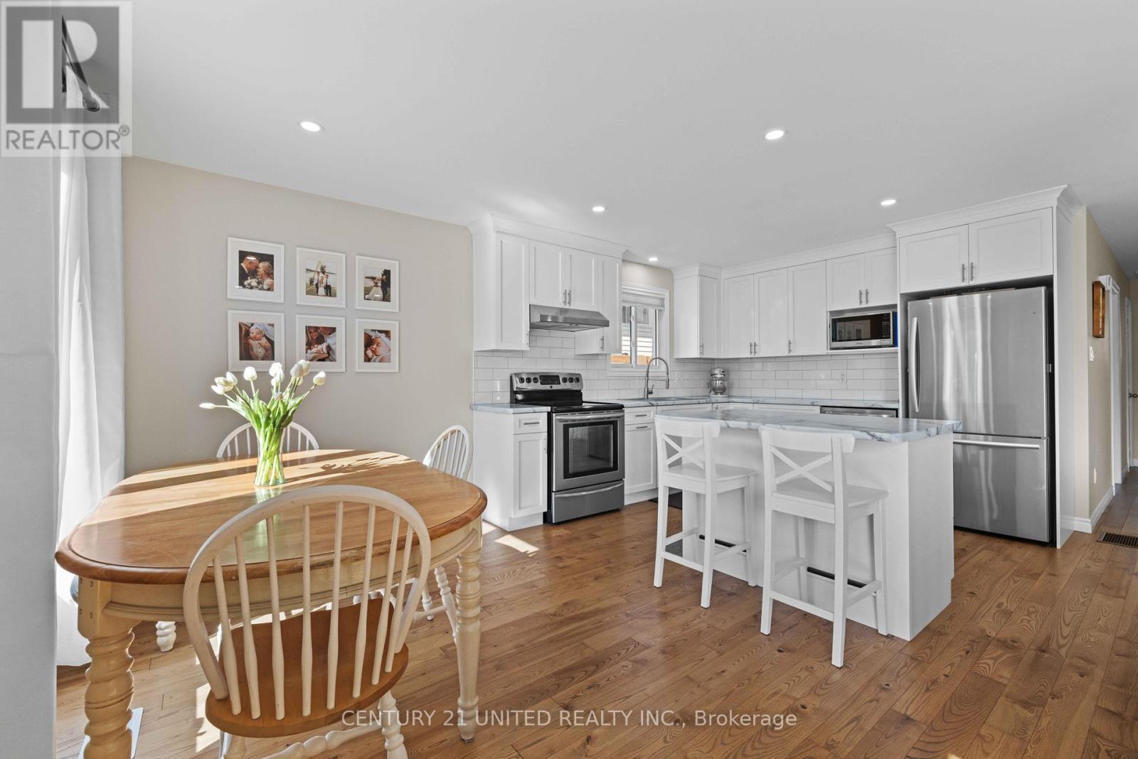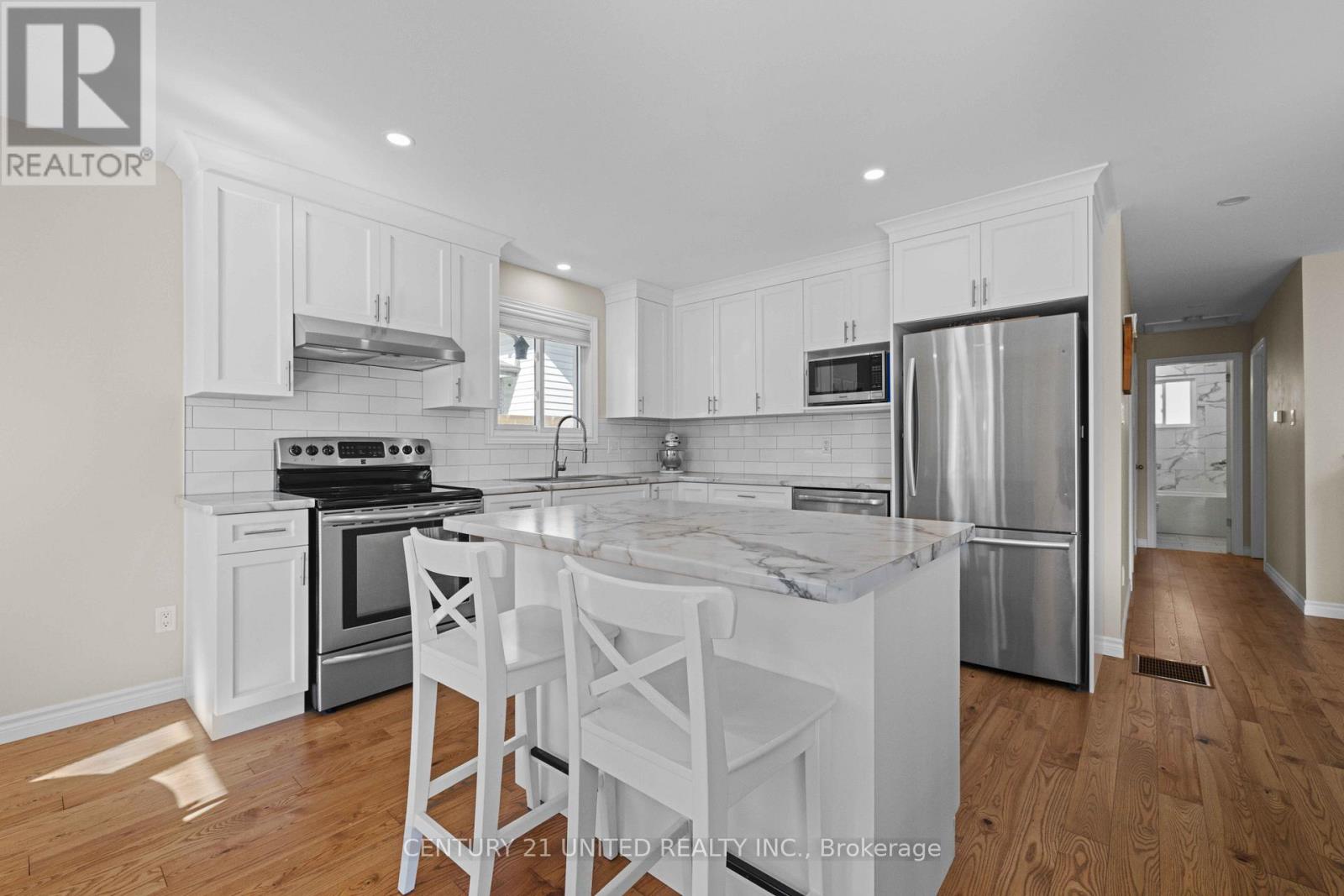 Welcome to 392 Wellington Street, a lovely raised bungalow in Peterborough's north end. This 3 bedroom, 2 bathroom is perfect for first time home buyers and families. The upper level highlights a spacious open concept kitchen with stainless steel appliances and a breakfast bar island that separates the kitchen from the dining area. At the end of the hallway you will find the large primary bedroom with his & hers closets, a 4 piece bathroom, and another bedroom. The finished lower level features a third bedroom, an office, a cozy family/seating room, and a second 3 piece bathroom. The large unfinished utility space houses a built-in workbench/shelving and a spacious laundry room. The generously sized fully fenced in backyard is perfect for kids and pets. Pre-Sale home inspection available upon request. (id:61423)