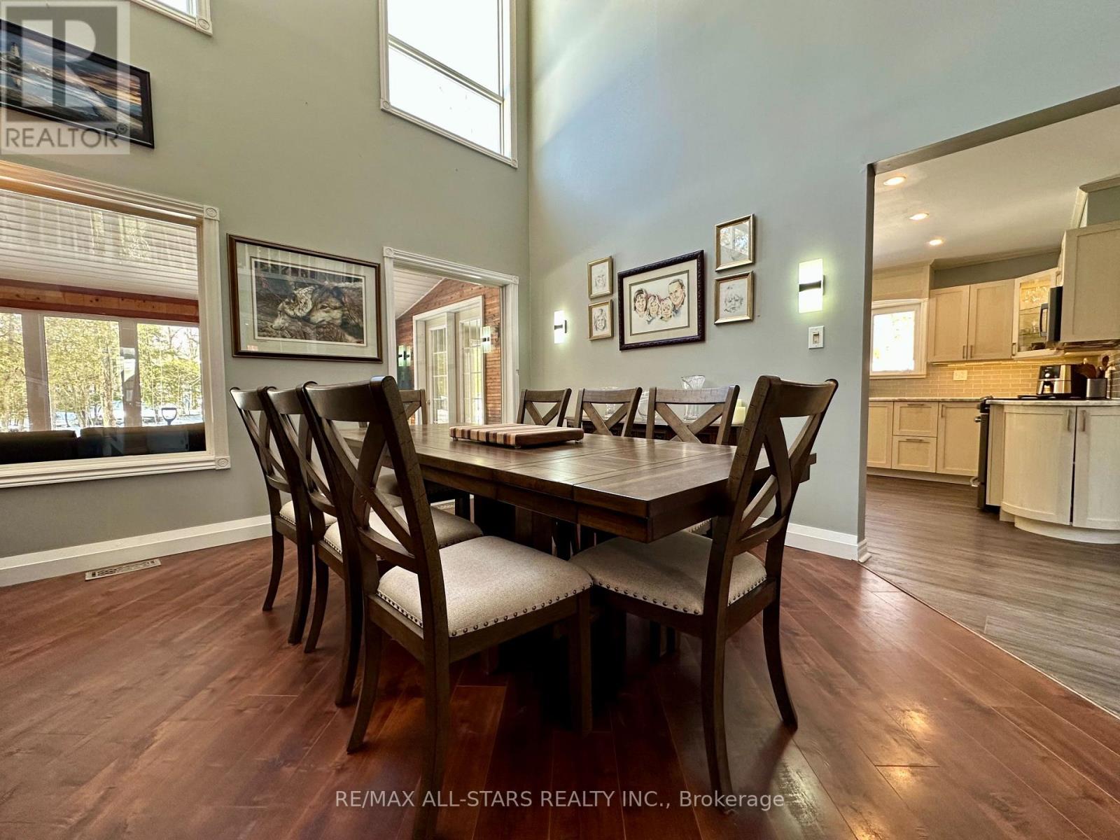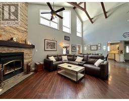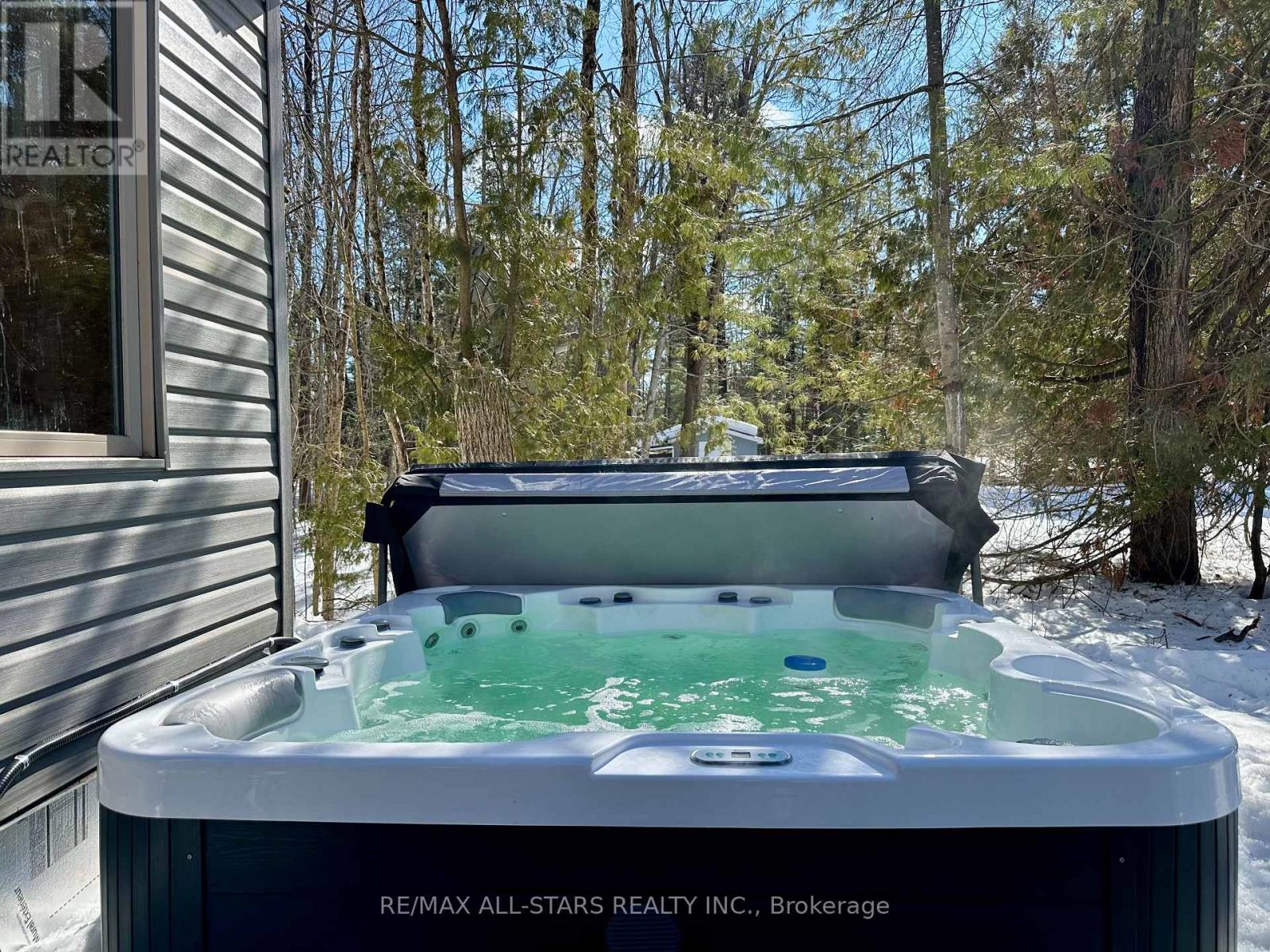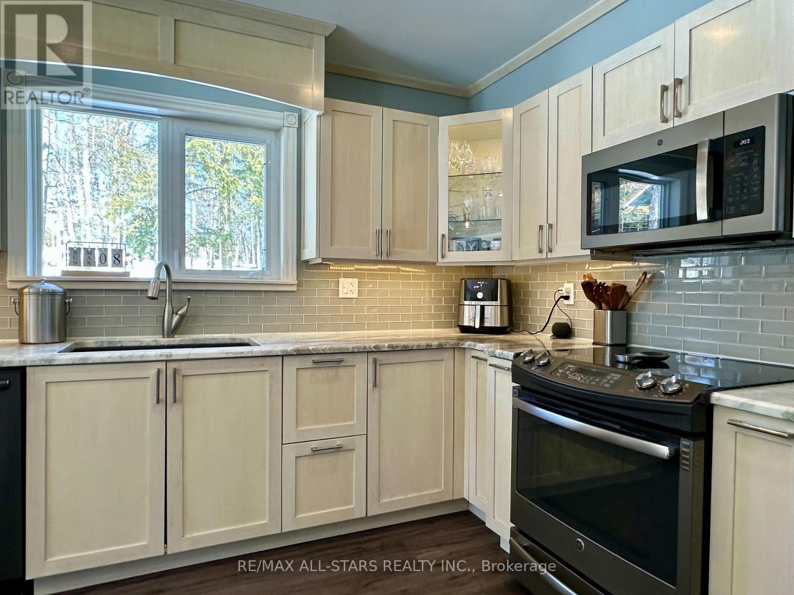 Welcome to this charming riverfront home or cottage offering 3 bedrooms and 3 bathrooms on a private riverside lot perfectly located on a year-round paved road between Bobcaygeon and Buckhorn. The home features vaulted ceilings, exposed beams, and a stunning stone wood-burning fireplace, creating a warm and inviting living space. The modern kitchen is designed for entertaining with granite countertops, stainless steel appliances, a large island with seating for four, and ample storage. A sunroom overlooking the river provides beautiful views, an infrared sauna (2025) and walkout access to the deck & newly installed hot tub (October 2025). The property includes a detached garage, metal carport and a heated bunkie behind the garage. Multiple storage options include a large shed with hydro beside the garage and another powered shed at the river's edge. Additional highlights include a steel roof, large mudroom entry, and a standing-height crawl space with stair access from the laundry room for convenient storage. Enjoy peace of mind with a 24 kW Generac generator installed January 2026. The large, flat lot offers plenty of space to enjoy waterfront living, and Oakshores Marina is just steps away with a private boat launch providing access to the Trent-Severn Waterway-making this an ideal full-time home or four-season cottage getaway. (id:61423)