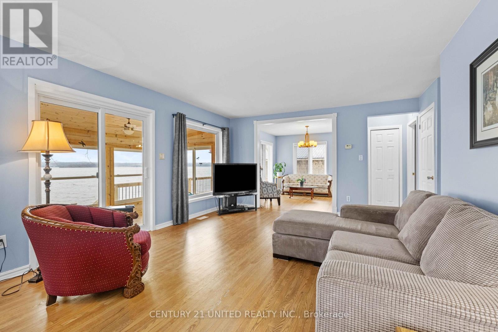 Rice Lake Waterfront Retreat - The Ideal Family Compound! Welcome to this meticulously maintained 3+1 bedroom, 2+1 bathroom home set along the shores of Rice Lake. An incredible destination known for its boating, fishing, and year-round enjoyment.The main floor offers a bright, open-concept living and dining area with beautiful hardwood floors, a functional kitchen, a cozy sitting room (easily converted back into a fifth bedroom), and a convenient main-floor bedroom. Upstairs provides a quiet retreat with two additional bedrooms and a 2-piece bath. The fully finished walkout lower level extends the living space with a cozy family room, fourth bedroom, 3-piece bath, laundry, and a spacious utility room. Complete with a separate entrance and screened room, ideal for in-law or multi-generational living.Enjoy coveted southeast exposure with breathtaking sunrise, sunset, and wildlife views. The impressive 22-foot sunroom showcases lovely views over Rice Lake, while newer front and back decks (less than 5 years old) offer great outdoor living space. Additional highlights include a durable steel roof (8 years old), a high-quality drinkable water system with excellent pressure, three functional outbuildings, and a fenced area for pets or hobbies. Conveniently located close to amenities and emergency services. Experience peaceful waterfront living on Rice Lake! (id:61423)