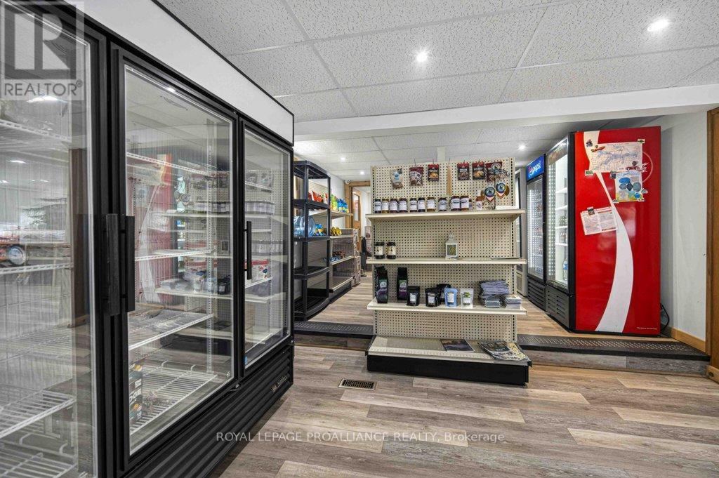 Prime Commercial & Owner-Opportunity in North Kawartha. Perfectly situated between Stoney and Kasshabog Lake, this unique property at 4007County Rd 6 blends rustic charm with modern convenience. Located right on the major throughway for cottage country, this 1.23 acre lot is the absolute best spot to launch your business venture. Endless Commercial Potential Benefiting from highly flexible commercial zoning, the possibilities here are limitless. The commercial side currently includes a gas bar and inviting space currently set up as a sandwich shop. As the only gas station within a large radius, and with a successful lunch crowd driven by local tradespeople and new builds, the location naturally promises a steady stream of customer year-round. This versatile space is a true blank canvas-ideal for a yoga studio, an artist's gallery, boutique retail or even commercial lot. Turnkey Owner-Operator Living Life exactly where you work! The property features a separate, beautifully renovated1-beroom, 1-bathroom cottage. With its warm log cabin aesthetic and brand-new renovations for an easy living and working lifestyle, it is the perfect owner-operator retreat. Property Highlights: Generous Space: 1.23 acres of level, wooded land, peacefully backing onto hundreds of acres of serene forest. Ample Parking & Storage: Includes a separate detached 2 car garage and plenty of front yard parking for clients and customers. Strategic Location: High-visibility spot capturing summer cottagers, local contractors and winter snowmobilers. Don't miss this chance to bring your entrepreneurial vision to life in a highly trafficked, picturesque setting! (id:61423)