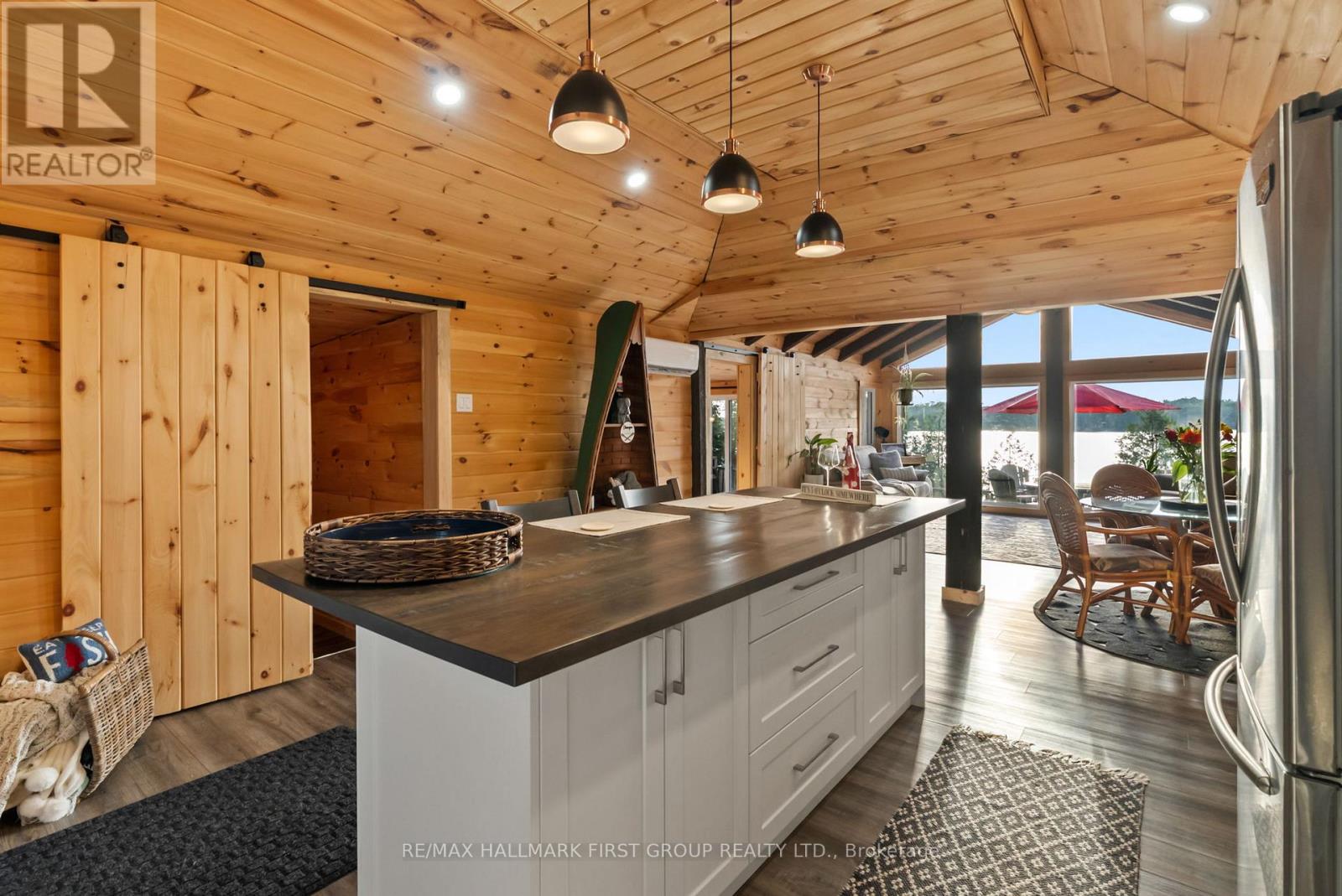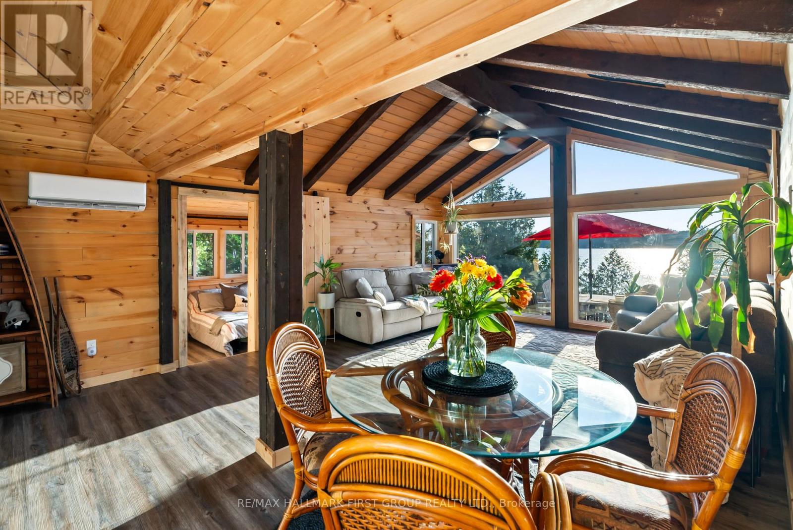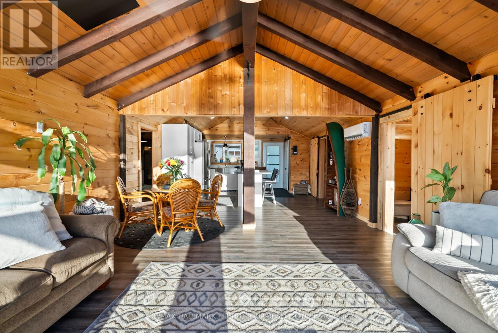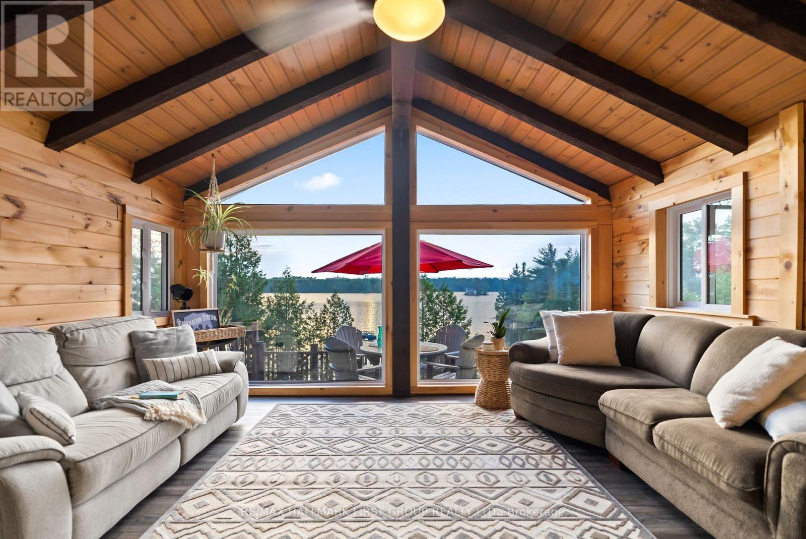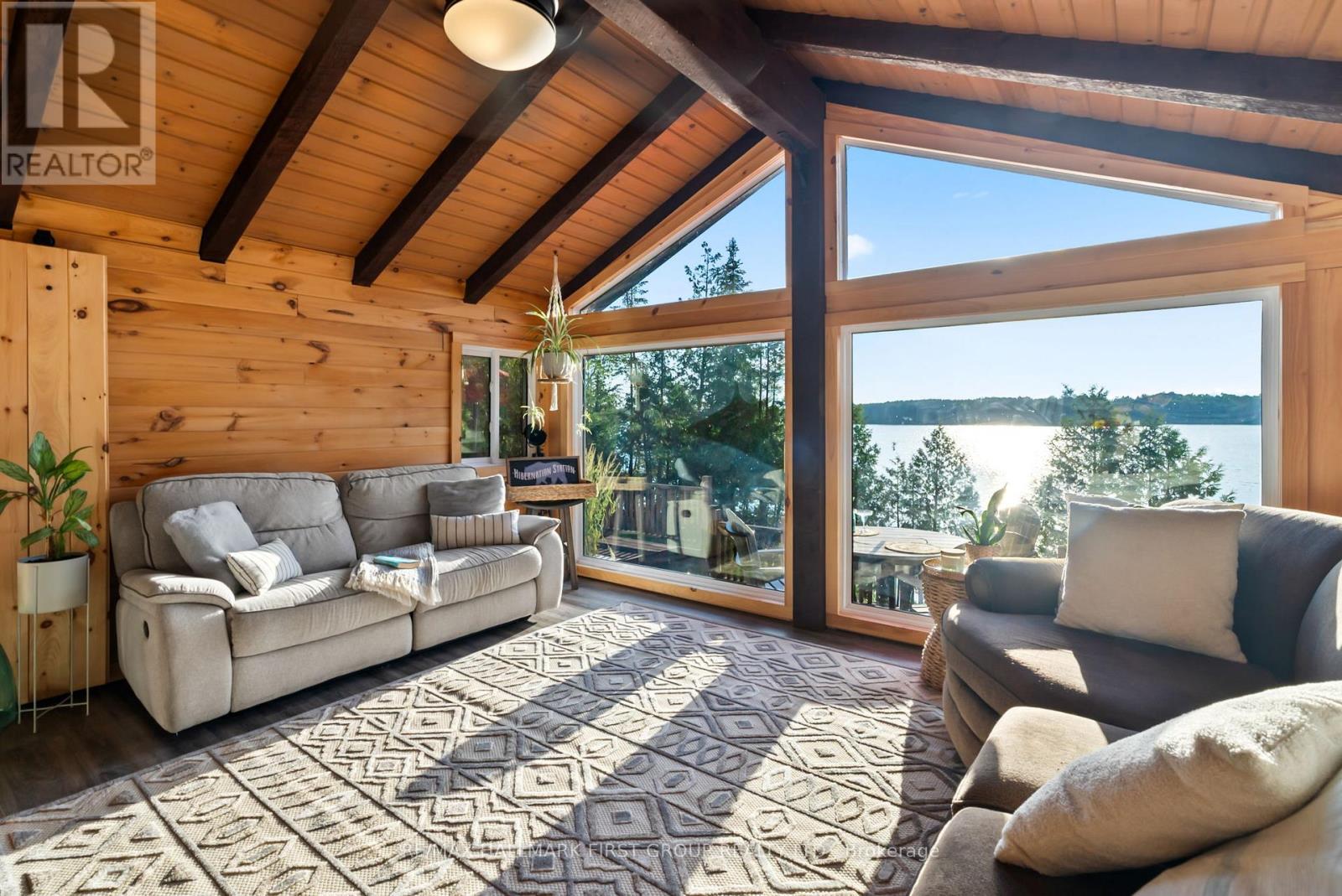 Welcome to this turn-key, four-season waterfront cottage on sought-after Steenburg Lake, offering stunning western exposure, a sandy beach, and your own private boat launch. This beautifully maintained 3-bedroom, 1-bathroom property is fully winterized, with a heat pump, and A/C, making it ideal for year-round use. Inside, youll find soaring vaulted ceilings, an open-concept layout, and incredible lake views from the main living space. A detached bunkie provides extra space for guests, while thoughtfully crafted stone steps lead to a shallow, swim-friendly shoreline and spacious dockperfect for relaxing and enjoying breathtaking sunsets. Located on a municipally maintained road with direct access to ATV and snowmobile trails, and ample parking for vehicles and trailers, this property checks all the boxes for the ultimate lakefront getaway. Ductless Heat Pumps 2024, Roof 2017, Tankless Hot Water Tank 2022. (id:61423)