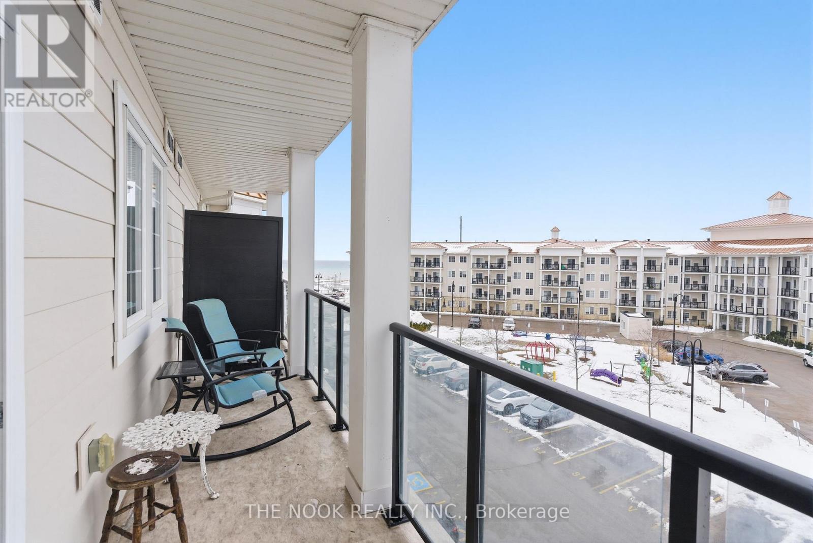 $482.33 MonthlySet In One Of The Most Sought After Buildings In The Port Of Newcastle, This Top Floor Fourth Level Condo Offers An Exceptional Layout And A Truly Elevated Lifestyle. The Spacious Open Concept Living, Dining And Kitchen Area Is Bright & Airy. The Kitchen Features Granite Countertops, A Breakfast Bar And Generous Cabinetry, All Overlooking The Main Living Space. Step Out To A Large Private Balcony That Extends Your Living Area Outdoors, Perfect For Relaxing Or Hosting. The Primary Bedroom Features A Walk In Closet And A Full Ensuite Bath Complete With A Walk In Glass Shower. A Unique Highlight Of This Floor Plan Is The Oversized Den. With Pocket Doors For Complete Privacy, It Functions Beautifully As A True Second Bedroom If Needed. Currently Styled As A Home Office, This Versatile Space Adapts Easily To Guests Or Family. A Second Full Four Piece Bathroom With Tub Adds Convenience, Along With The Bonus Of In-Suite Laundry, Underground Parking And An Owned Locker! Finished In Modern Neutral Tones And Impeccably Maintained, This Unit Shows Beautifully And Is Move In Ready. Ownership Includes Exclusive Membership To The Admirals Walk Clubhouse Featuring A Newly Updated Gym, Indoor Pool, Fitness Classes, Library, Billiards Room, Movie Theatre, Event Space And On Site Restaurant. Residents Also Enjoy Exclusive Marina Access With Optional Dock Rentals And A Waterfront Patio Restaurant, Delivering An Unmatched Waterfront Lifestyle In One Of Newcastle's Most Desirable Communities. (id:61423)