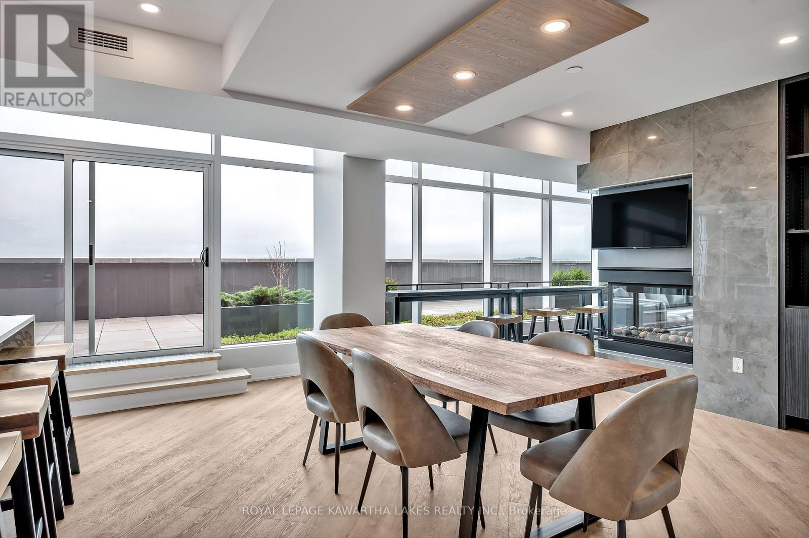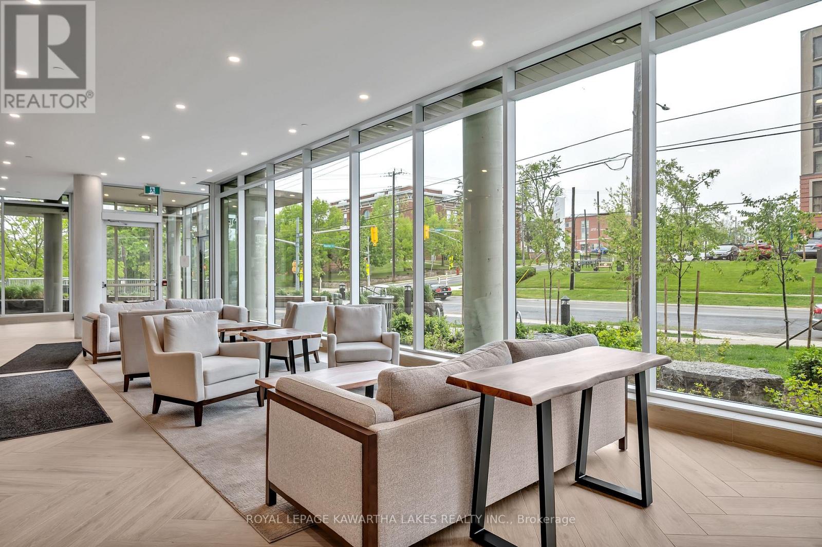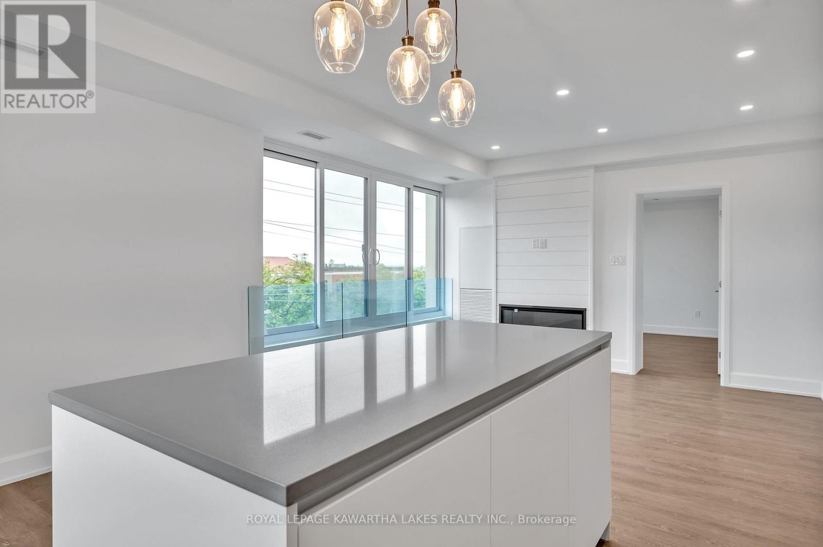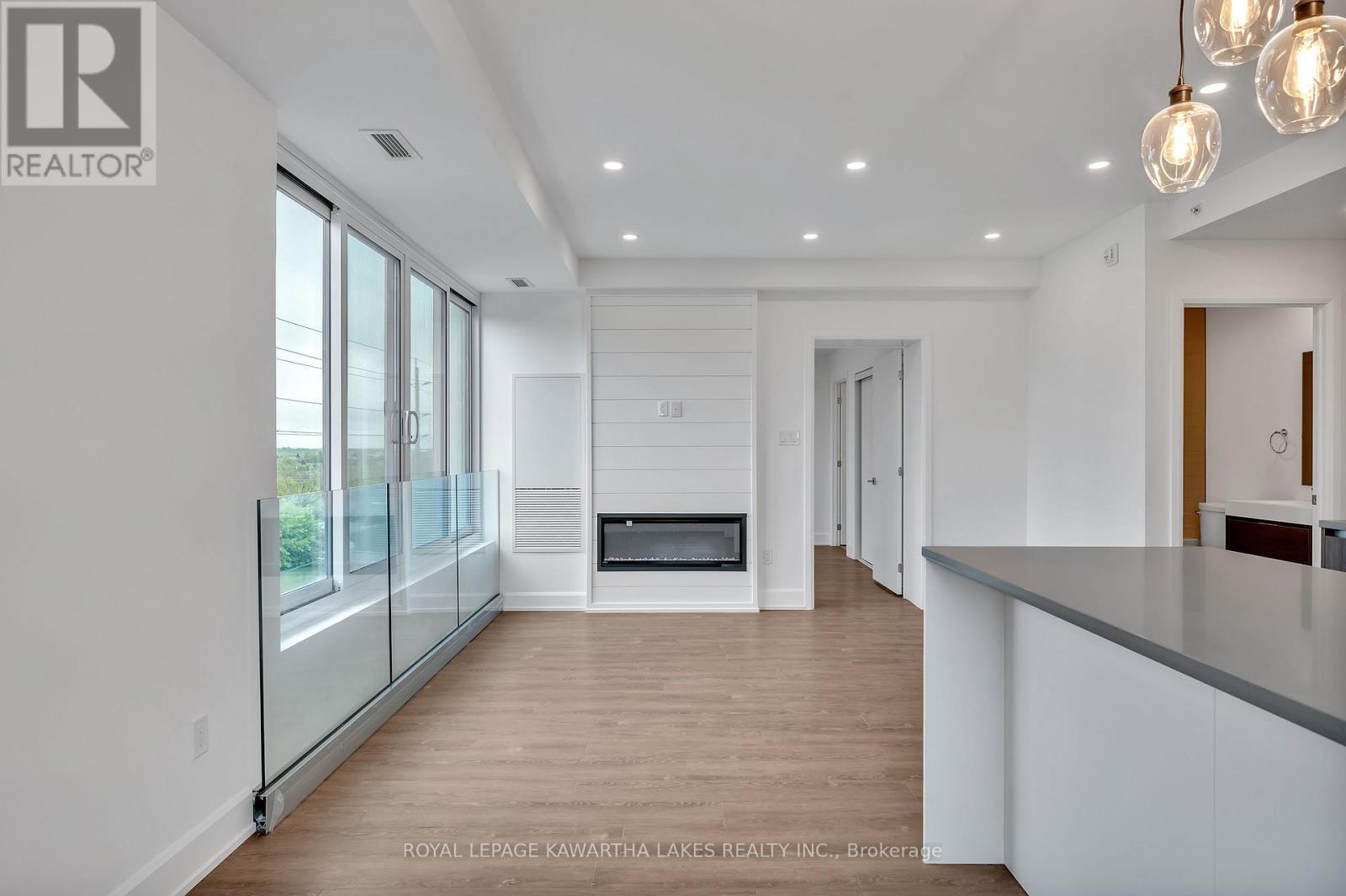 $400 MonthlyLuxury Living in the Heart of Peterborough. Discover elevated condo living in this brand-new, stylish residence offering an open-concept layout with 9-foot ceilings and Gas Fireplace. The chef-inspired kitchen features an oversized island, quartz countertops, built-in stainless steel appliances, and custom cabinetry, perfect for cooking and entertaining. This modern condo includes 2 spacious bedrooms and 2 sleek bathrooms, designed for comfort and style. Designer upgrades are found throughout, creating a refined living experience. Enjoy top-tier amenities, including a contemporary lobby, 8th-floor lounge and party room with a two-sided fireplace, a private dining area that opens to a stunning rooftop terrace with panoramic views of the city. Stay active in the fully equipped fitness centre and take advantage of the on-site pet washing station. Ideally located in East City, you're steps from shops, cafes, bakeries, parks, and Rogers Cove Beach. Includes underground parking space P2-19 for added convenience. Move into Peterborough's most luxurious and vibrant condo community, where modern design meets unmatched lifestyle. Note - Heating costs are included in monthly condo fees. (id:61423)
