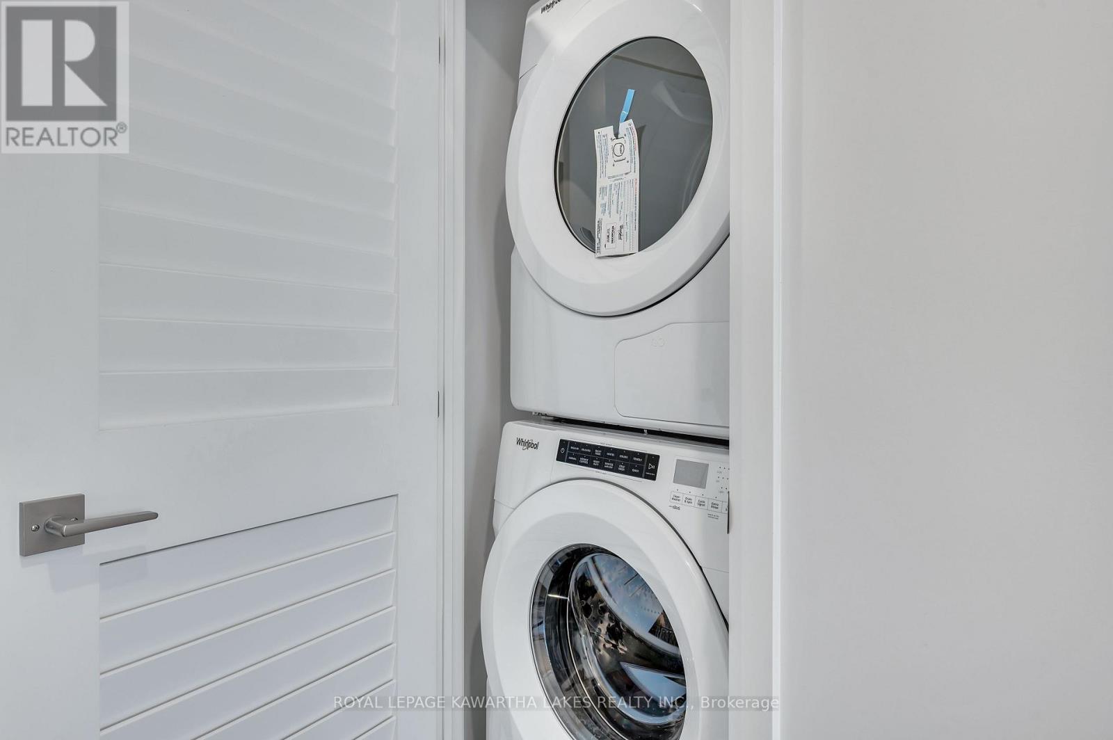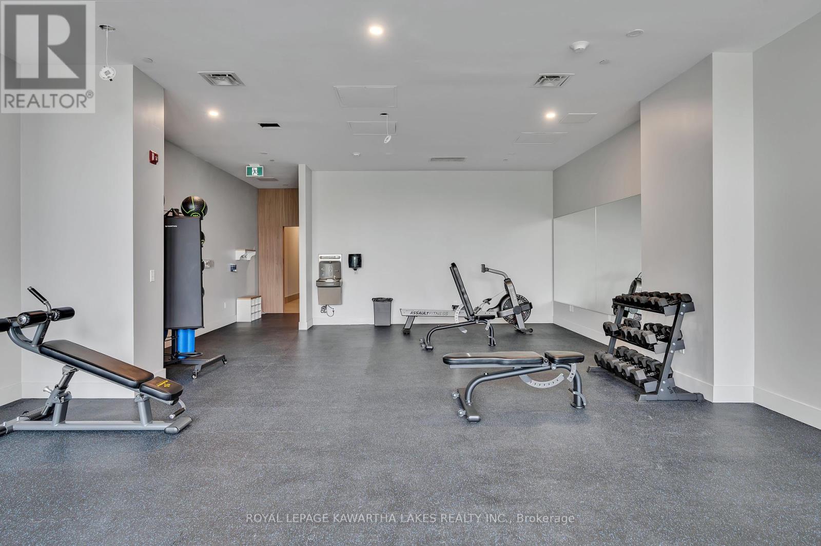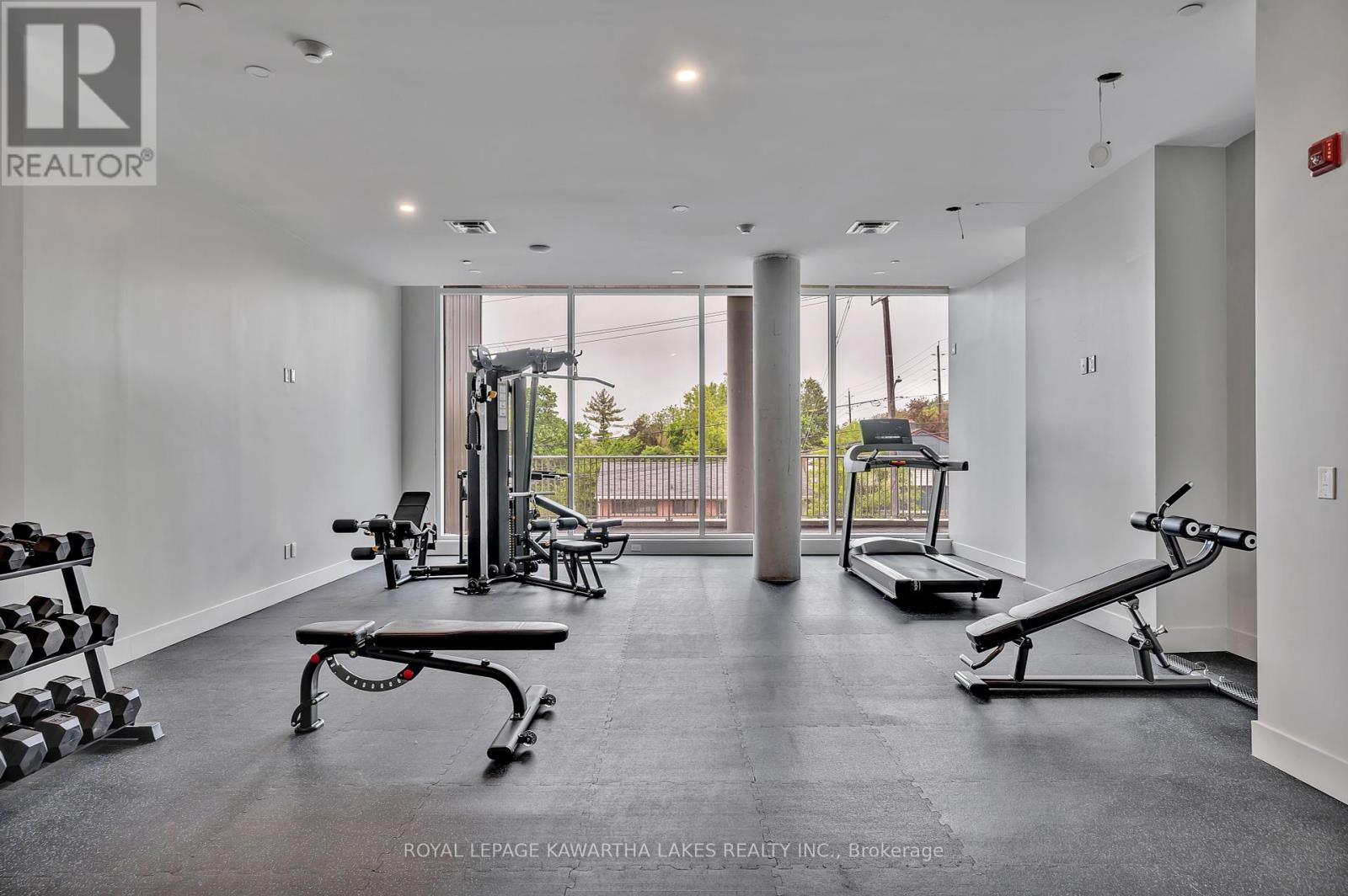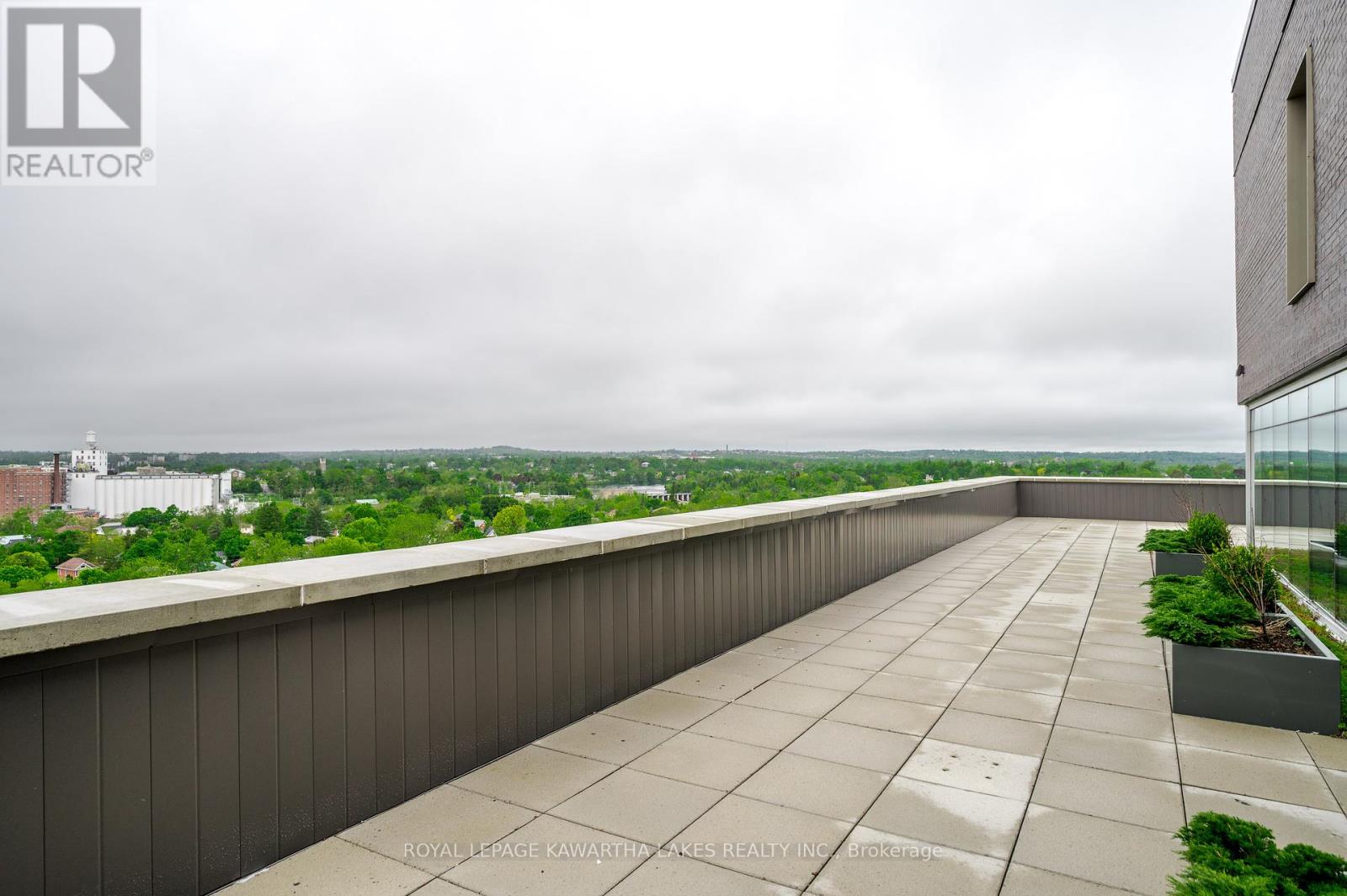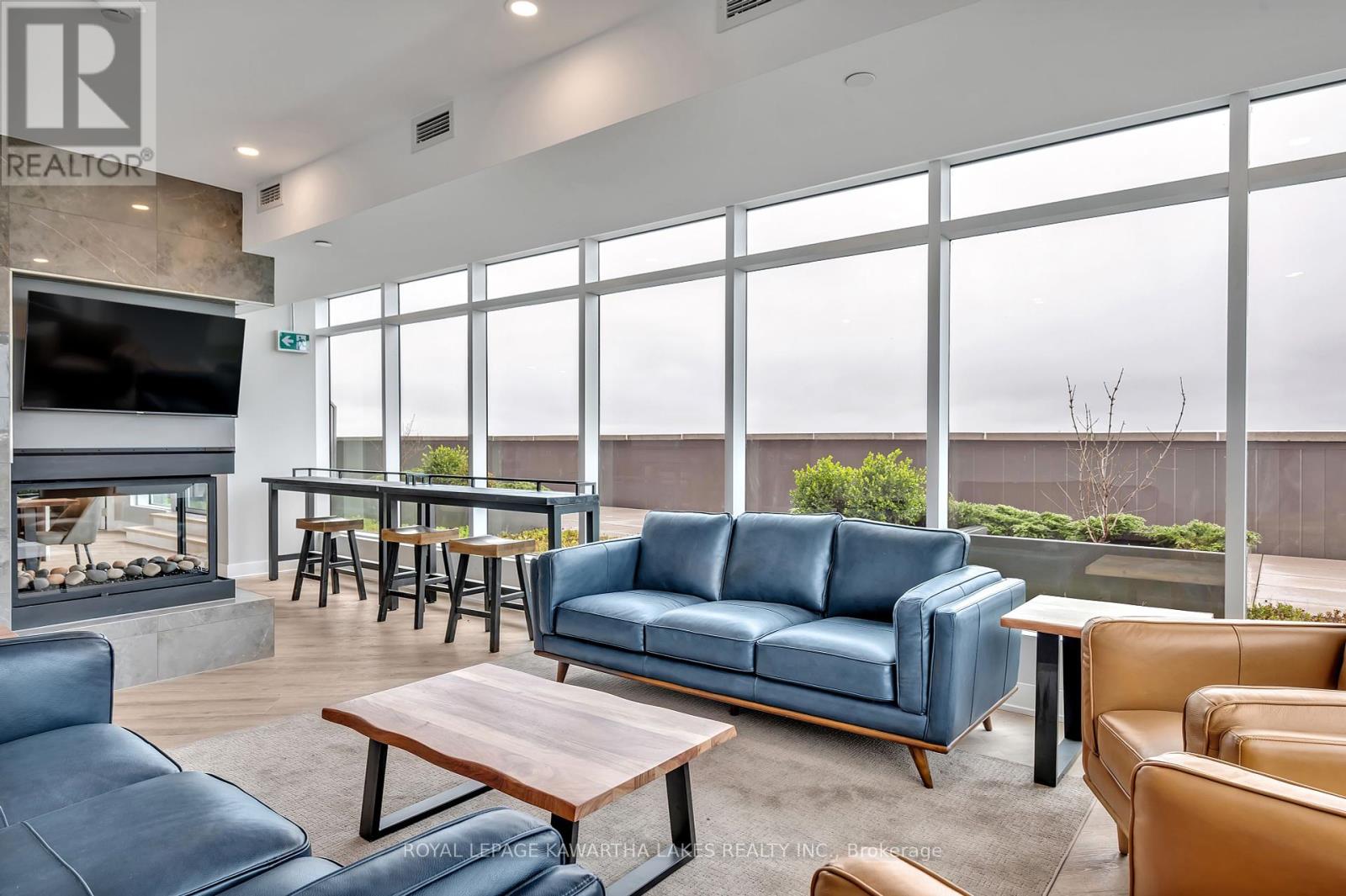 $400 MonthlyLuxury Living in the Heart of Peterborough. Discover elevated condo living in this brand-new, stylish residence offering an open-concept layout with 9-foot ceilings and gleaming hardwood floors. The chef-inspired kitchen features an oversized island, quartz countertops, built-in stainless steel appliances, and custom cabinetry, perfect for cooking and entertaining. This modern condo includes 2 spacious bedrooms and 2 sleek bathrooms, designed for comfort and style. Designer upgrades are found throughout, creating a refined living experience. Enjoy top-tier amenities, including a contemporary lobby, 8th-floor lounge and party room with a two-sided fireplace, and a private dining area that opens to a stunning rooftop terrace with panoramic views of the city. Stay active in the fully equipped fitness centre and take advantage of the on-site pet washing station. Ideally located in East City, you're steps from shops, cafes, bakeries, parks, and Rogers Cove Beach. Includes underground parking space P2-19 for added convenience. Move into Peterborough's most luxurious and vibrant condo community, where modern design meets unmatched lifestyle. (id:61423)