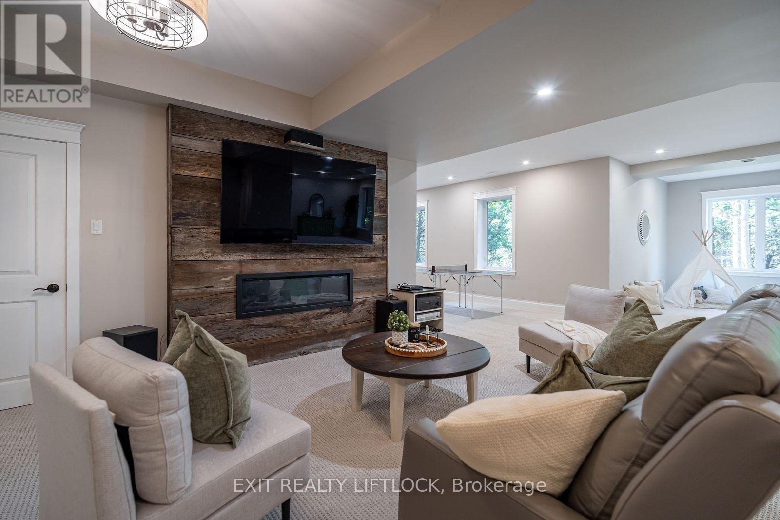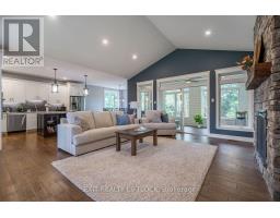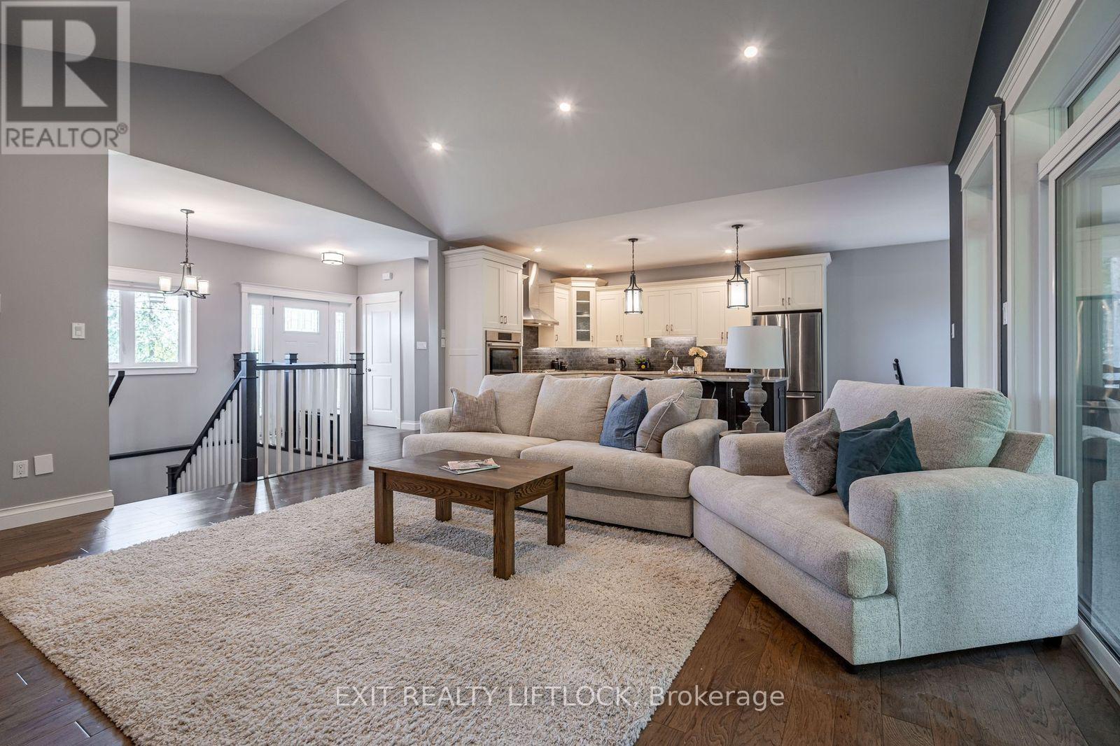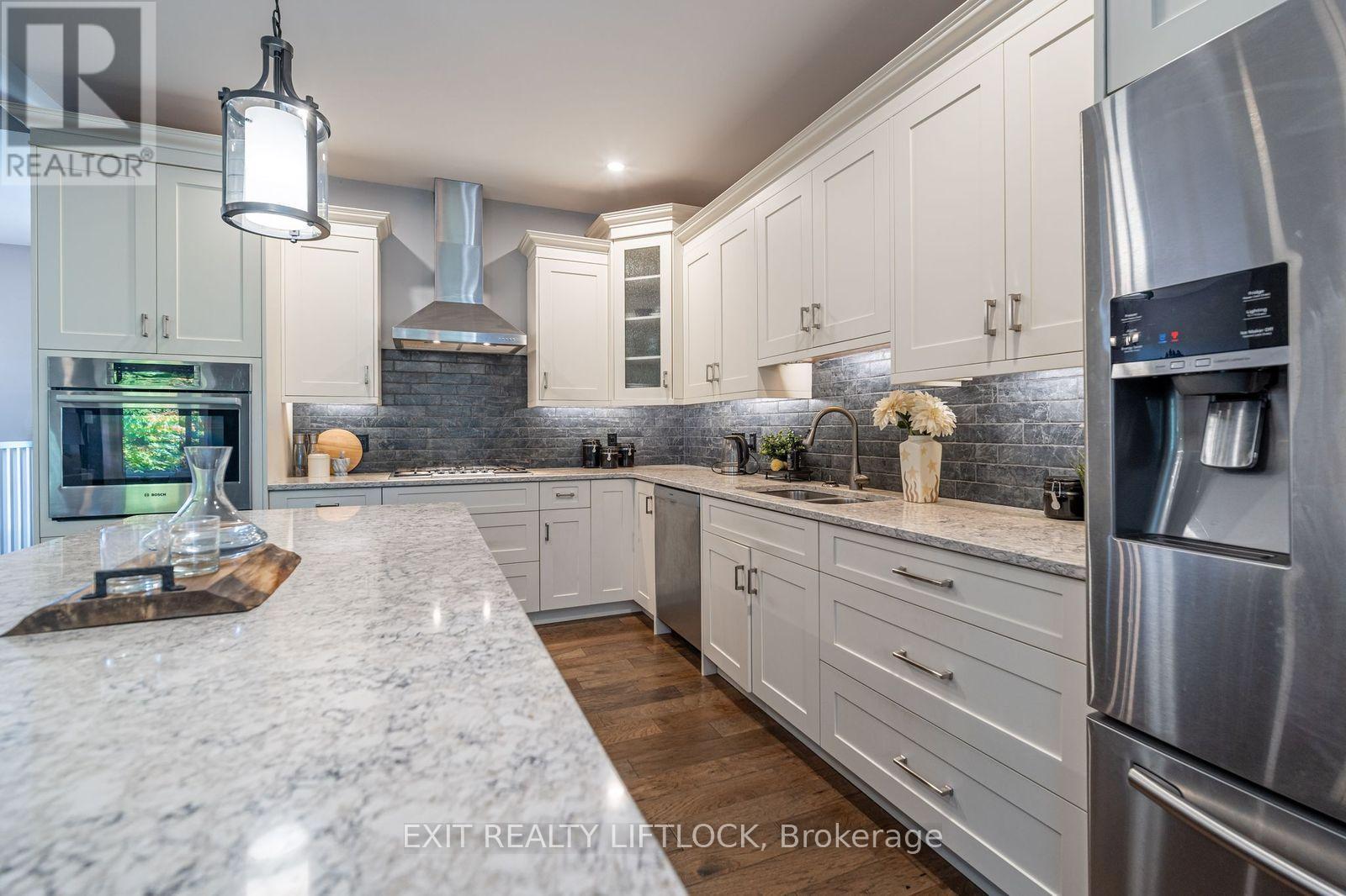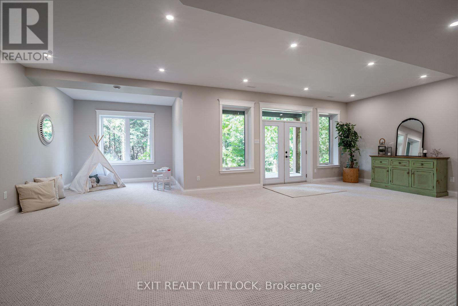 Welcome to this stunning 4,000+ sq ft custom-built executive home, perfectly positioned just minutes from the city on a year-round hardtop road. Tucked into over 3+ acres of mature forest, this property offers incredible privacy, space, and views of a ravine and creek - a true nature lovers paradise. Step inside and be immediately drawn to the serene forest backdrop. The open-concept main floor features a chefs kitchen with custom cabinetry, large center island, formal dining area, cozy living room with fireplace featuring 13ft vaulted ceilings, and beautiful 3-season sunroom with access to the upper deck.The primary suite includes a walk-in closet and a 5-pc ensuite. Two additional spacious bedrooms, a full bath with tiled glass shower, and a large mudroom/laundry room with garage access complete the main level.The walk-out lower level is filled with natural light from floor-to-ceiling windows and offers exceptional flexibility: 4th bedroom, office (plumbed for wet bar/kitchenette), family room with fireplace, kids zone, games room (potential 5th bedroom), 3 pc bath and a 500+ sq ft fitness area, all with access to a covered patio. A true multi-generational layout, this home is ideal for families, professionals, or those looking for peaceful living with city convenience. Includes an oversized 2.5 car garage and ample parking. Quality finishes throughout, breathtaking views from every room including deer in your own backyard, and endless possibilities inside and out! (id:61423)