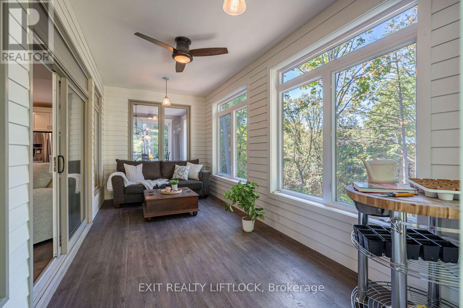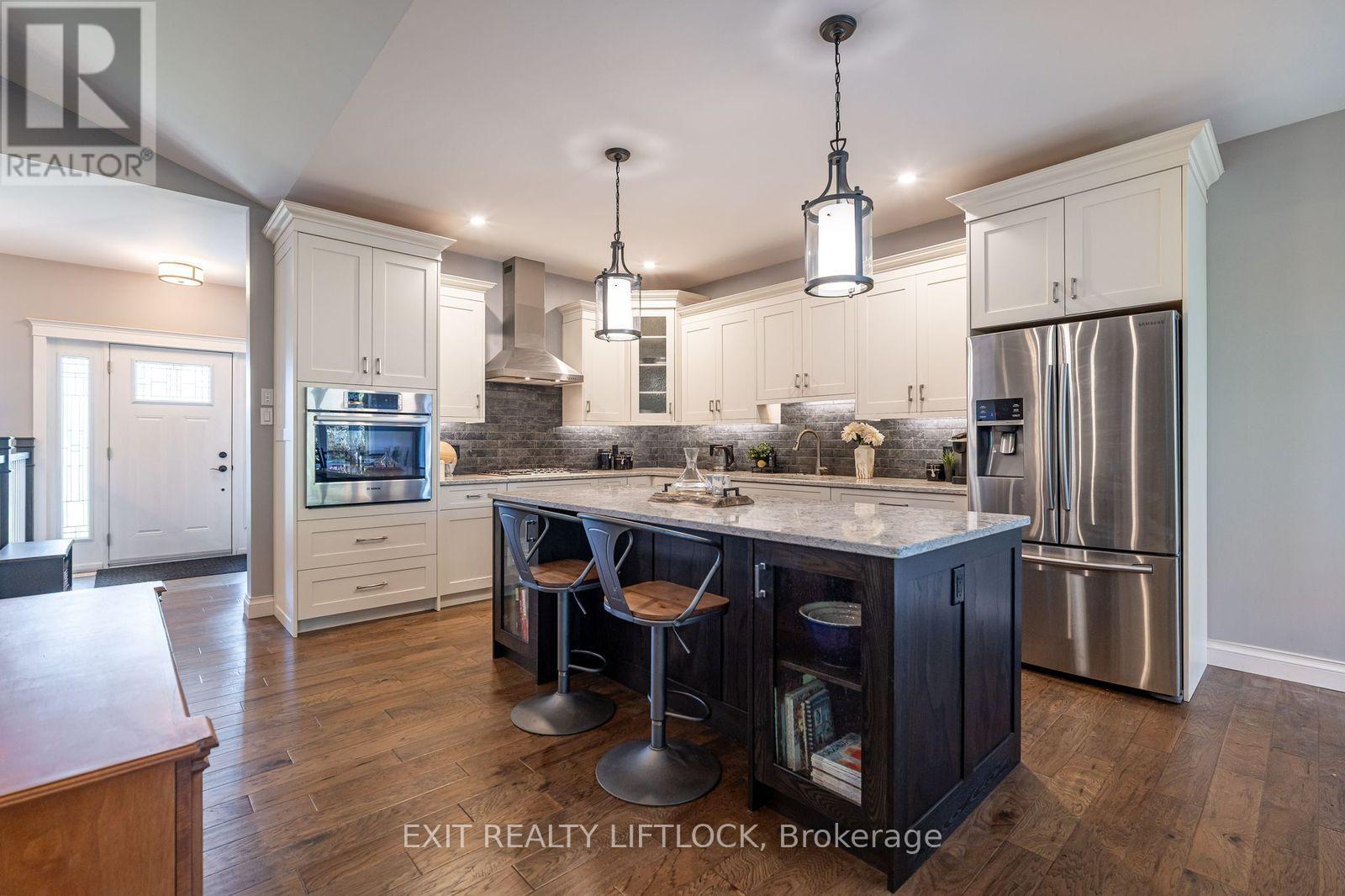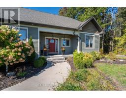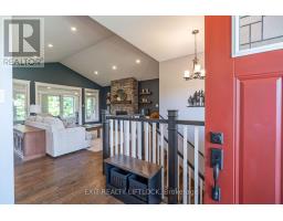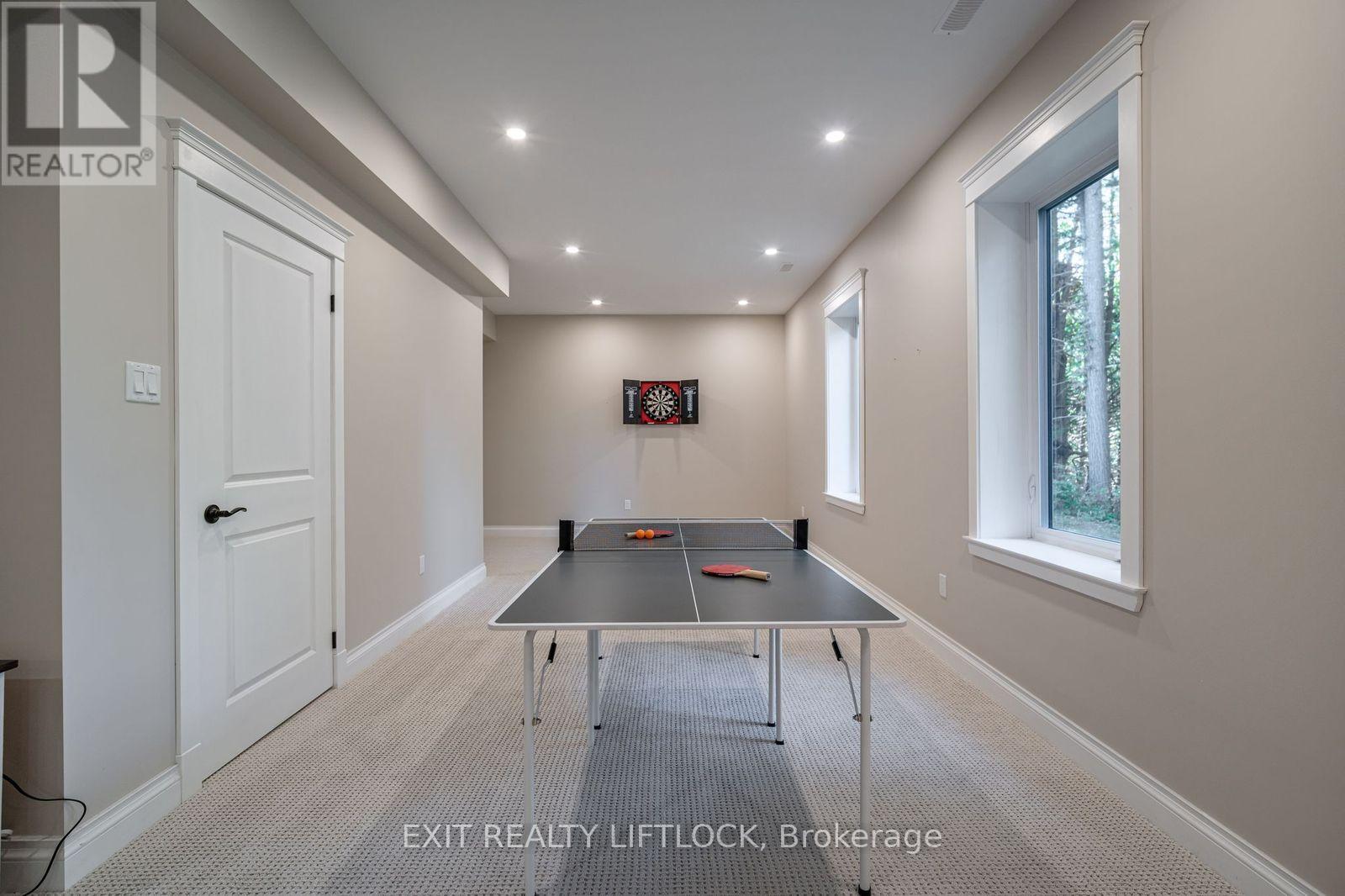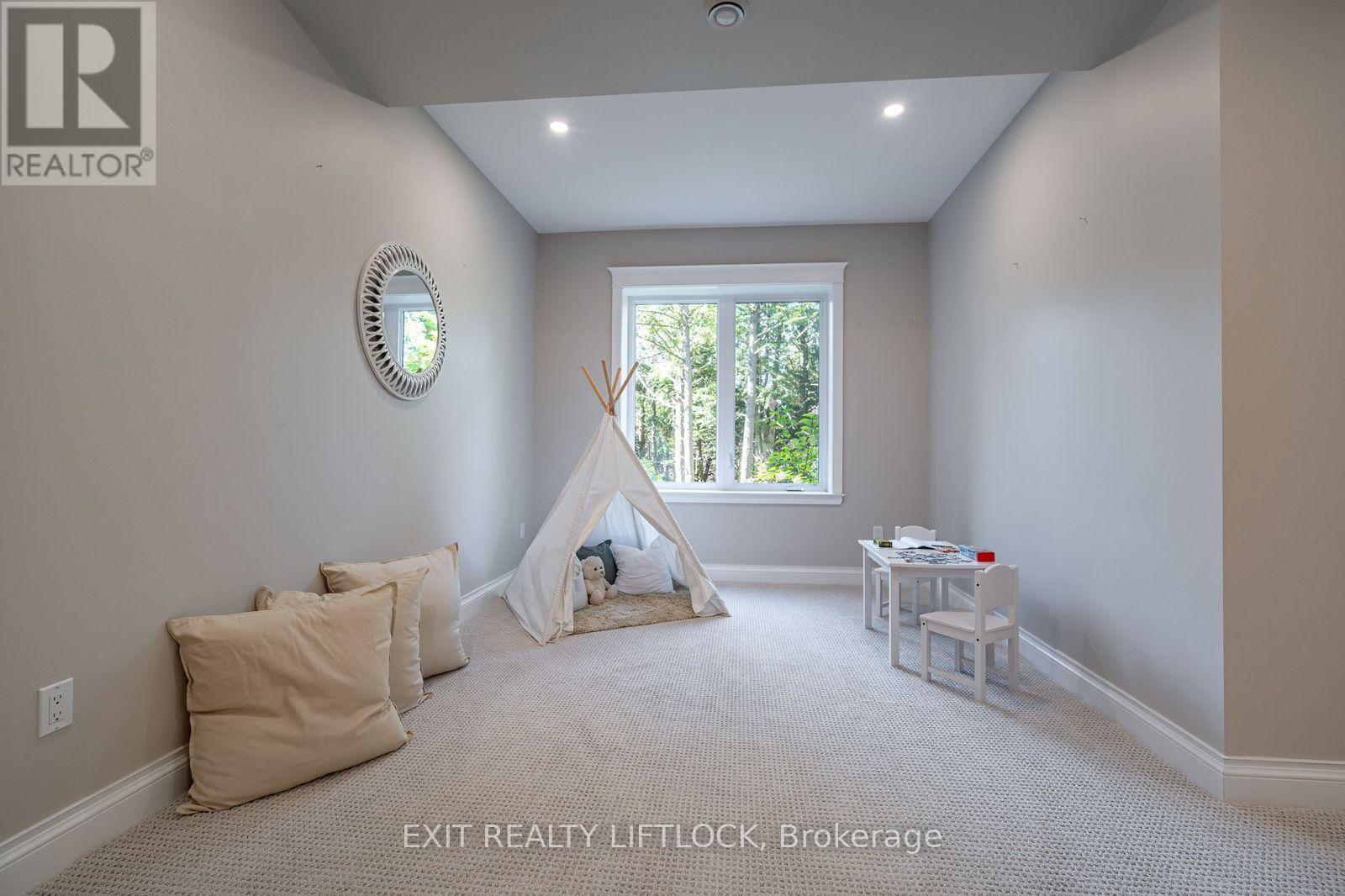 Welcome to this stunning 4,000+ sq ft custom-built executive home, perfectly positioned just minutes from the city on a year-round hardtop road. Tucked into over 3+ acres of mature forest, this property offers incredible privacy, space, and views of a ravine and creek - a true nature lovers paradise. Step inside and be immediately drawn to the serene forest backdrop. The open-concept main floor features a chefs kitchen with custom cabinetry, large center island, formal dining area, cozy living room with fireplace featuring 13ft vaulted ceilings, and beautiful 3-season sunroom with access to the upper deck.The primary suite includes a walk-in closet and a 5-pc ensuite. Two additional spacious bedrooms, a full bath with tiled glass shower, and a large mudroom/laundry room with garage access complete the main level.The walk-out lower level is filled with natural light from floor-to-ceiling windows and offers exceptional flexibility: 4th bedroom, office (plumbed for wet bar/kitchenette), family room with fireplace, kids zone, games room (potential 5th bedroom), 3 pc bath and a 500+ sq ft fitness area, all with access to a covered patio. A true multi-generational layout, this home is ideal for families, professionals, or those looking for peaceful living with city convenience. Includes an oversized 2.5 car garage and ample parking. Quality finishes throughout, breathtaking views from every room including deer in your own backyard, and endless possibilities inside and out! (id:61423)