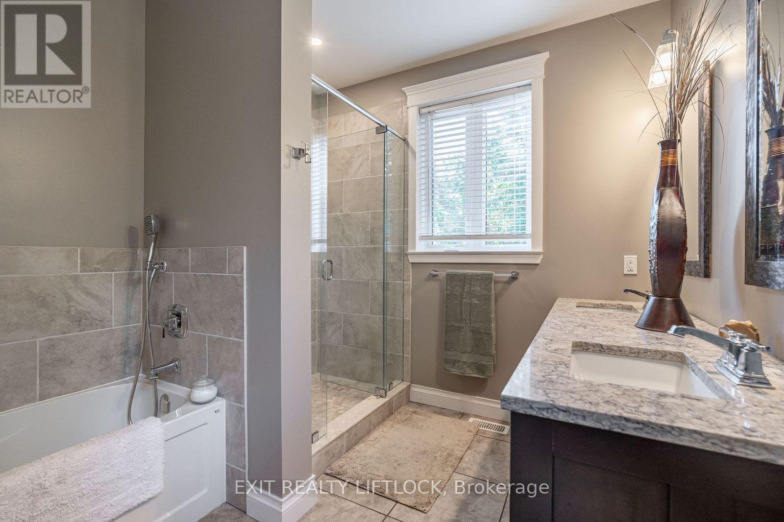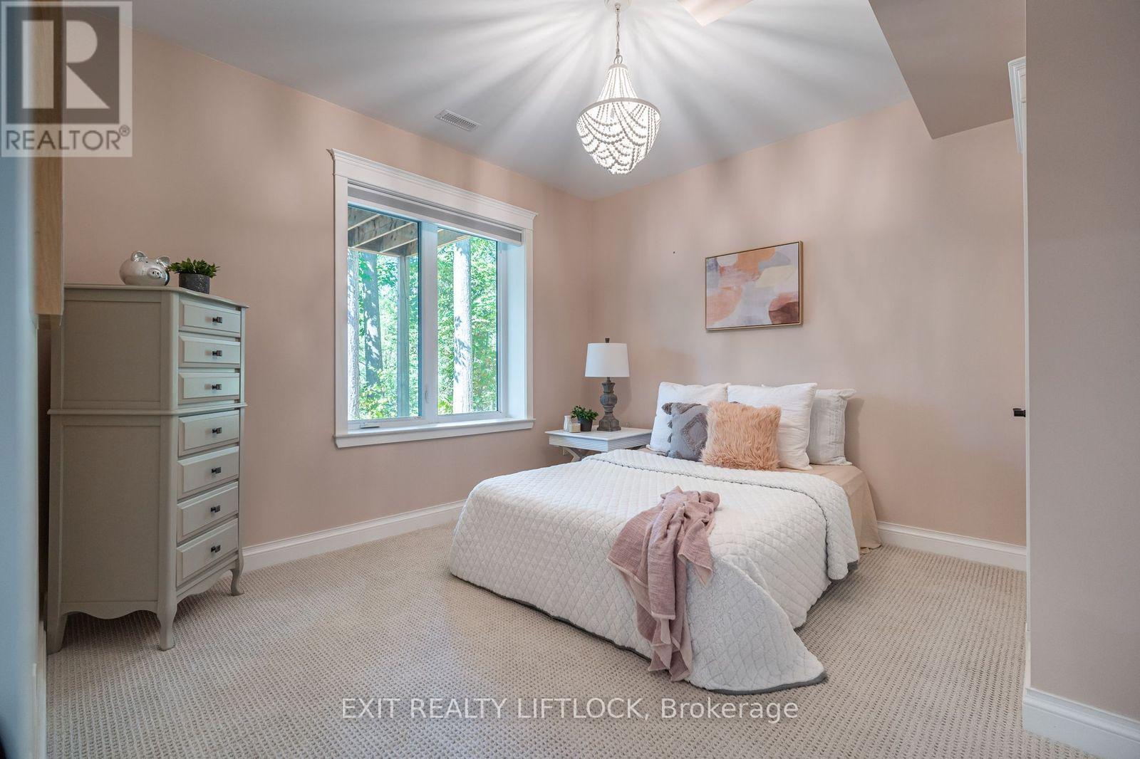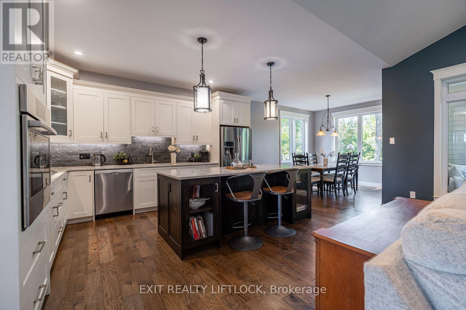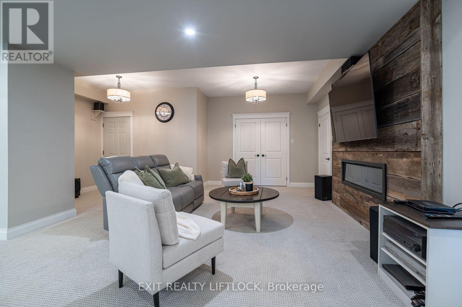 Welcome to this stunning 4,000+ sq ft custom-built executive home, perfectly positioned just minutes from the city on a year-round hardtop road. Tucked into over 3+ acres of mature forest, this property offers incredible privacy, space, and views of a ravine and creek - a true nature lovers paradise. Step inside and be immediately drawn to the serene forest backdrop. The open-concept main floor features a chefs kitchen with custom cabinetry, large center island, formal dining area, cozy living room with fireplace featuring 13ft vaulted ceilings, and beautiful 3-season sunroom with access to the upper deck.The primary suite includes a walk-in closet and a 5-pc ensuite. Two additional spacious bedrooms, a full bath with tiled glass shower, and a large mudroom/laundry room with garage access complete the main level.The walk-out lower level is filled with natural light from floor-to-ceiling windows and offers exceptional flexibility: 4th bedroom, office (plumbed for wet bar/kitchenette), family room with fireplace, kids zone, games room (potential 5th bedroom), 3 pc bath and a 500+ sq ft fitness area, all with access to a covered patio. A true multi-generational layout, this home is ideal for families, professionals, or those looking for peaceful living with city convenience. Includes an oversized 2.5 car garage and ample parking. Quality finishes throughout, breathtaking views from every room including deer in your own backyard, and endless possibilities inside and out! (id:61423)