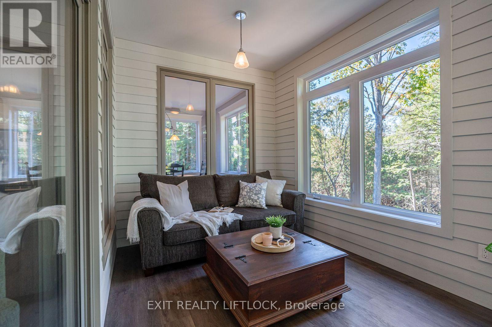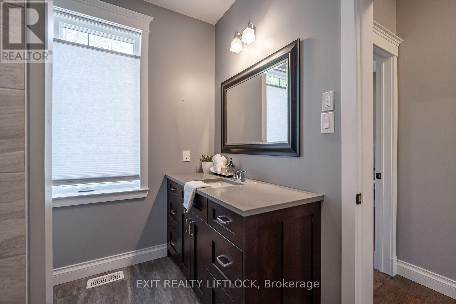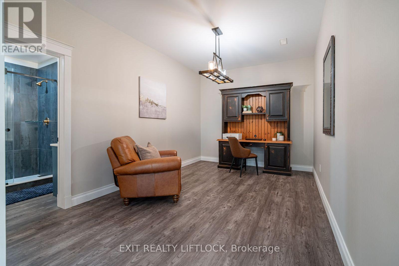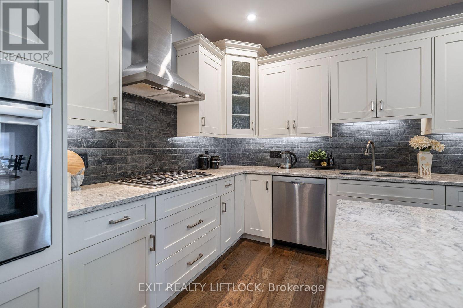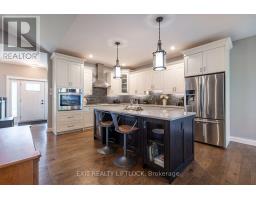 Welcome to this stunning 4,000+ sq ft custom-built executive home, perfectly positioned just minutes from the city on a year-round hardtop road. Tucked into over 3+ acres of mature forest, this property offers incredible privacy, space, and views of a ravine and creek - a true nature lovers paradise. Step inside and be immediately drawn to the serene forest backdrop. The open-concept main floor features a chefs kitchen with custom cabinetry, large center island, formal dining area, cozy living room with fireplace featuring 13ft vaulted ceilings, and beautiful 3-season sunroom with access to the upper deck.The primary suite includes a walk-in closet and a 5-pc ensuite. Two additional spacious bedrooms, a full bath with tiled glass shower, and a large mudroom/laundry room with garage access complete the main level.The walk-out lower level is filled with natural light from floor-to-ceiling windows and offers exceptional flexibility: 4th bedroom, office (plumbed for wet bar/kitchenette), family room with fireplace, kids zone, games room (potential 5th bedroom), 3 pc bath and a 500+ sq ft fitness area, all with access to a covered patio. A true multi-generational layout, this home is ideal for families, professionals, or those looking for peaceful living with city convenience. Includes an oversized 2.5 car garage and ample parking. Quality finishes throughout, breathtaking views from every room including deer in your own backyard, and endless possibilities inside and out! (id:61423)