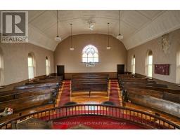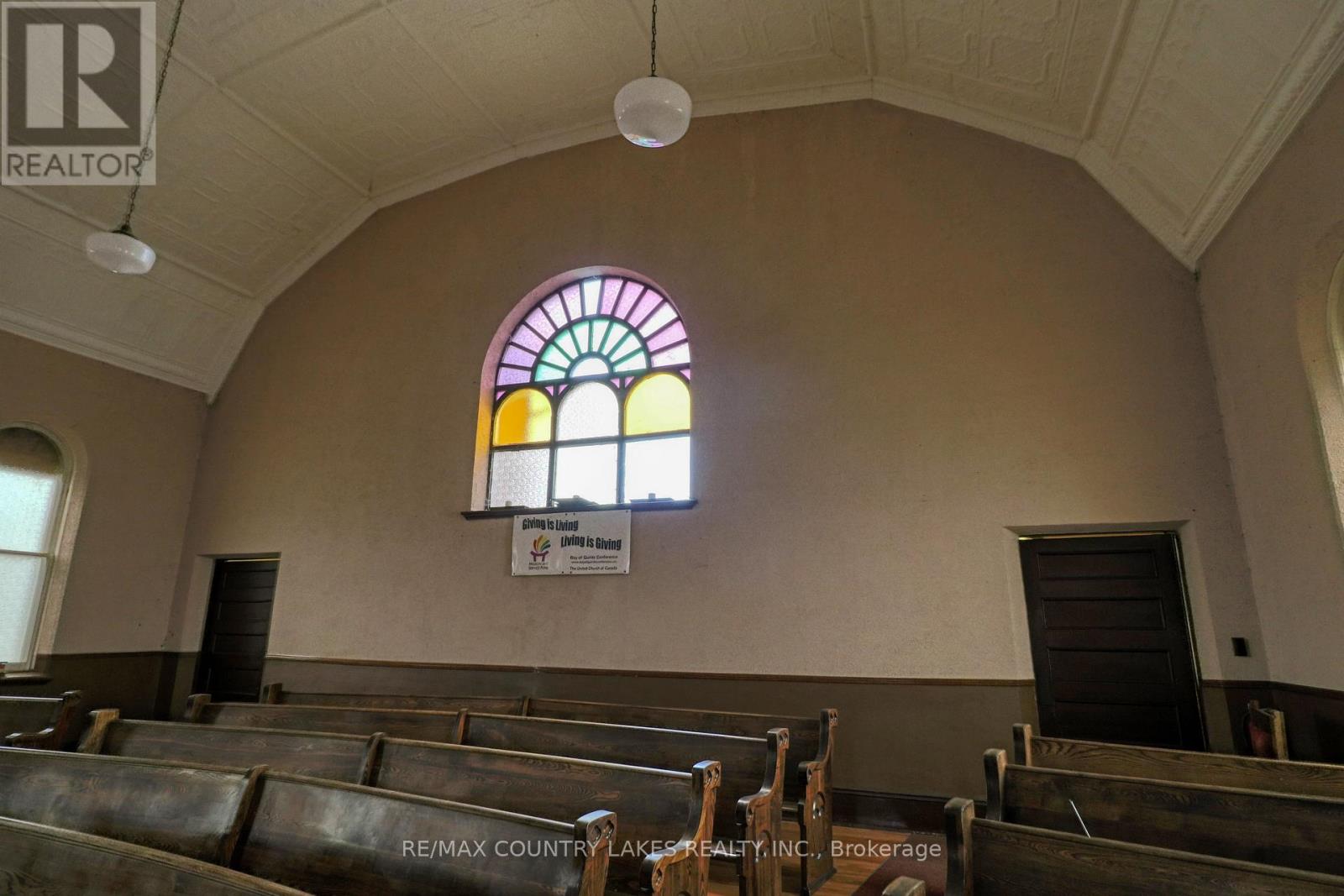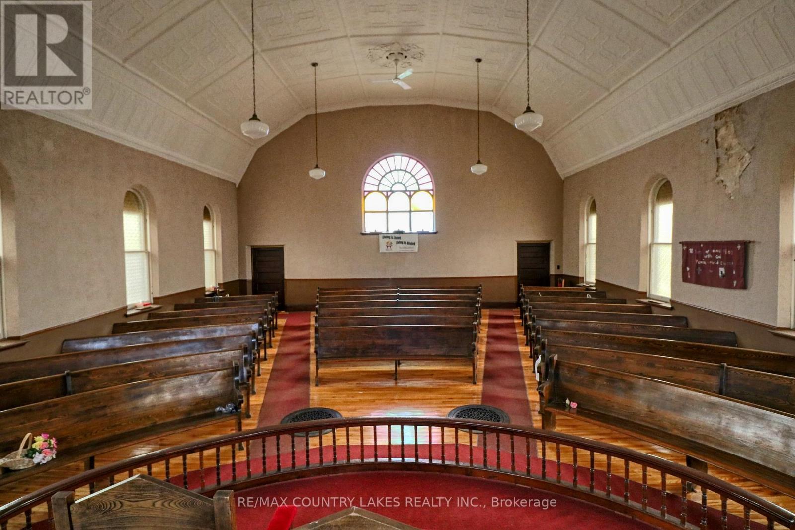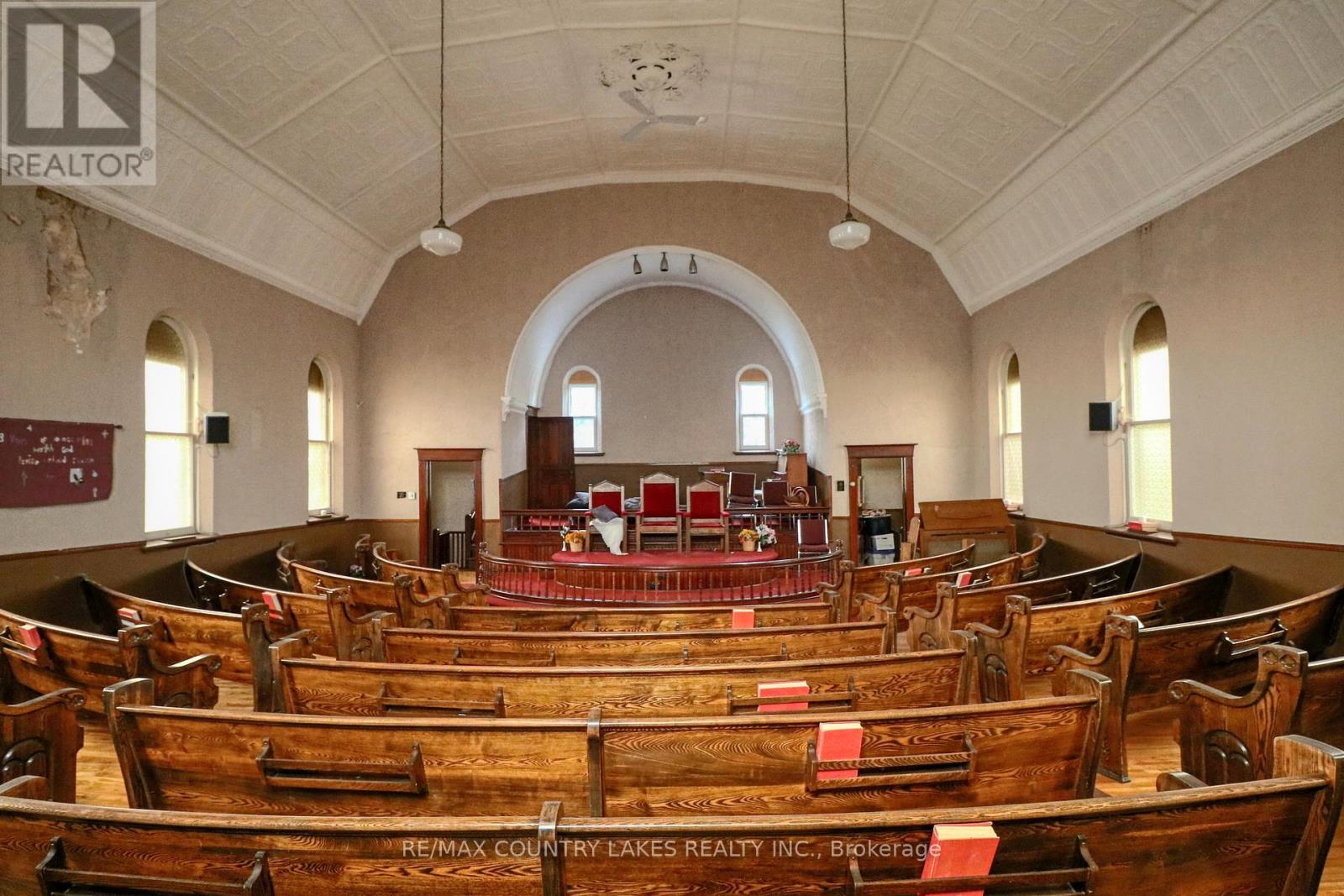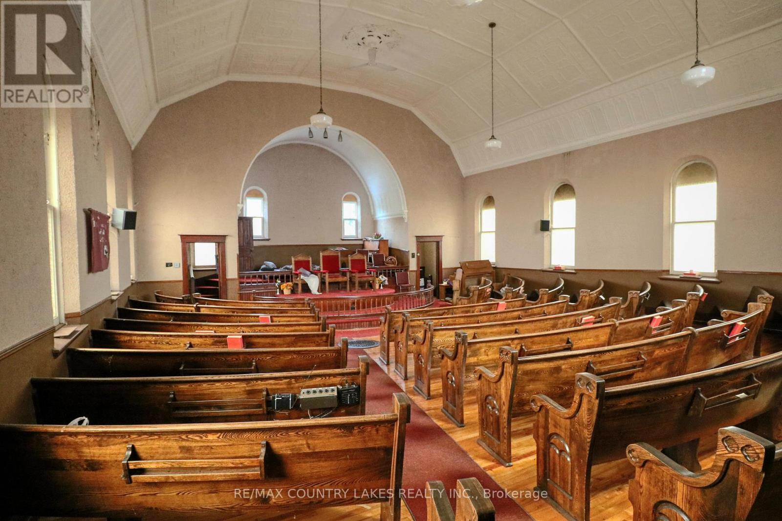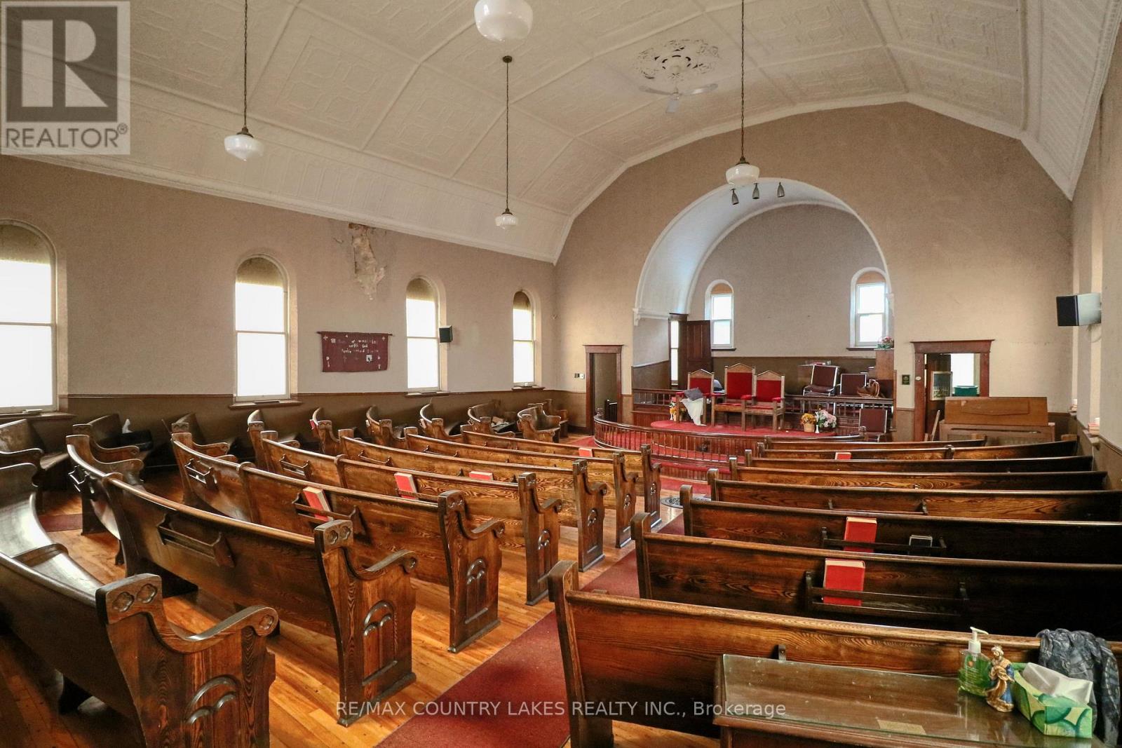 Opportunities like this don't come along often. This solid all-brick former church with a durable steel roof offers incredible bones and endless potential for the right buyer with vision. Set on a generous 218' x 99' lot with ample parking and a drilled well, the property provides approximately 3550 sq ft of finished above-grade space ready to be reimagined. Step inside to a truly unique Great Room featuring soaring cathedral ceilings, original pews, a front stage, and impressive ceiling height-ideal for adding a mezzanine level to create additional bedrooms or living space. A double stairwell leads to the upper level, opening the door for a variety of layout possibilities. The finished lower level adds even more flexibility with two kitchens, space for at least two bedrooms (with potential for more), a large recreation area, furnace room, storage, and both a 2-piece and 3-piece bath (with shower to be completed). Character-rich details like original stained glass windows create a stunning ambiance-especially when lit by the moon-while the peaceful setting offers quiet country nights and picturesque farm field views. Located just 15 minutes to Lindsay for all major shopping and only 5 minutes to Woodville for small-town essentials, this is a rare chance to enter the market at an affordable price with a property you can live in while transforming it into something truly special. (id:61423)