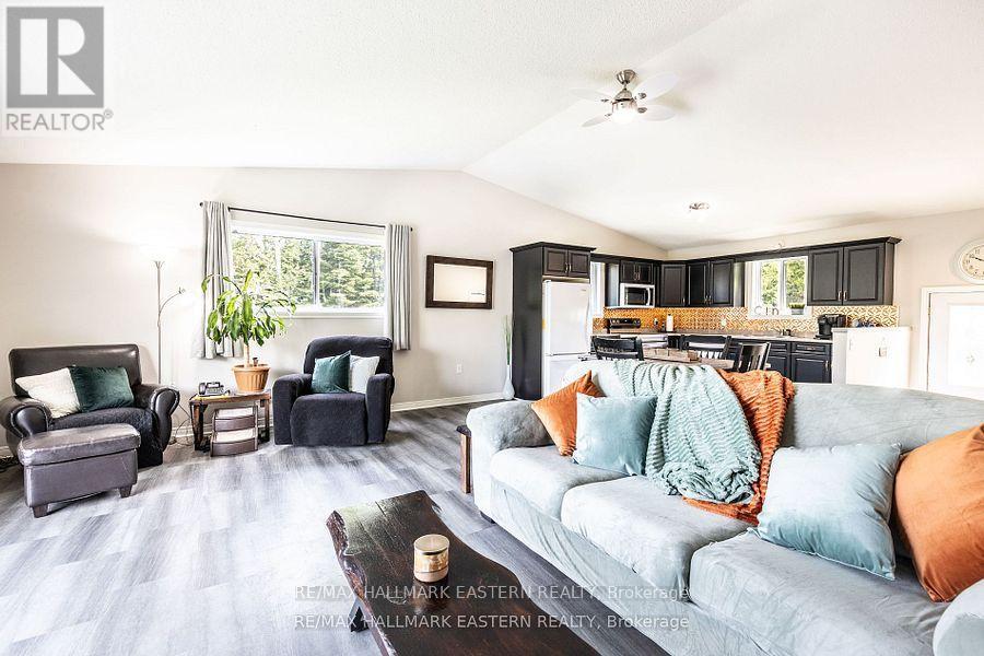 4075 County Road 44, Havelock a beautifully maintained raised bungalow set on 8.5 acres of private, park-like grounds. This custom-built 2+2 bedroom, 3-bath home offers the perfect blend of comfort, nature, and function, with over 2100sqft of finished living space. The main level features 1127 square feet of finished living space with a spacious living area overlooking the pond, a bright kitchen, and a primary bedroom with a 3-piece ensuite. The walkout basement includes two additional bedrooms, a full bathroom, a games room, and a den ideal for guests or multi-generational living. Walk out to the landscaped backyard and enjoy peaceful views of the air-rated pond, home to local wildlife. The detached oversized two-car garage/workshop is fully insulated and wired with hydro, including a welding plug. Shingles were replaced on the house in 2021 and on the workshop in 2023. Additional features include a fenced backyard, a large garden shed, and private trails that lead to a spring-fed creek. A drilled well with an iron filter, propane forced air heating, and central air conditioning ensure year-round comfort. Located on a year-round municipal road with 12 total parking spaces, this nature lovers paradise is just 5 minutes north of Havelock and approximately 40 minutes to Peterborough. close to lakes, ATV trails, and surrounded by forested beauty, this property offers peace, privacy, and convenience in one exceptional package. (id:61423)