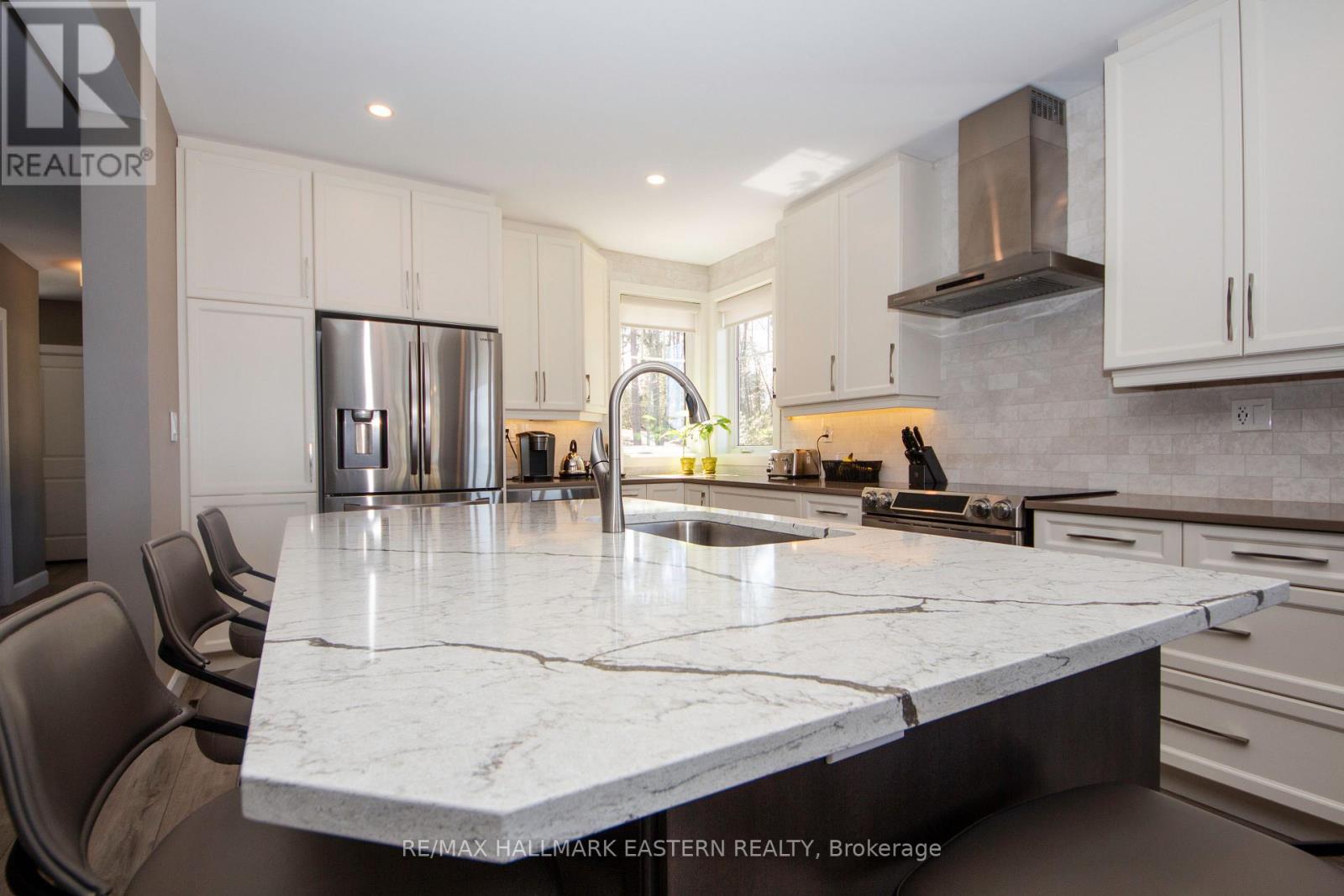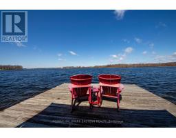Immaculate waterfront home in Ennismore. This custom-built 1,500 sq ft bungalow offers 2 bedrooms and 2 bathrooms and is set on an exceptional 1.3 acre lot with 160 feet of pristine shoreline. Bright and spacious, open-concept layout is designed to capture stunning lake views throughout. The kitchen features a centre island with breakfast bar, seamlessly flowing into a formal dining area and inviting living room with 8' patio doors leading to a lakeside patio. The primary suite boasts a large walk-in closet and a luxurious 4-pc ensuite complete with a separate 6' glass shower and a soaker tub perfect for relaxing. Outdoors you'll find professionally designed hardscaping that wraps around the home and is complemented by beautiful perennial gardens plus irrigation system. The paved driveway meanders through the trees opening to a three-car garage with wood stove and a regulation sized pickleball court integrated into the expansive paved area. Enjoy entertaining on the permanent dock with gazebo. Included is an additional 60' pole dock - ideal for accommodating all your watercraft and lakeside activities. Additional features include a 22KW backup generator for peace of mind year-round, a 20' x 30' Quonset hut tucked privately among the trees and a quaint outhouse with compost toilet and extra side section for storage. A rare offering that blends comfort, privacy and waterfront living. Book your private viewing today. You won't be disappointed (id:61423)