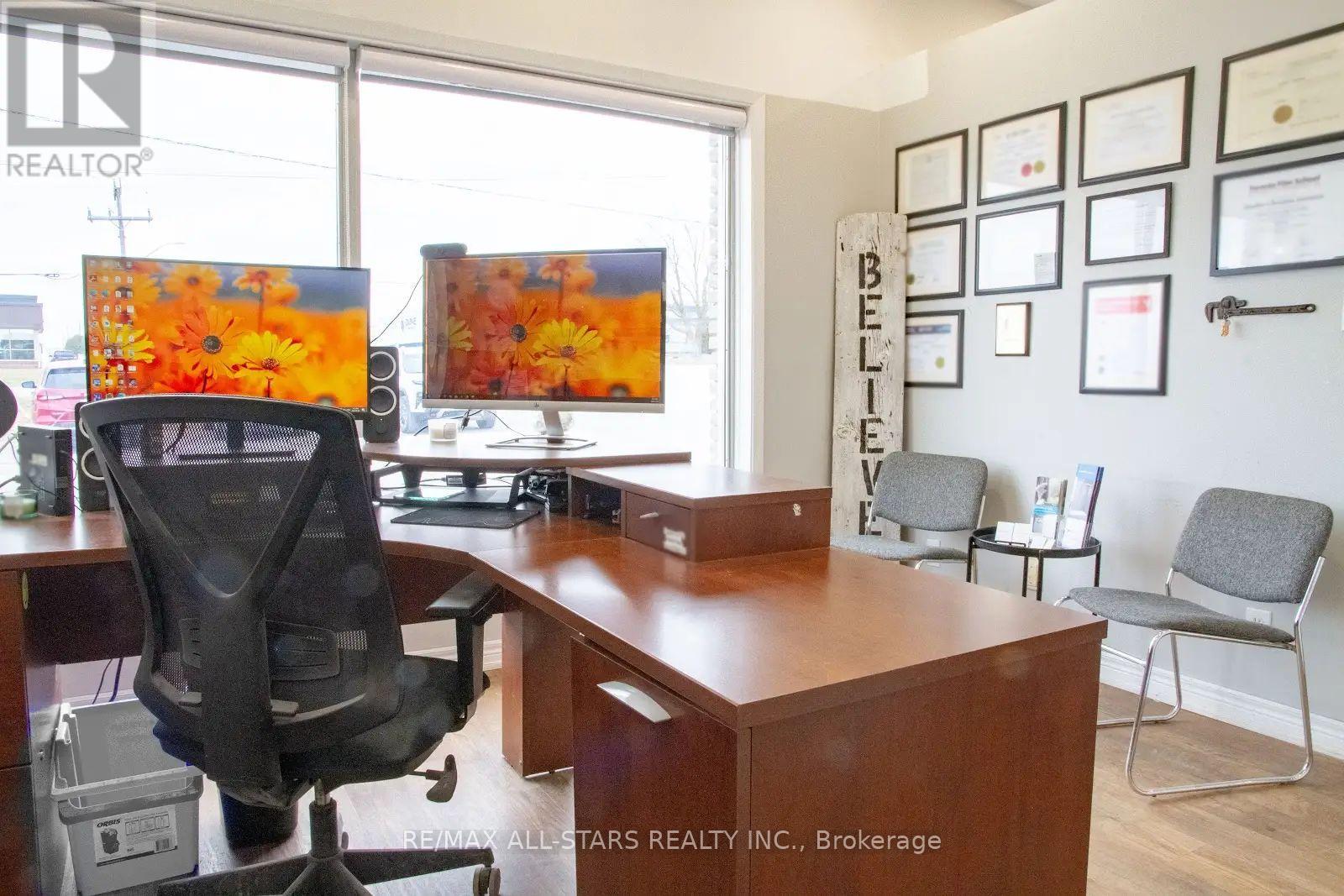 Versatile lease opportunity in a convenient location! This unique space is currently configured for professional use, featuring one large office area and two additional private offices -ideal for a variety of business types. The layout offers flexibility to suit your needs, with the option to lease a larger combined space that can include access to a kitchen area. Eight on-site parking spaces are included for tenant use. Perfect for office, studio, or service-based uses, this property provides a functional setup with room to adapt. Ample potential for customization depending on your business vision. Property is already equipped with a security system. A great opportunity to establish or expand your presence in a growing community! (id:61423)
