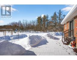 Country Living at its best this updated brick bungalow sits on a .69 acre lot backing onto Youngs Point Conservation area; just down the street from Clear Lake, and 10 minutes drive to the Village of Lakefield for all town amenities. Bright living room with hardwood flooring, updated Walden-built kitchen with loads of cabinetry, centre island/breakfast bar and walk-out to large deck overlooking expansive yard with firepit, vegetable & perennial gardens, and two outbuildings for storage. Updated main bath. Large primary suite and guest bedroom complete this level. Downstairs you'll find a large recreation room with propane stove, 3rd bedroom, 3pc bath, and loads of utility space, as well as laundry area. Upgrades include steel roofing, 200 amp service, propane heat, newer windows, vinyl plank flooring and more. On a school bus route, close to Lakefield Public School & St. Paul's Elementary School. Minutes to beach on Clear Lake. (id:61423)